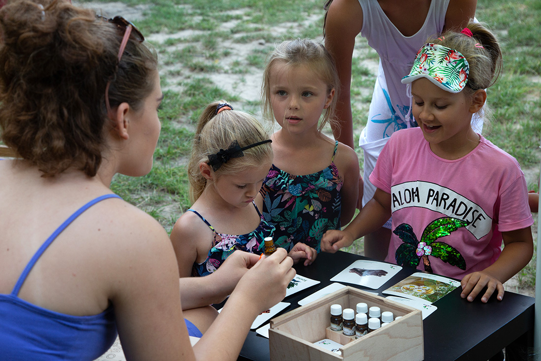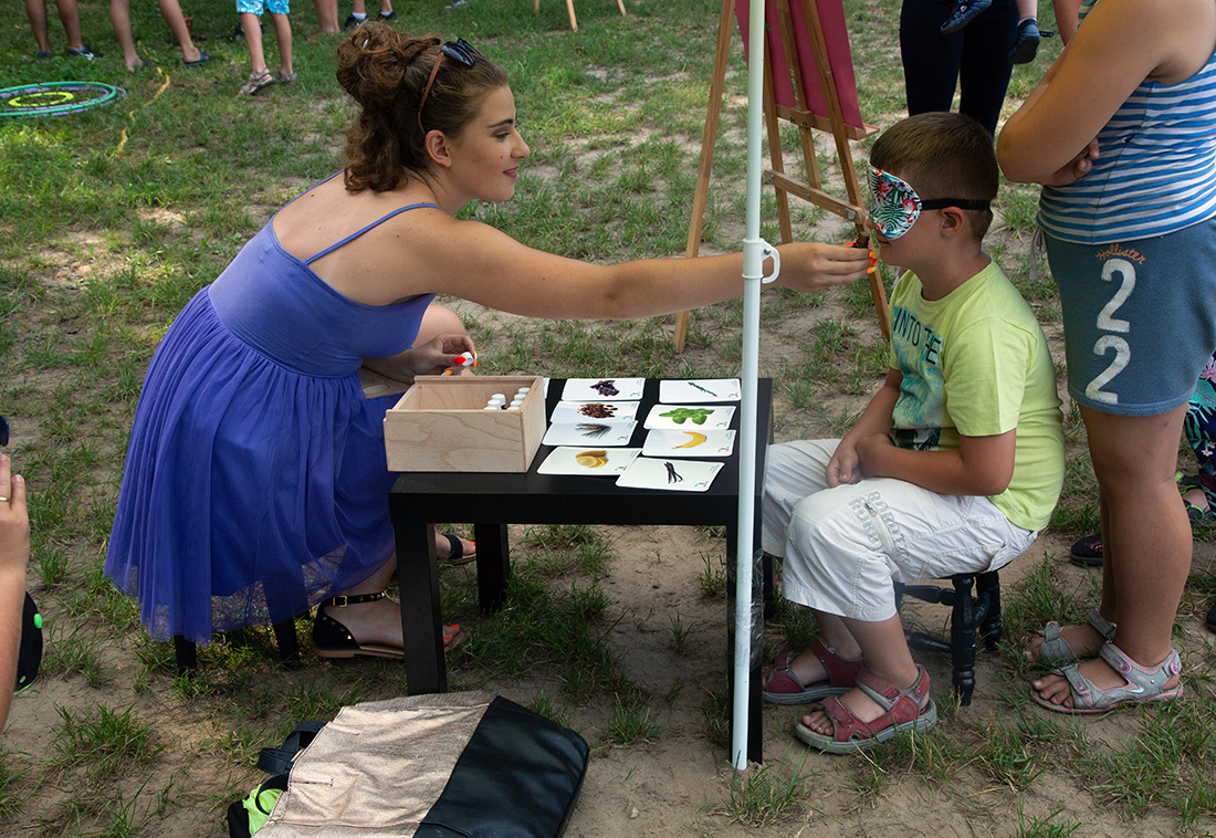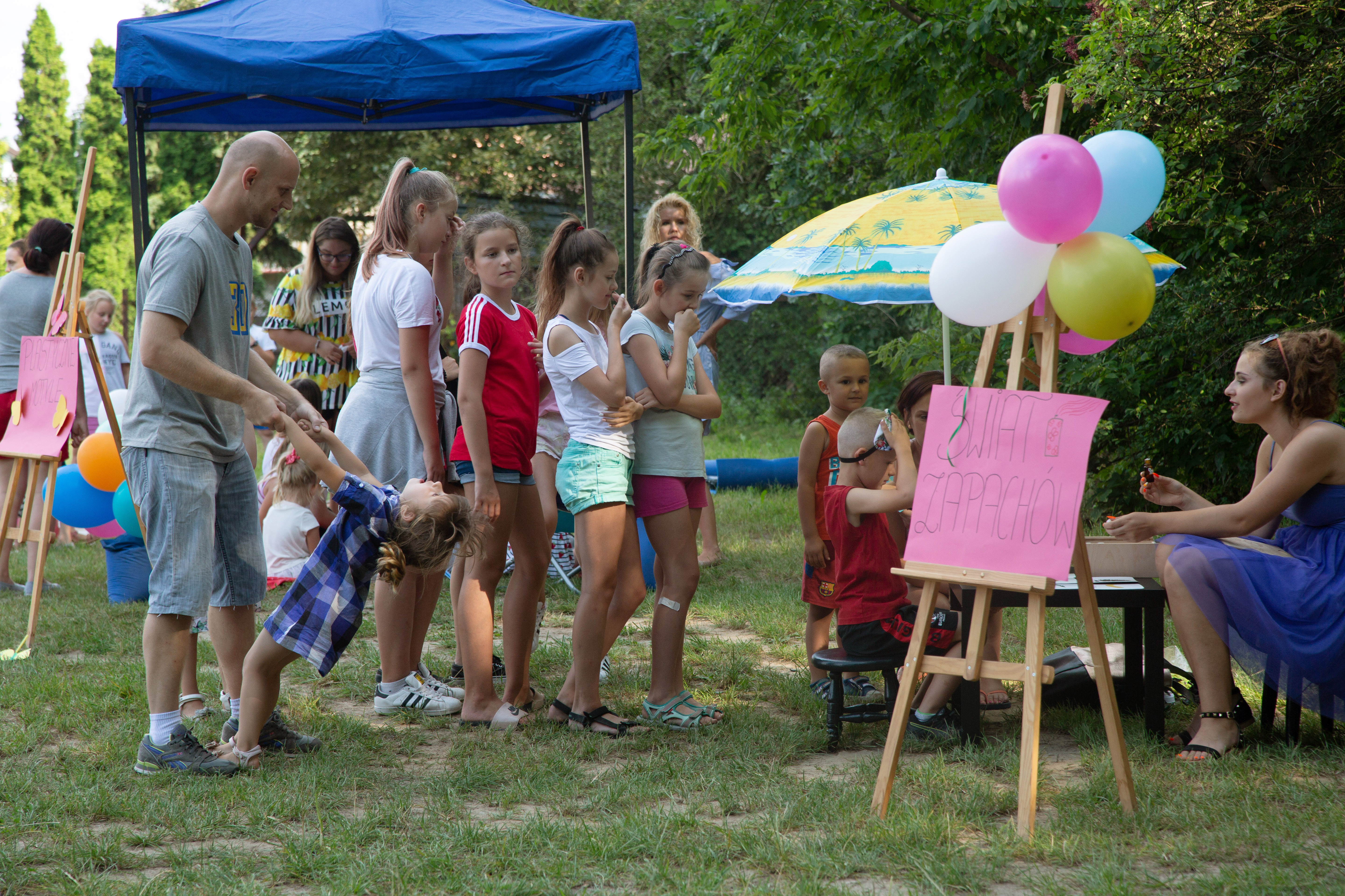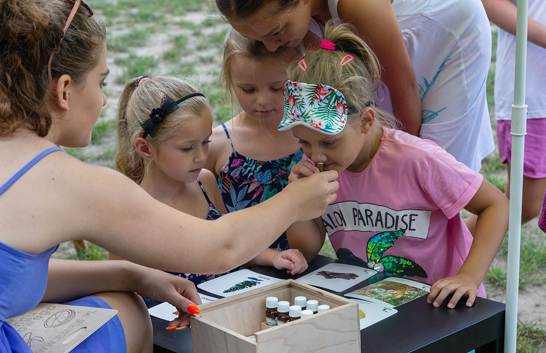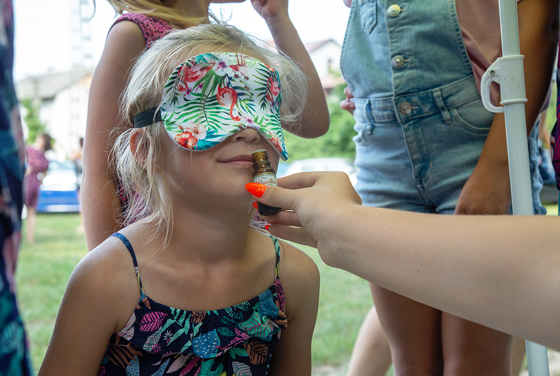 Obok Strefy Sokolego Oka rozstawiła swoje stoisko Świat Zapachów Daria. Dzieci z zawiązanymi oczyma wąchały zapachy. – To mięta – krzyczała uradowana z rozpoznania zapachu dziewczynka. Bo do stoiska Darii ustawiały się głownie dziewczynki.