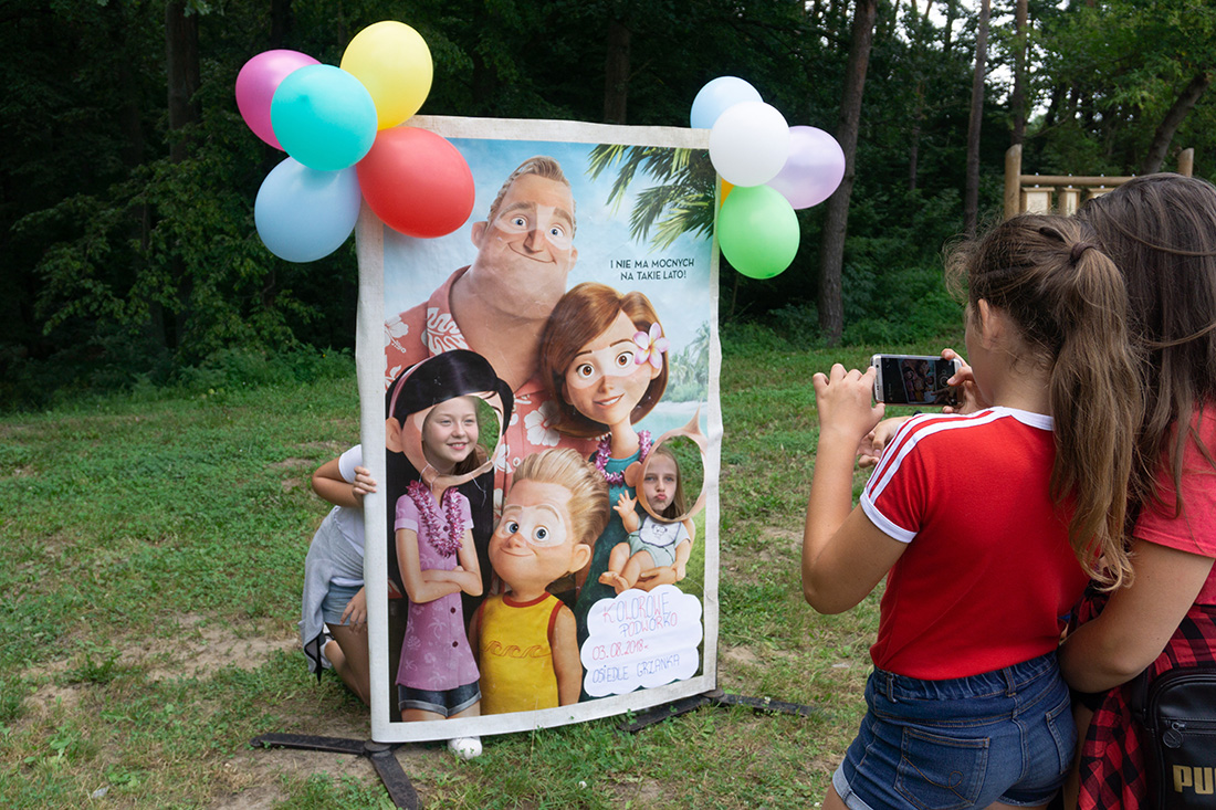 Od strony zachodniej stała tablica z napisem „Nie ma mocnych na upały”, przy której – wkładając głowę w otwór – można było sobie zrobić pamiątkowe zdjęcie. W pobliżu planszy swoje stoisko rozstawiła Maja, która zachęcała dzieci do skomponowania swojej lemoniady za pomocą kolorowych nalepek.