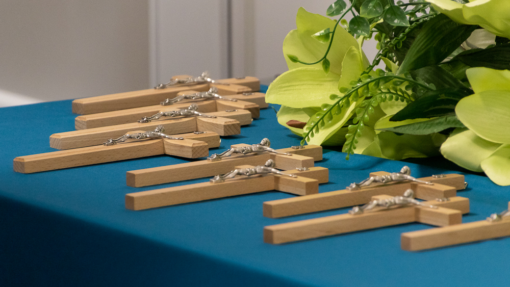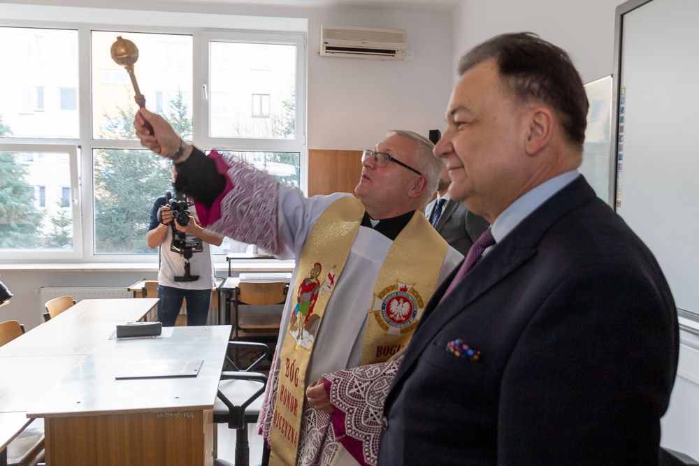 Następnie ksiądz kanonik Stanisław Dziekan dokonał poświęcenia tablicy oraz krzyży, które zostaną umieszczone w salach lekcyjnych.