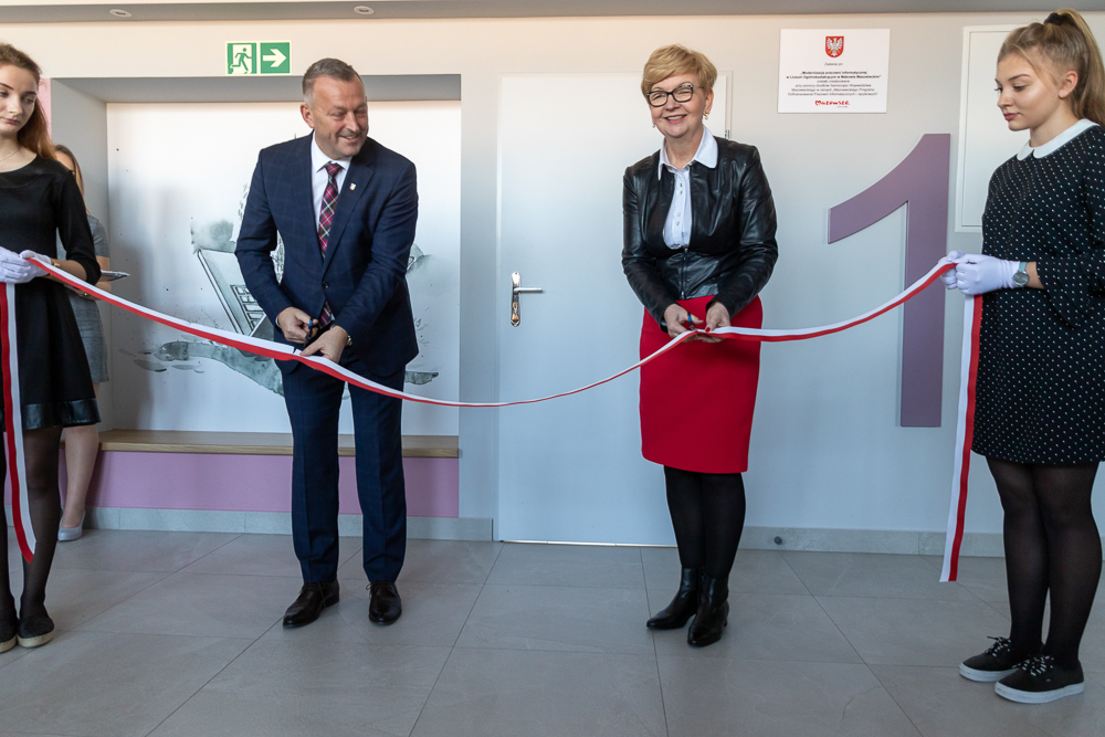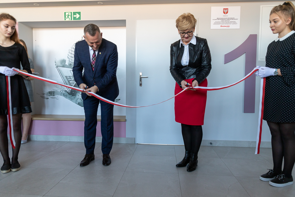 Spod tablicy i pomnika patronki szkoły uczestnicy uroczystości udali się na piętro, gdzie została przecięta wstęga do pracowni komputerowej. Pracownia została zmodernizowana przy pomocy środków Samorządu Województwa Mazowieckiego w ramach „Mazowieckiego Programu Dofinansowania Pracowni Informatycznych i Językowych”.
