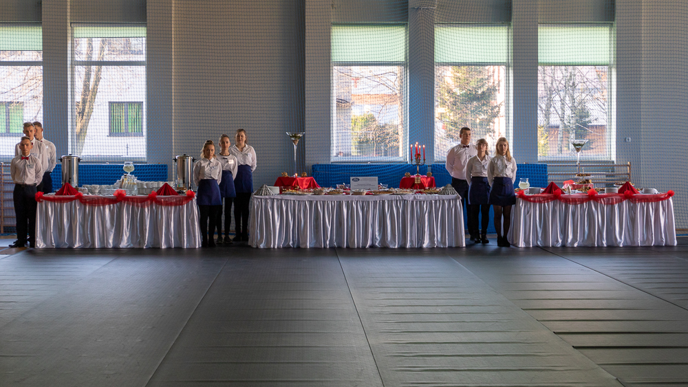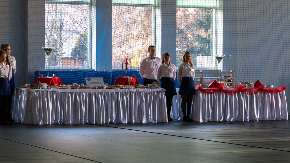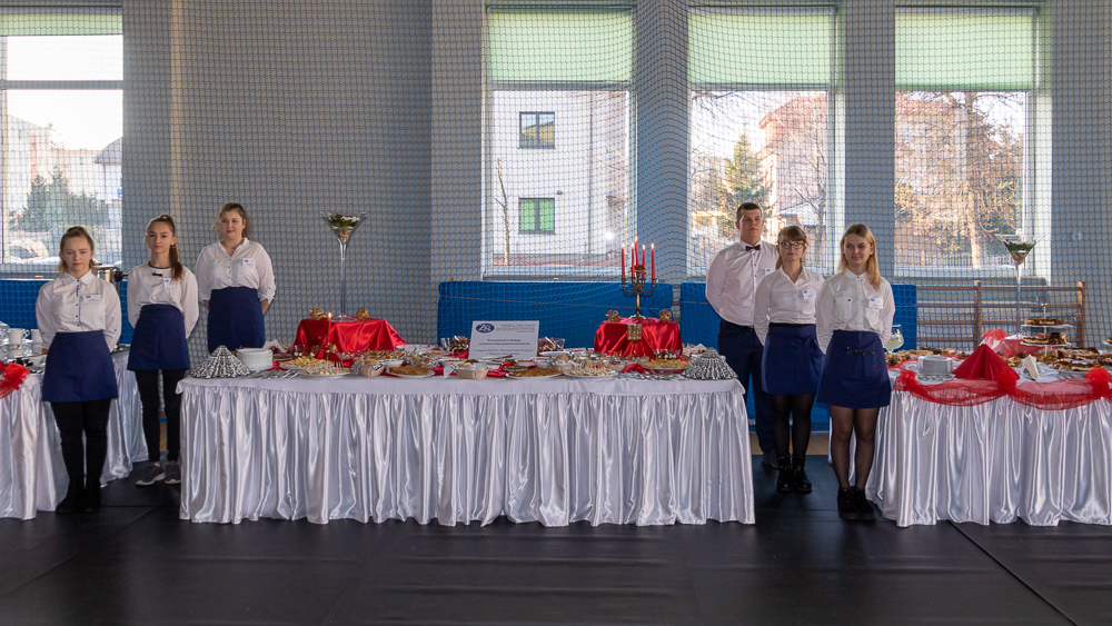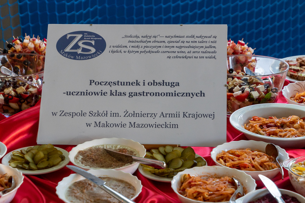 Uroczystości trwały dość długo, toteż z wielkim uznaniem został przyjęty poczęstunek, przygotowany na pięknie udekorowanych stołach przez uczniów klas gastronomicznych Zespołu Szkół im. Żołnierzy Armii Krajowej.