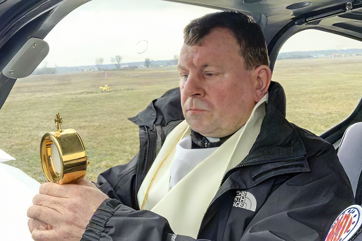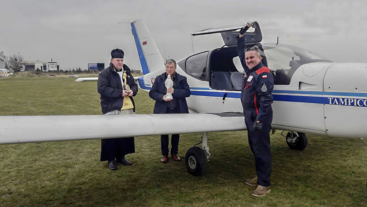 Na pokładzie awionetki znajdował się Najświętszy Sakrament, relikwie św. Stanisława Kostki – patrona Przasnysza i figurka Matki Bożej z Medjugorie. W czasie lotu ks. Michał Gaszczyński, proboszcz parafii Św. Stanisława Biskupa i Męczennika w Czernicach Borowych odmawiał modlitwę różańcową i koronkę do Bożego Miłosierdzia.