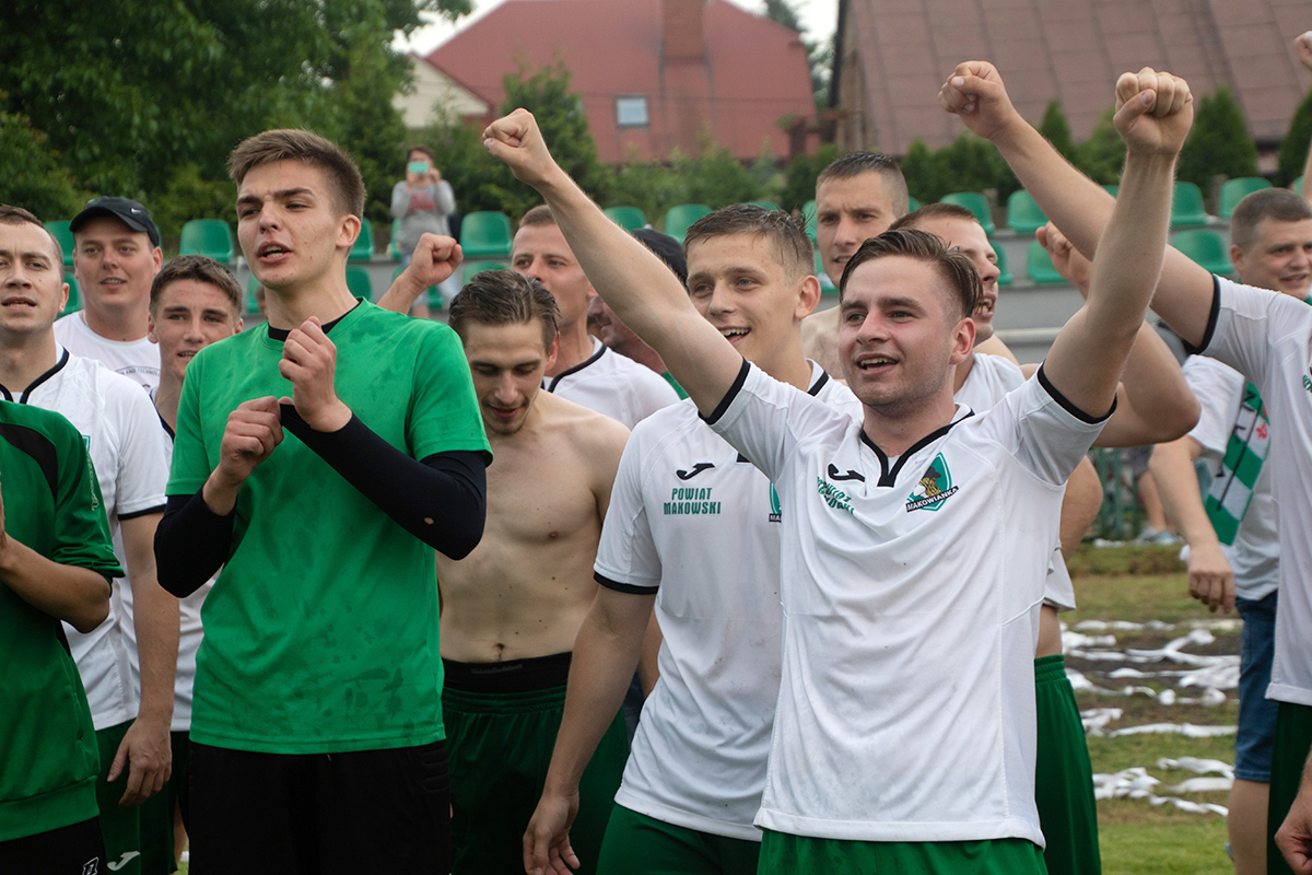 Na zdjęciach: mecz Makowianka – Kryształ Glinojeck i radość po meczu.