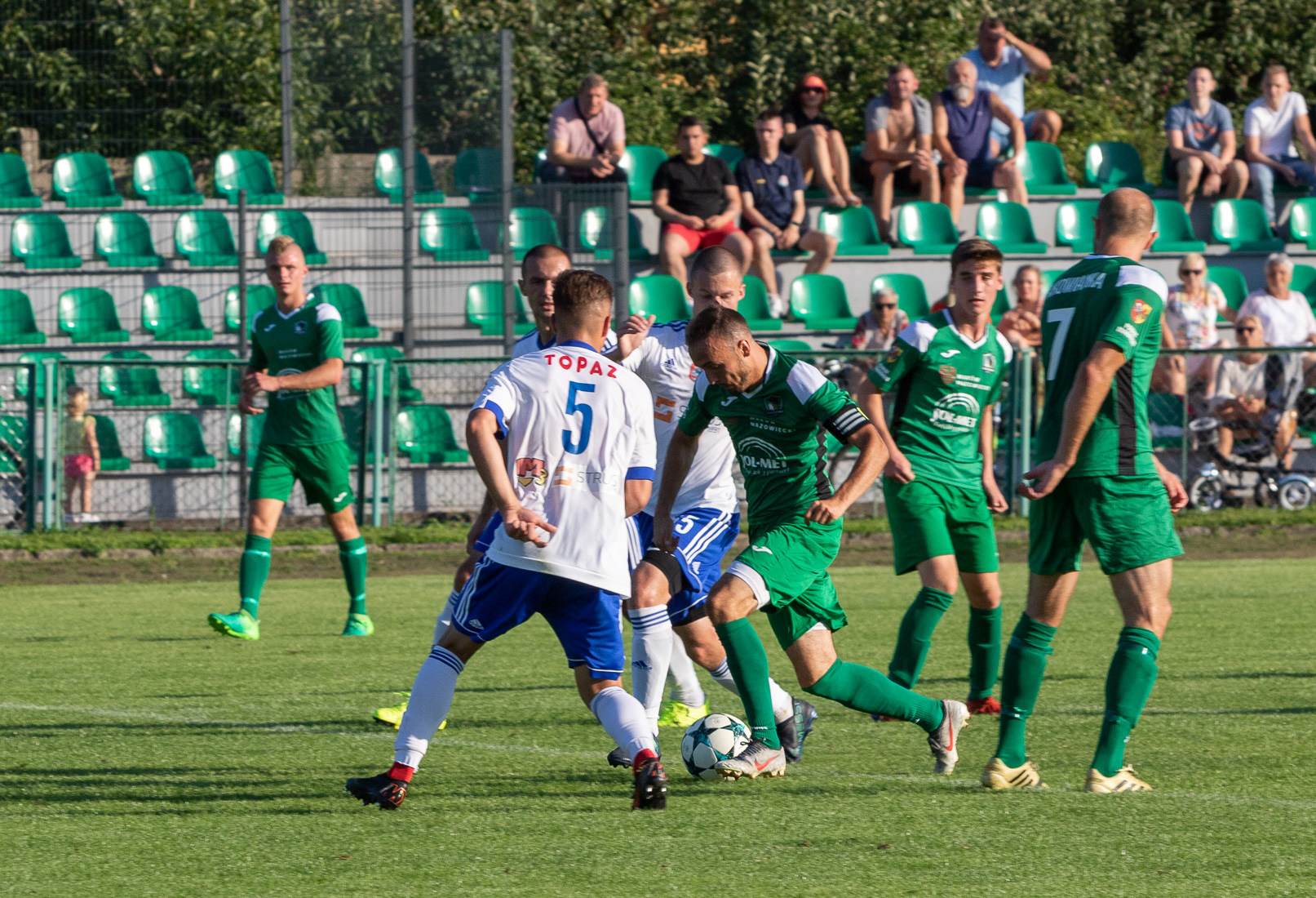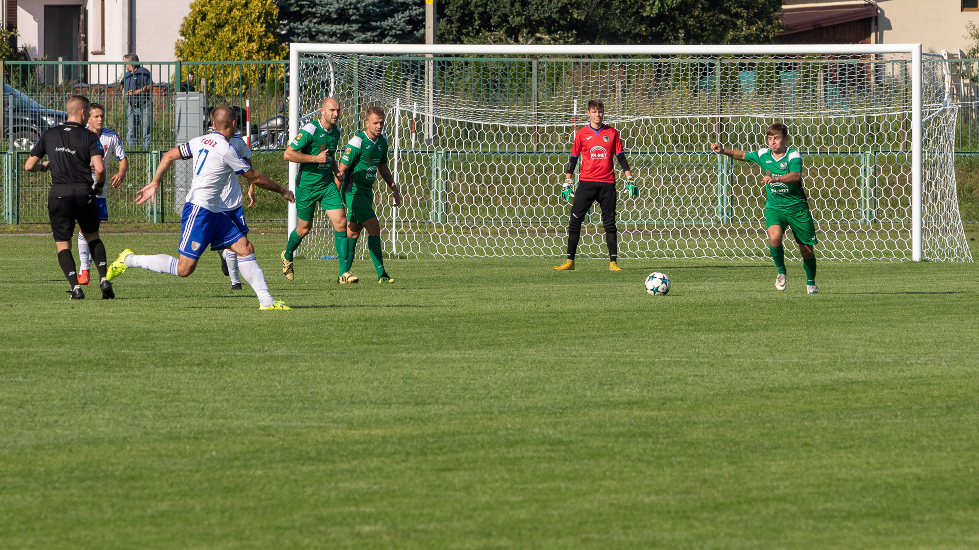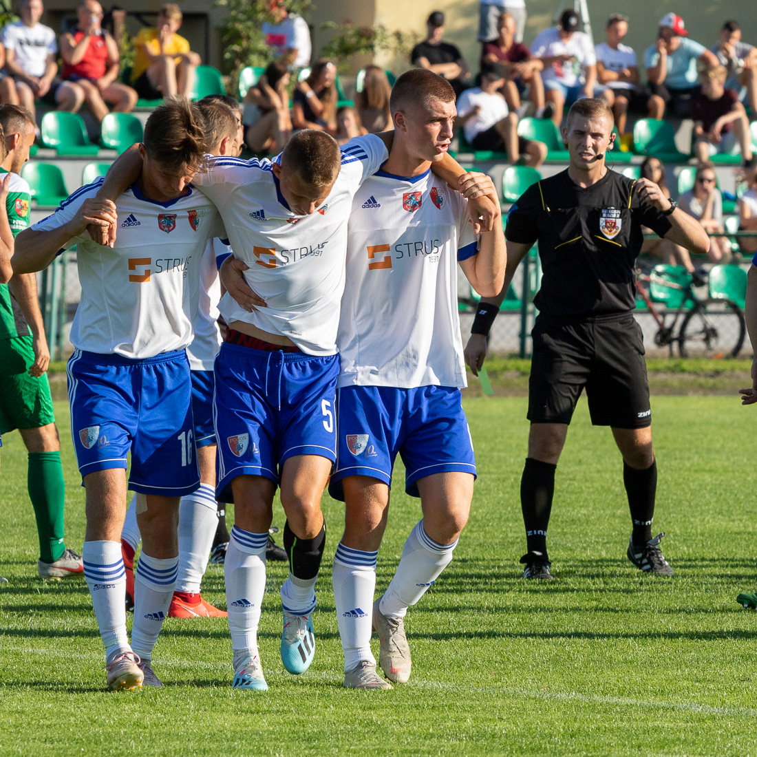 Pierwszą bramkę dla gości zdobył w 26. minucie spotkania Przemysław Rodak po dośrodkowaniu Dominika Krupy. Wynik ten utrzymał się do przerwy, mimo że nasi piłkarze atakowali zawzięcie.