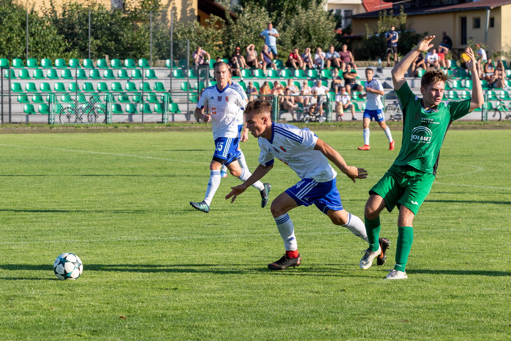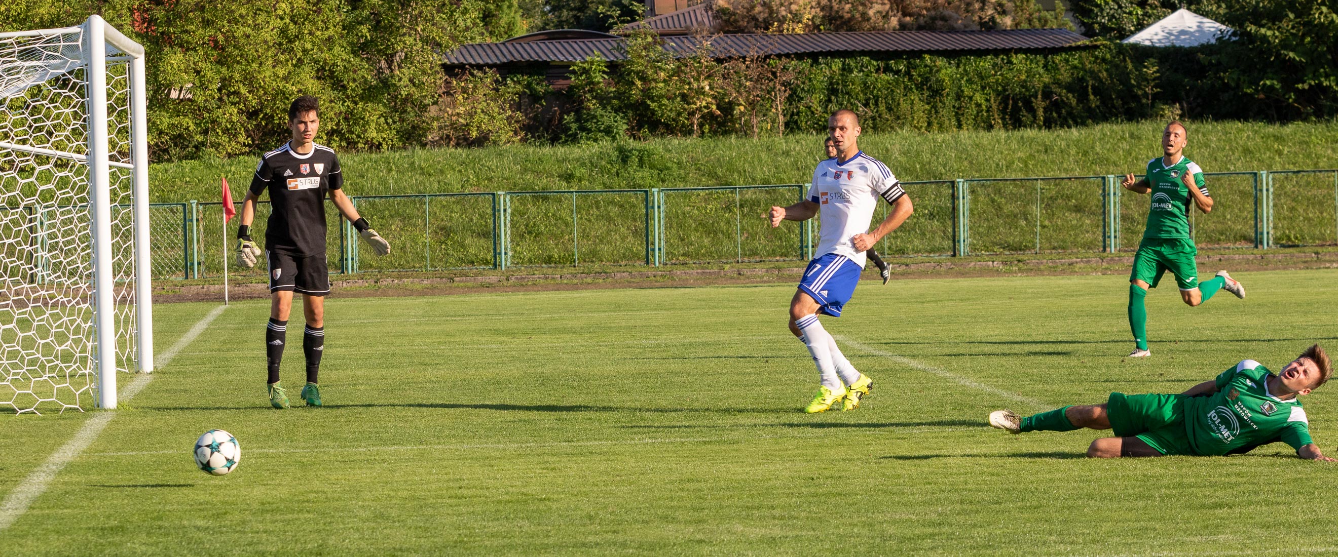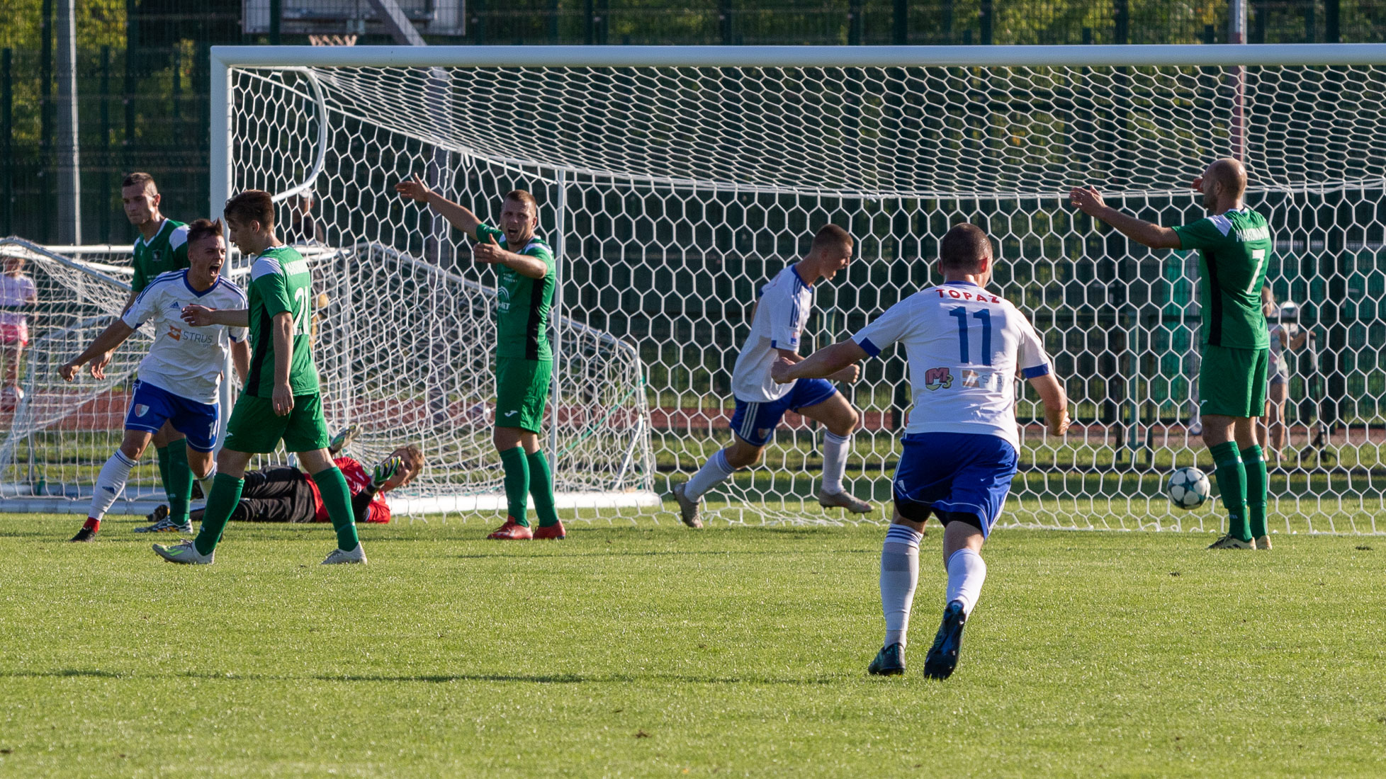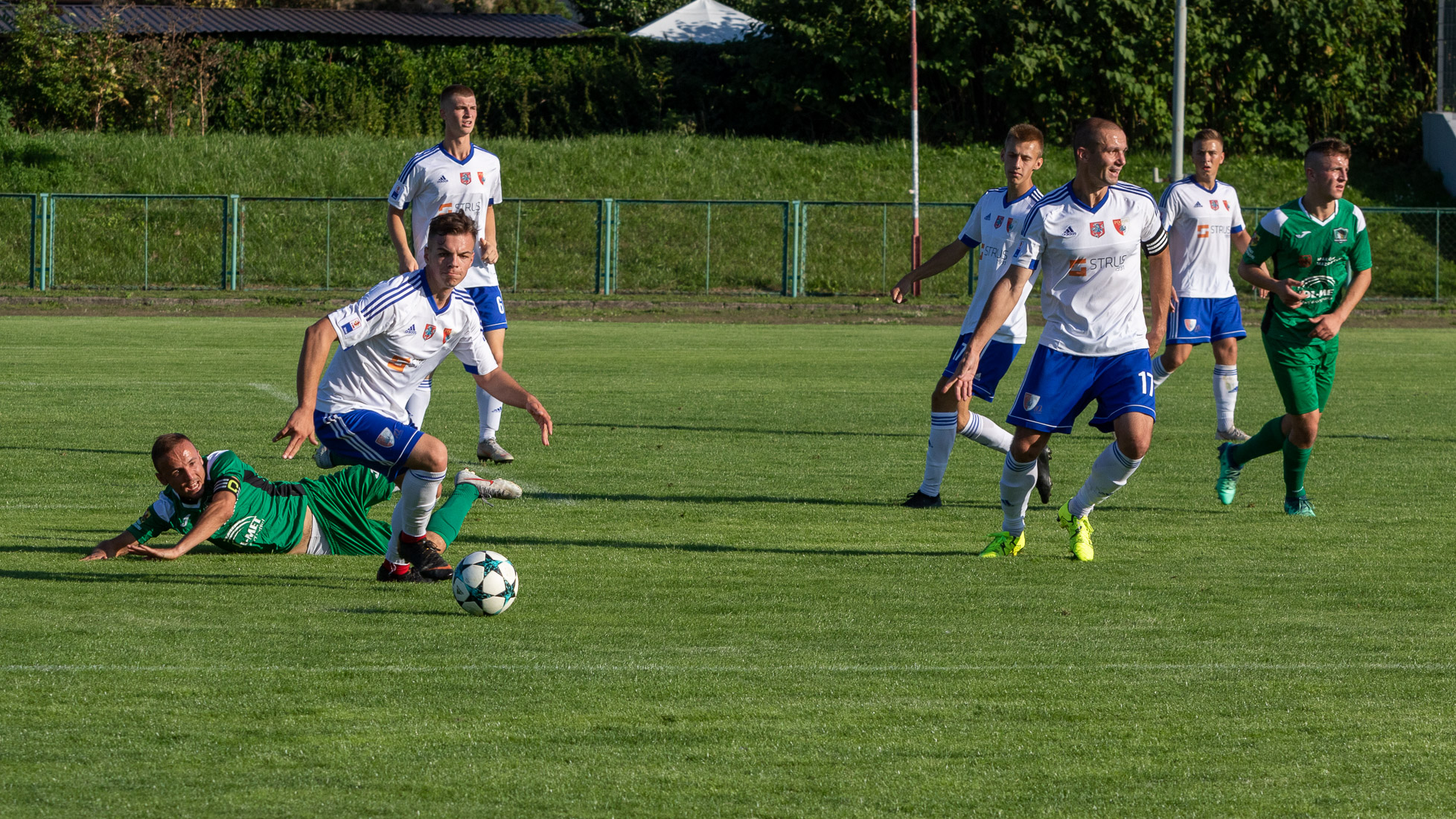 Pierwszą bramkę dla gości zdobył w 26. minucie spotkania Przemysław Rodak po dośrodkowaniu Dominika Krupy. Wynik ten utrzymał się do przerwy, mimo że nasi piłkarze atakowali zawzięcie.
