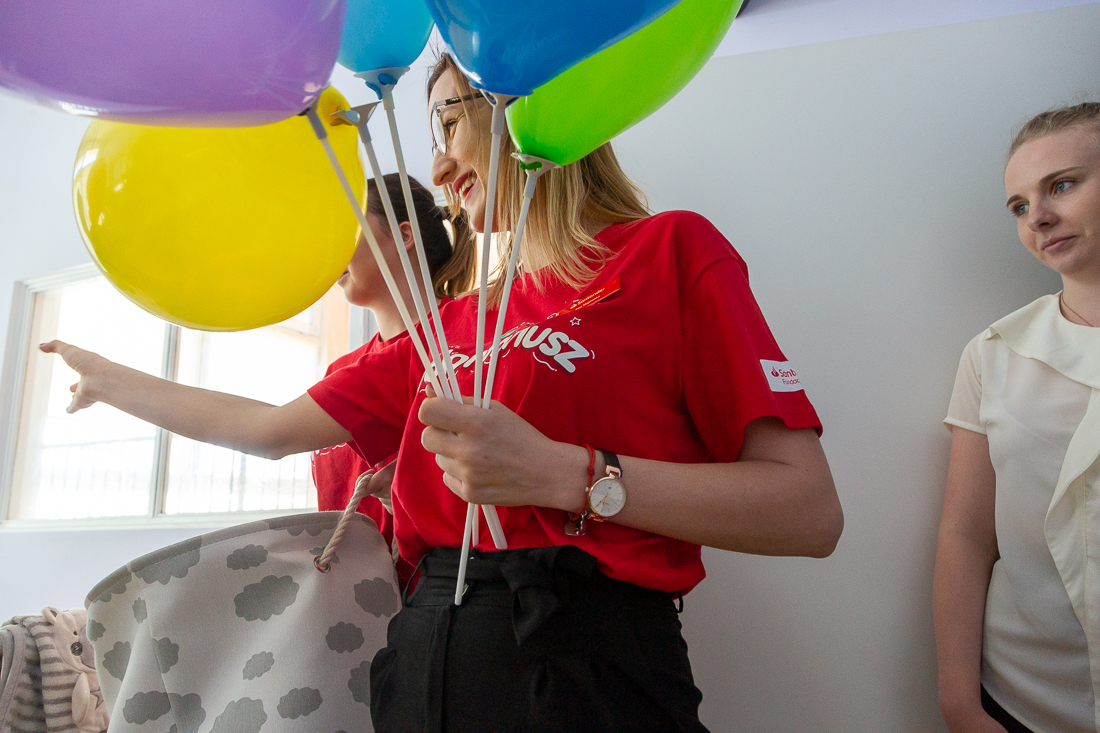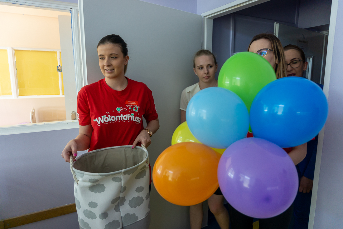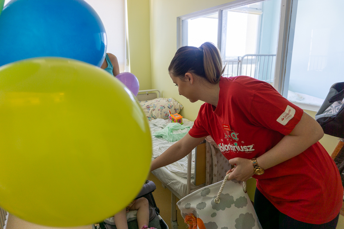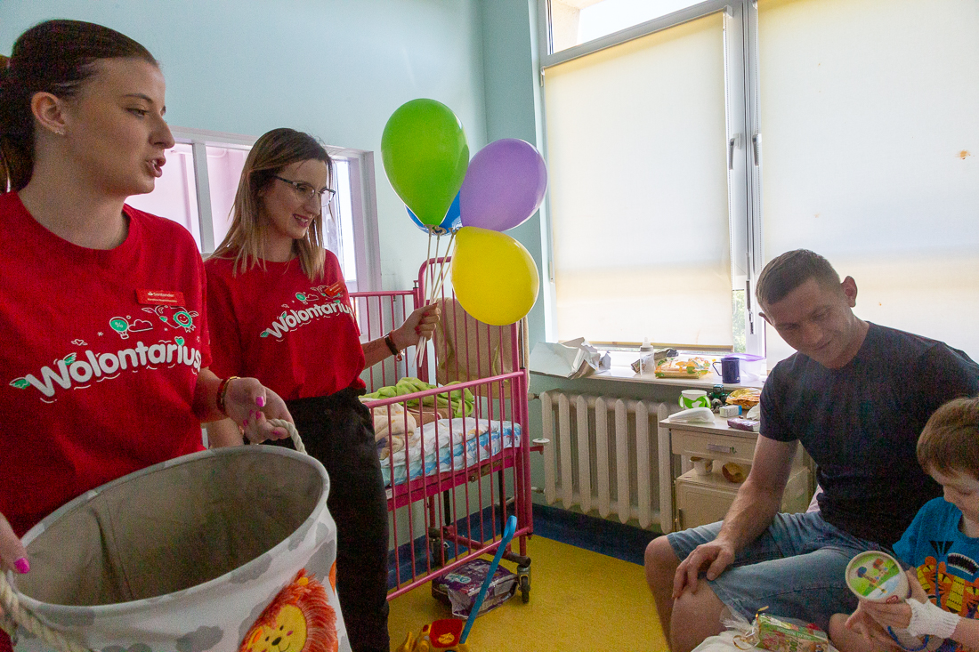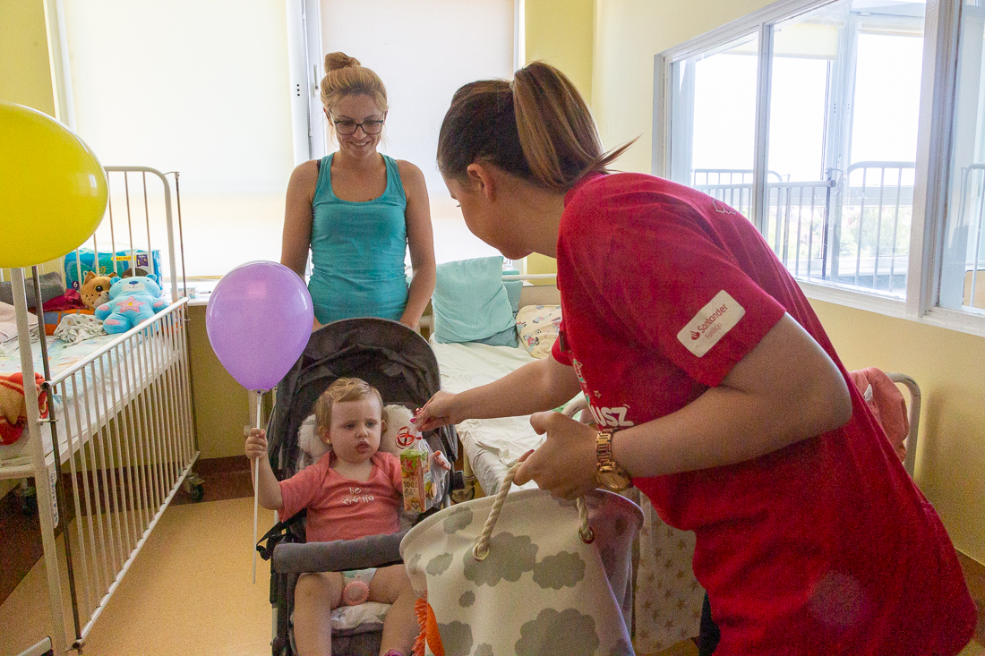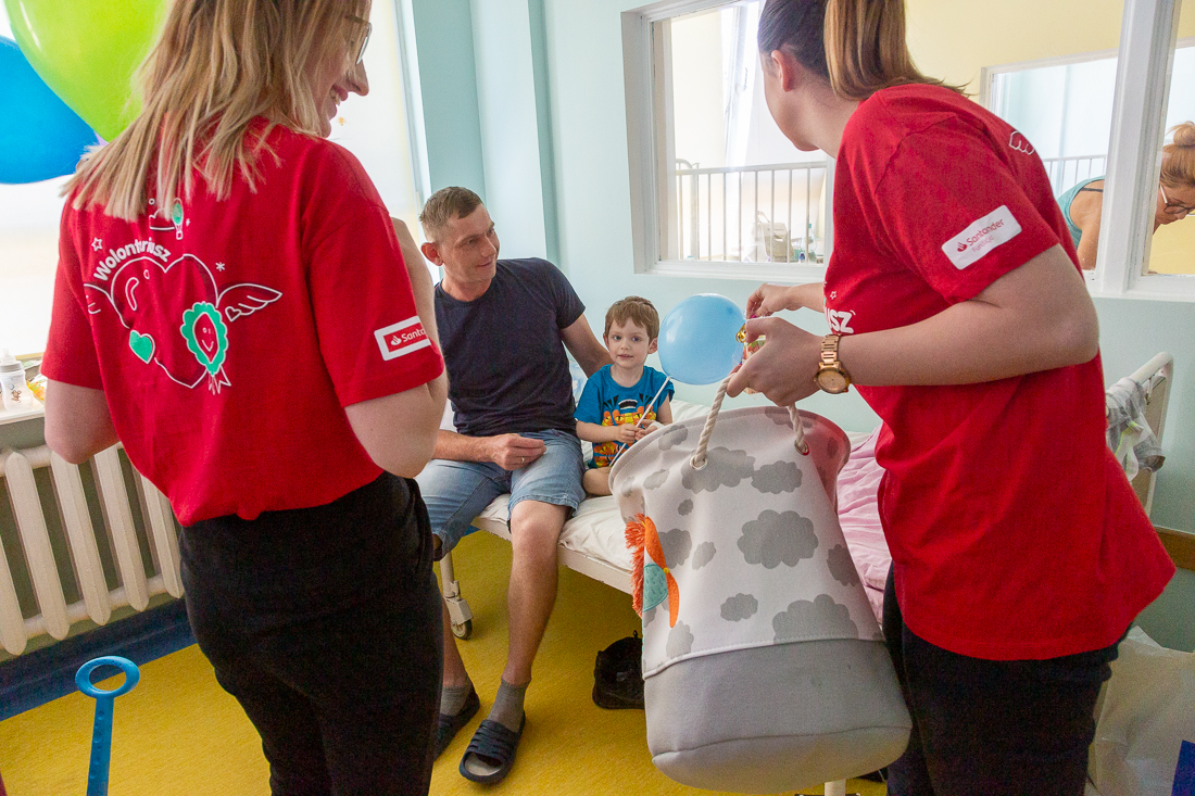 Na ręce ordynatora oddziału, doktora Mariusza Niewiadomskiego oraz pań pielęgniarek przekazały zabawki, książki i drobne upominki, aby umilić dzieciom pobyt na oddziale. Pieniądze na ich zakup przekazała Fundacja Santander Bank Polska S.A.