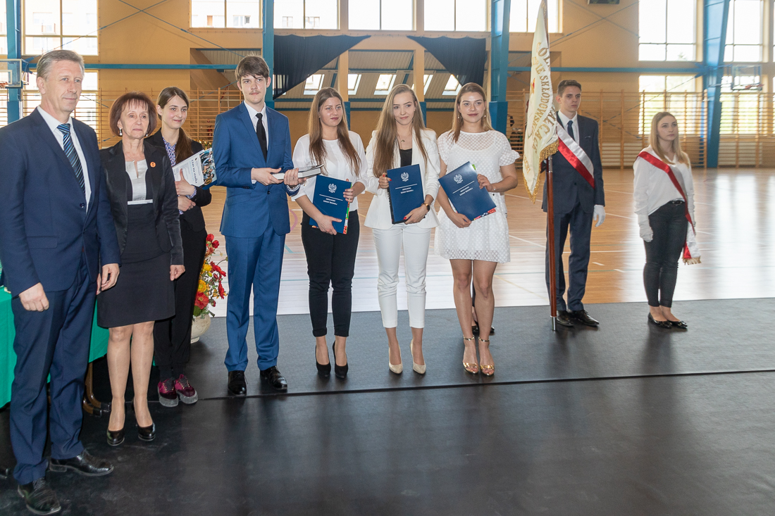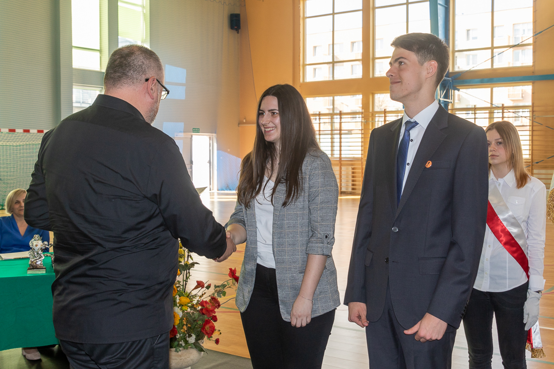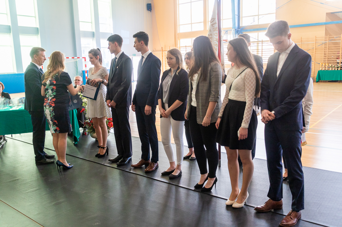 Poza obowiązkowymi przemówieniami zakończenie roku szkolnego było okazją do wręczenia nagród i wyróżnień za rozmaite osiągnięcia. Przede wszystkim za wysoką średnią ocen. Świadectwa z czerwonym paskiem – średnia ocen minimum 4,75 – z rąk dyrektora LO Roberta Kluczka otrzymali: