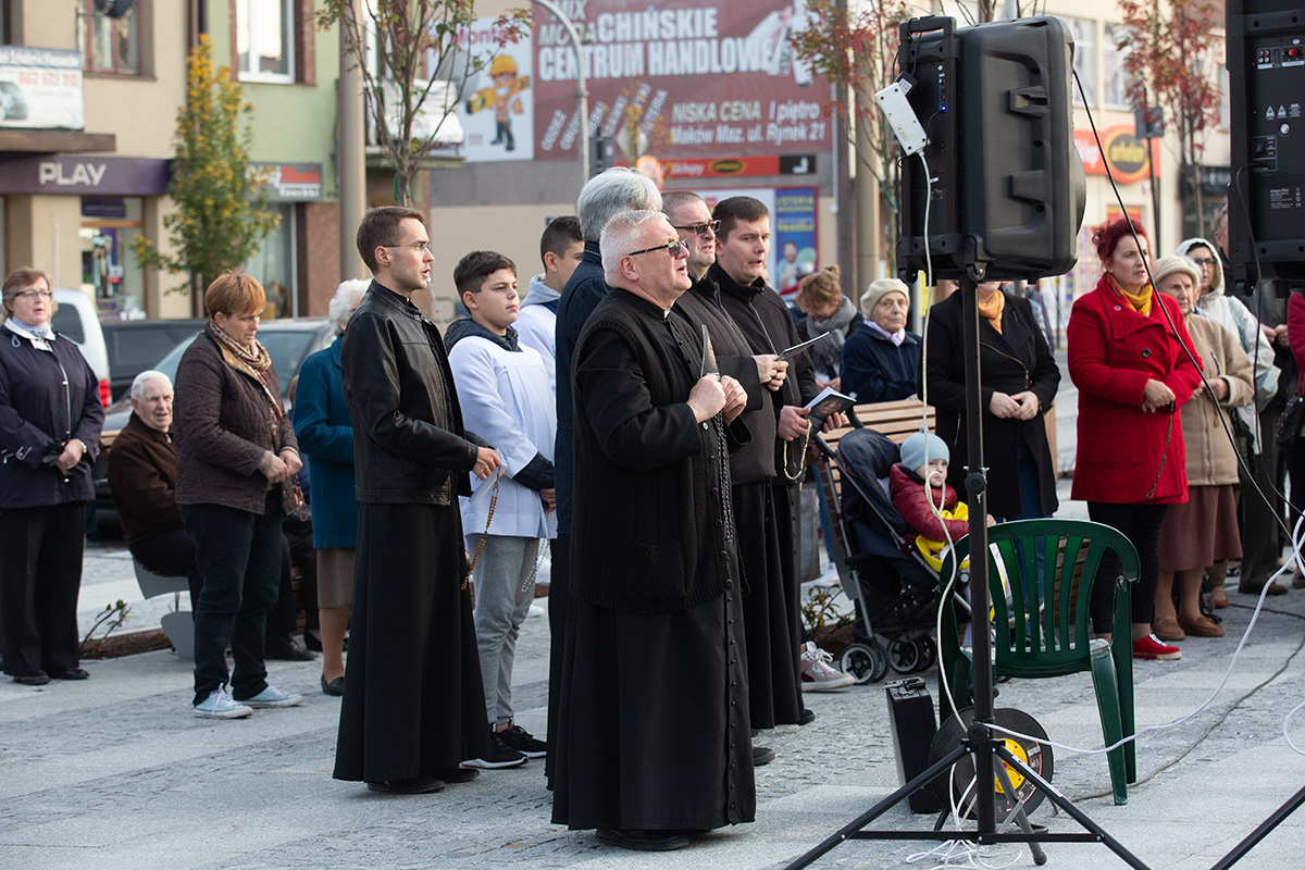 Na zaproszenie „wspólnot makowskich” w czwartek 17 października na makowskim Rynku odbyła się modlitwa różańcowa. Przyszli nie tylko mężczyźni. Wspólna modlitwa miała uroczystą oprawę dzięki udziałowi męskiej grupy różańcowej Nazaret.