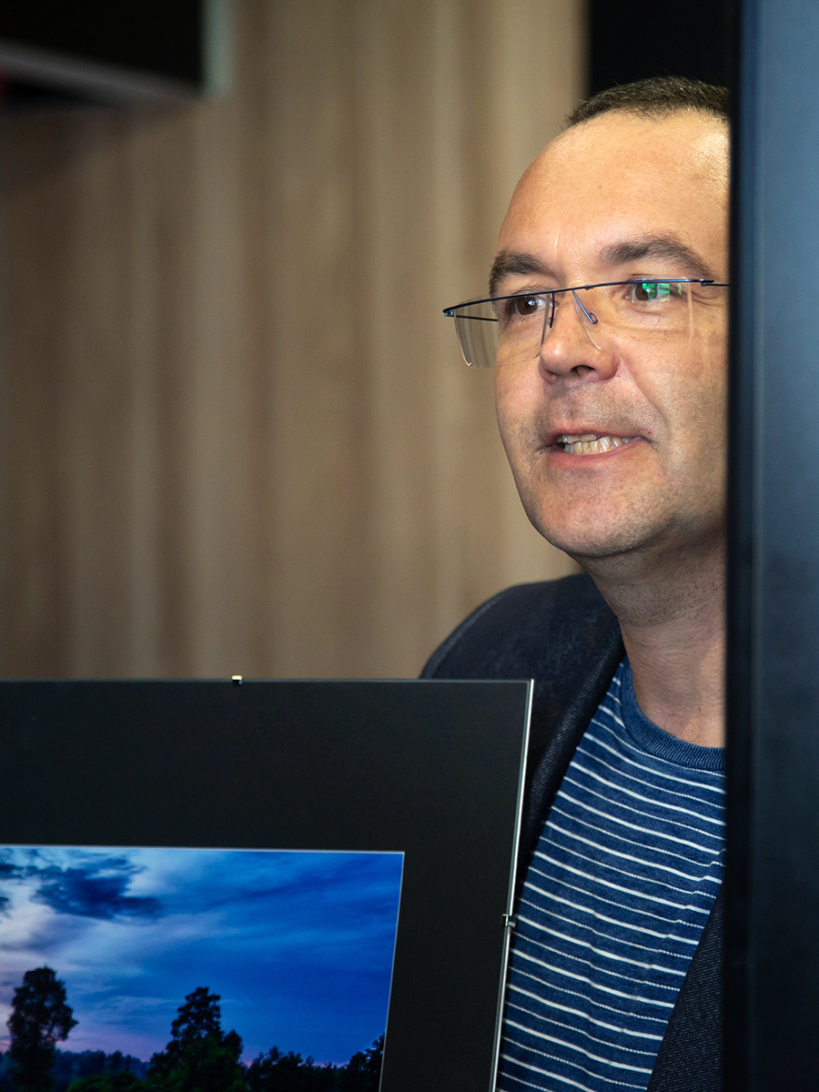 Jest na wystawie zdjęcie z którym wiąże się wyjątkowa historia. To zdjęcie drzewa na Łęgu. Było ono przez kilka lat tematem moich fotografii, ponieważ idealnie się komponowało. Każdego poranka jak tam jeździłem i fotografowałem, to wychodziły zdjęcia, z których każde mogło się znaleźć na wystawie. Tak bardzo było fotogeniczne. To drzewo kiedy umierało i na zdjęciach było już to widać, to koledzy żartowali, żebym posadził nowe na tym miejscu, bo jest to miejsce wyjątkowe. Niestety, to już jest koniec z tym drzewem, to już jest historia. Łęg się już zmienił nie do poznania, nie ma starego drewnianego mostu, nie ma już drzewa. To zdjęcie będzie na wystawie.