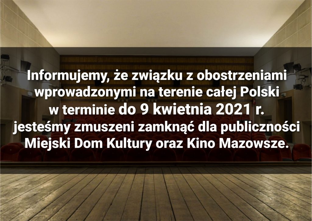 KulturaKino Mazowsze Miejski Dom Kultury i Kino Mazowsze ZAMKNIĘTE DO 09 KWIETNIA 2021 Dnia 18 mar 2021 Ostatnia aktualizacja 18 mar 2021 0 1 101 Podziel się Podnośnik Maków Mazowiecki 0 1 101 Podziel się FacebookTwitterWhatsAppE-mailDrukuj