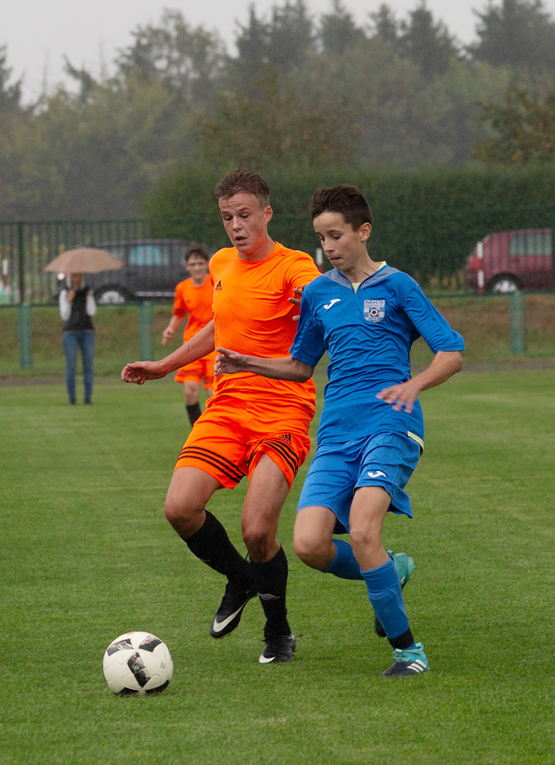 Druga połowa należała jednak do młodych piłkarzy z Przasnysza. Wspierani gromkim dopingiem swoich nielicznych kibiców, od razu po gwizdku sędziego na rozpoczęcie II połowy meczu, żwawo uszyli do ataku i zabrali się do odrabiania strat. Skutecznie. Mecz zakończył się remisem 4:4.