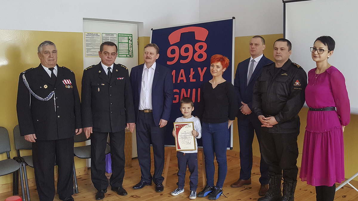 4-letni Patryk Popiołek nagrodzony przez strażaków i władze gminy. Nagrodę otrzymał także jego starszy brat Sebastian. Obydwaj chłopcy wykazali się bohaterską postawą w czasie pożaru domu.