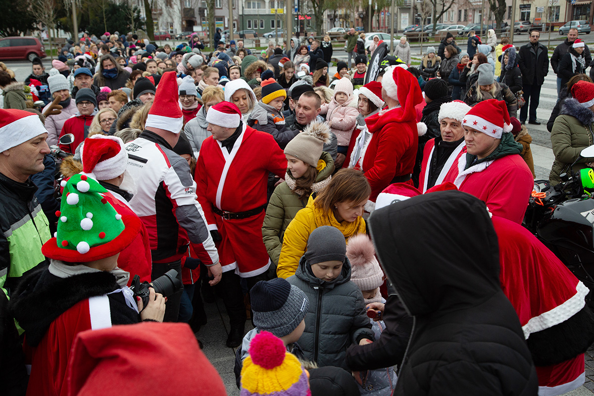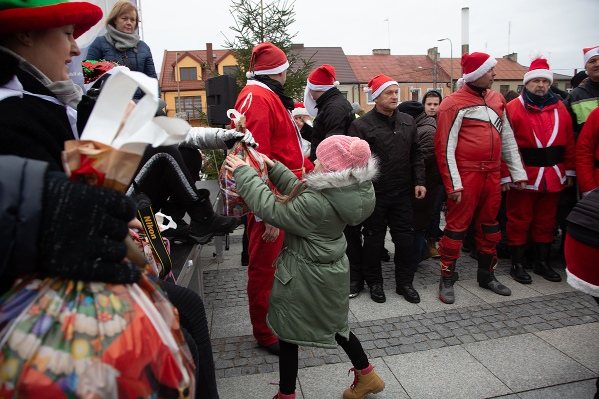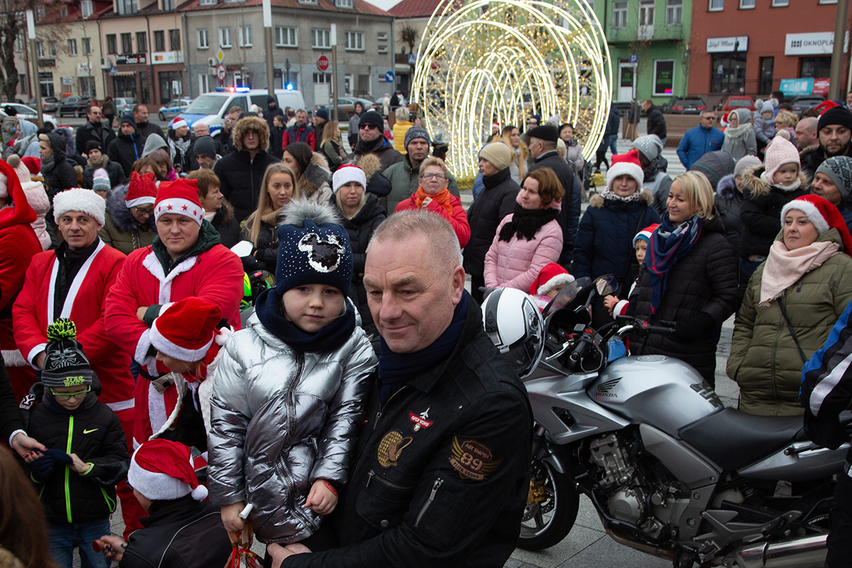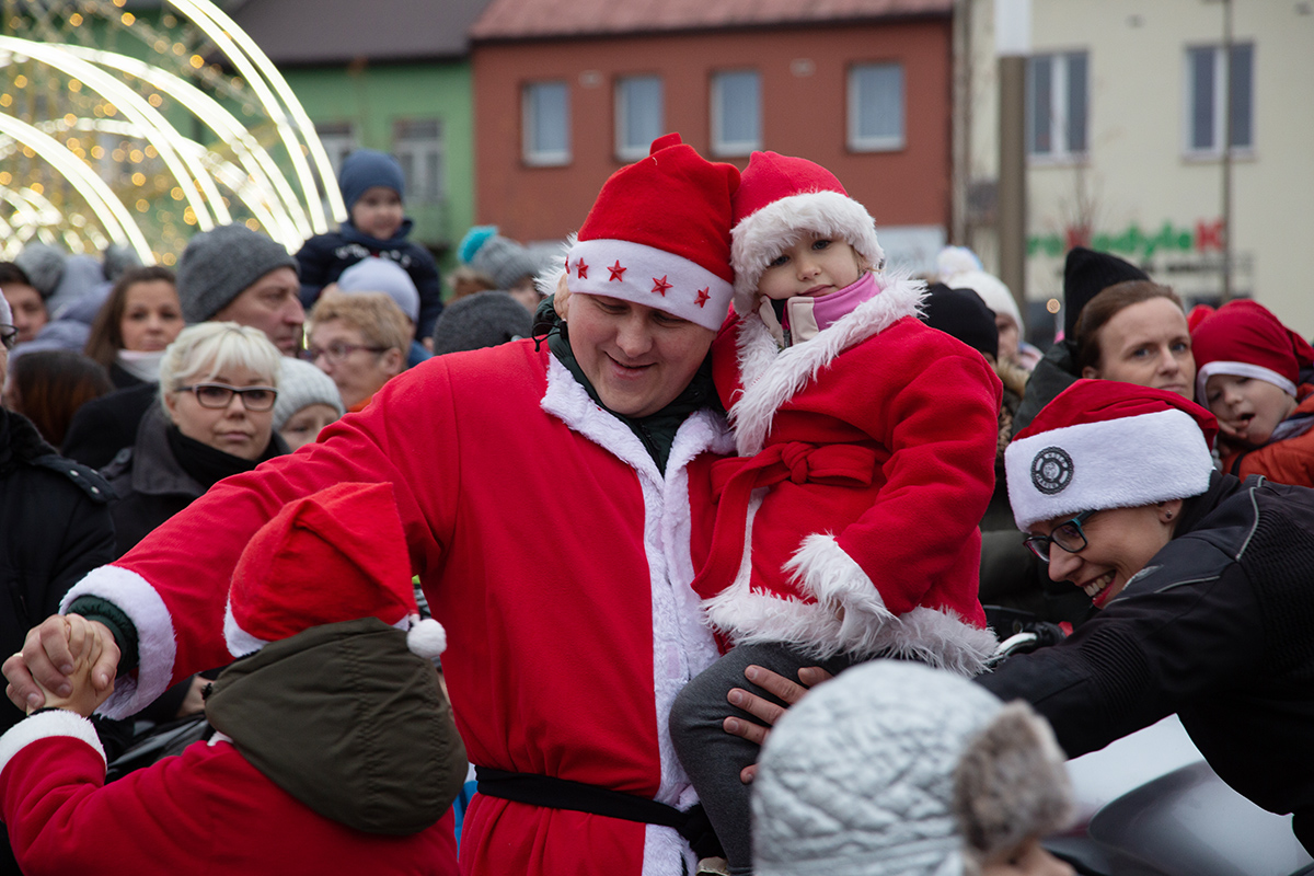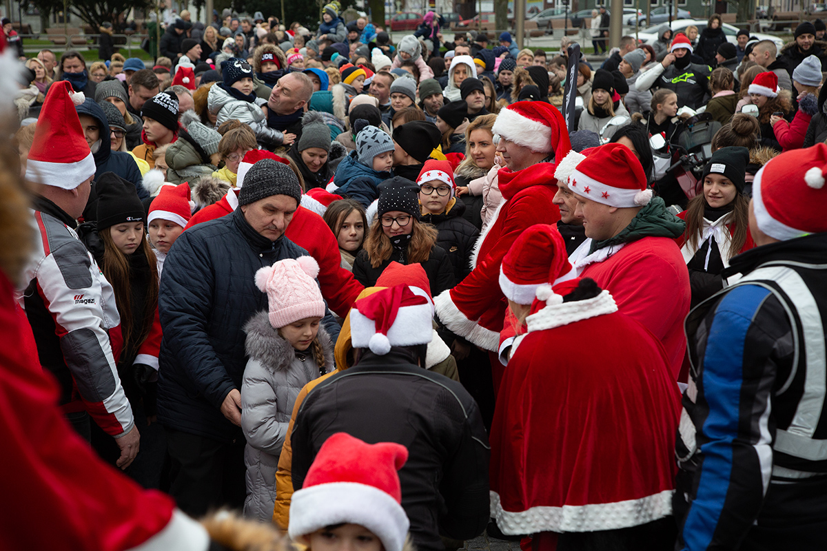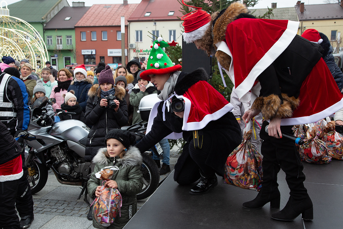 W niedzielne popołudnie Rynek zapełnił się dziećmi, które tłumnie przyszły razem z rodzicami i opiekunami. Motomikołaje nie zawiedli. Przyjechali punktualnie i przywieźli paczki z prezentami. Nie spodziewali się jednak aż takiej frekwencji.