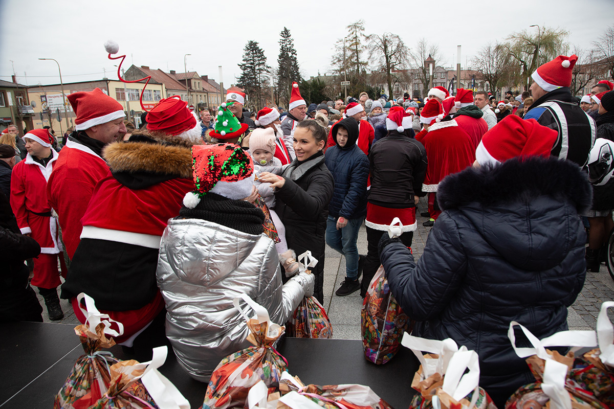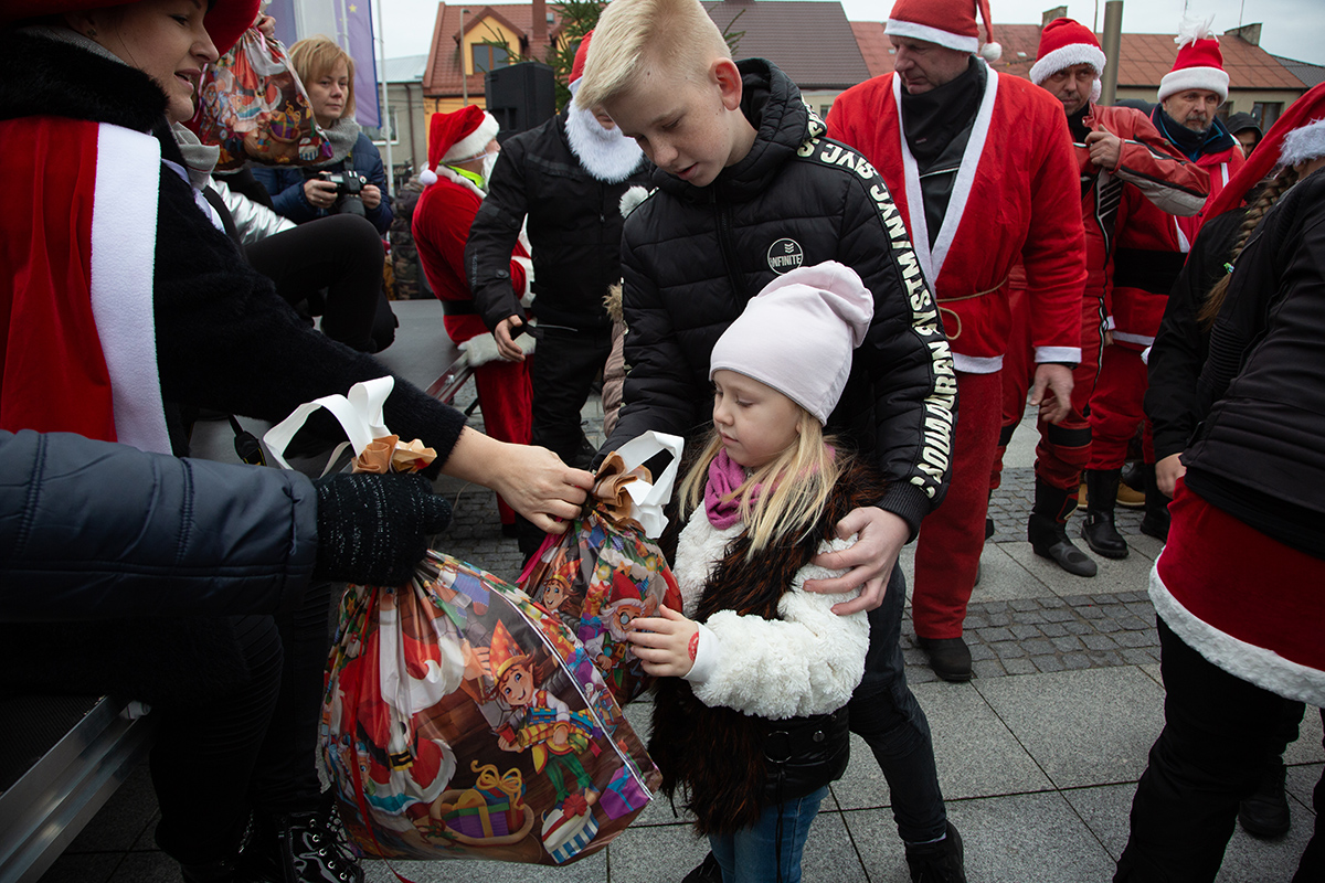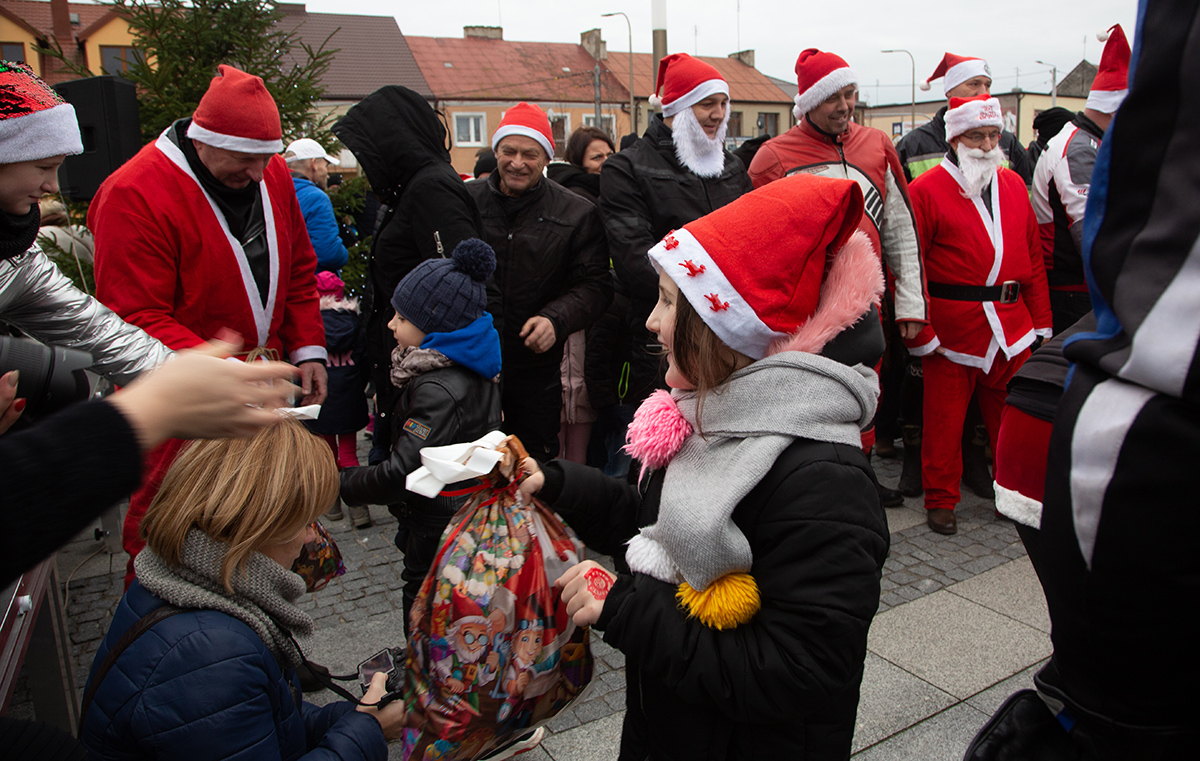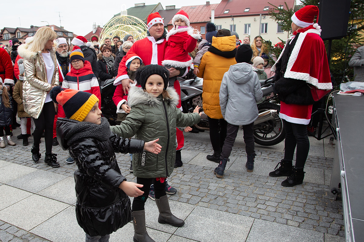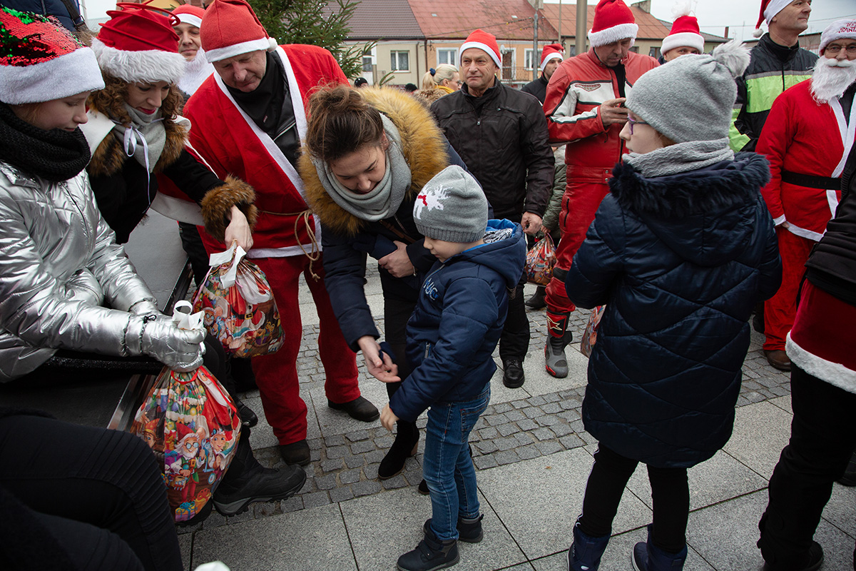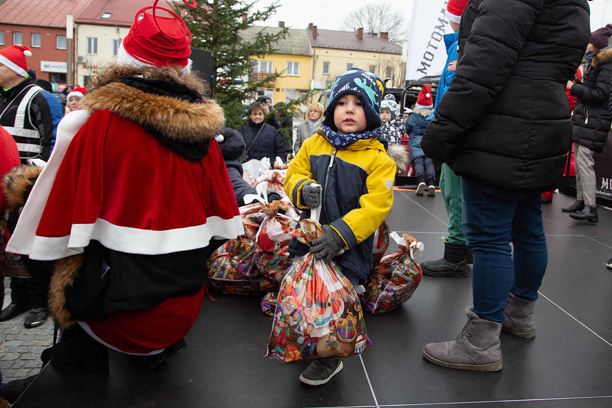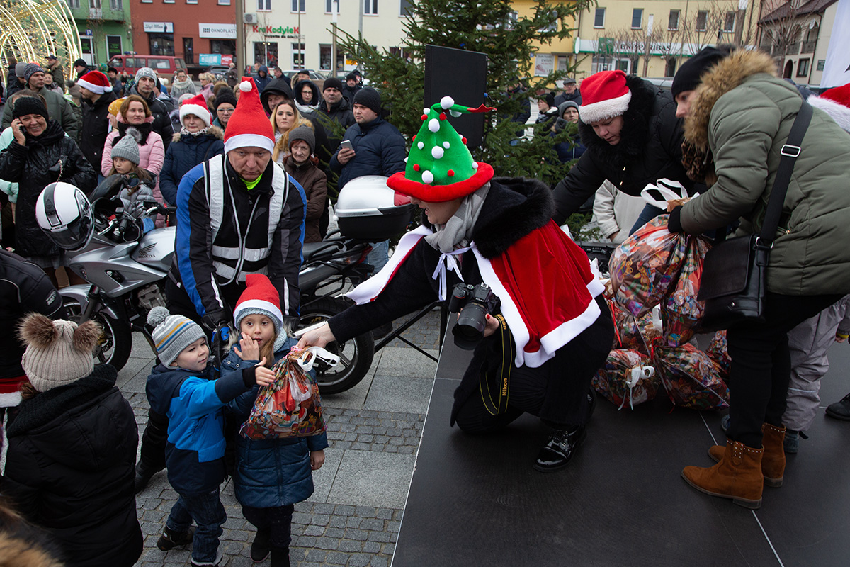 W niedzielne popołudnie Rynek zapełnił się dziećmi, które tłumnie przyszły razem z rodzicami i opiekunami. Motomikołaje nie zawiedli. Przyjechali punktualnie i przywieźli paczki z prezentami. Nie spodziewali się jednak aż takiej frekwencji.