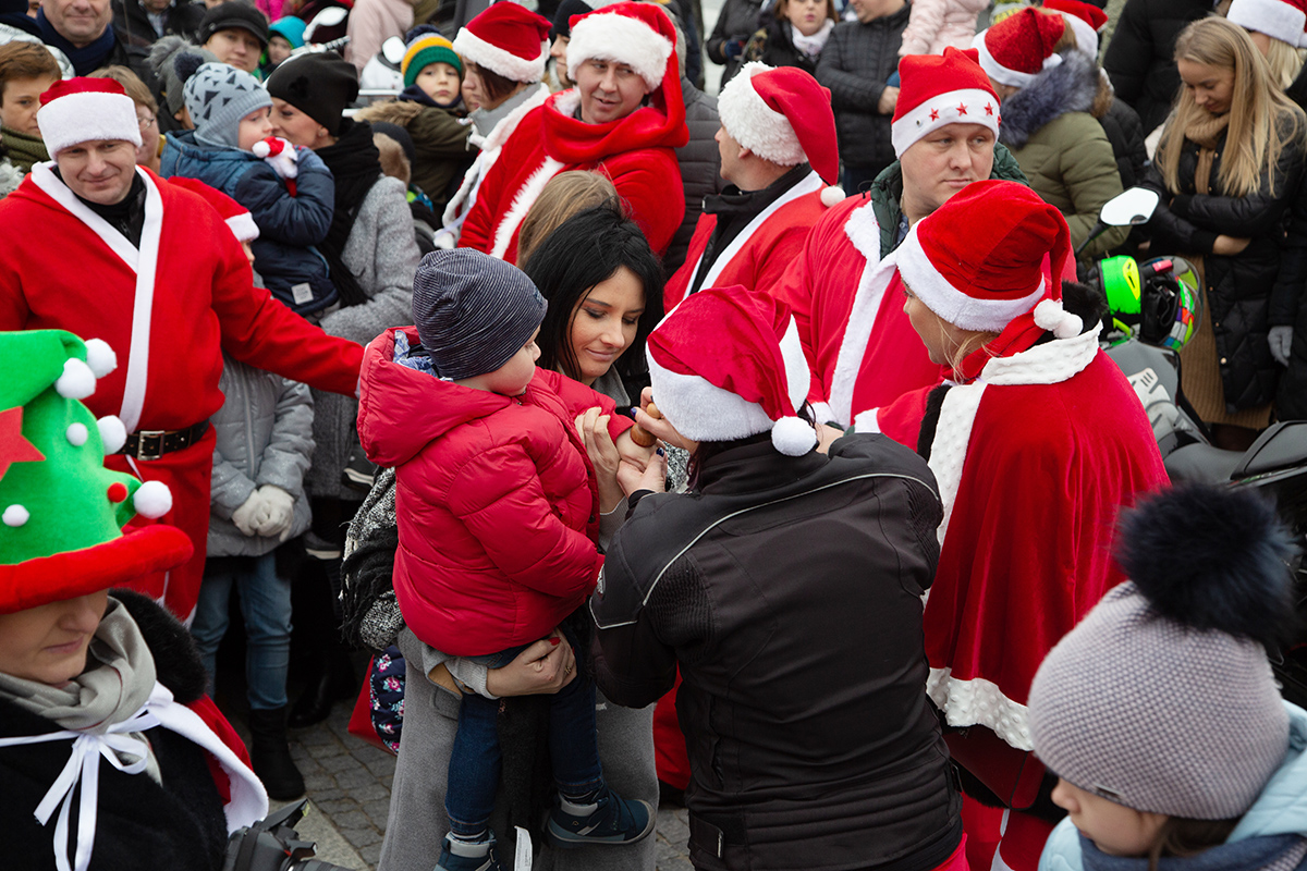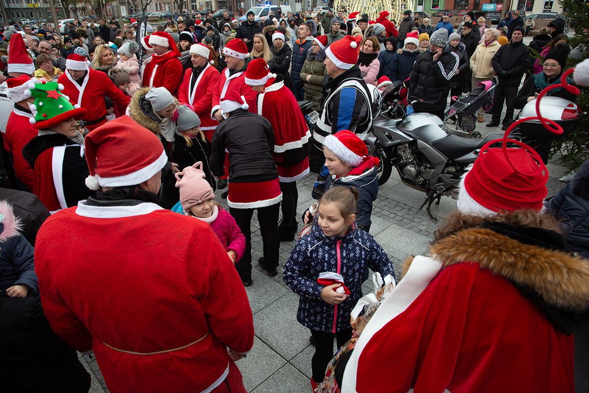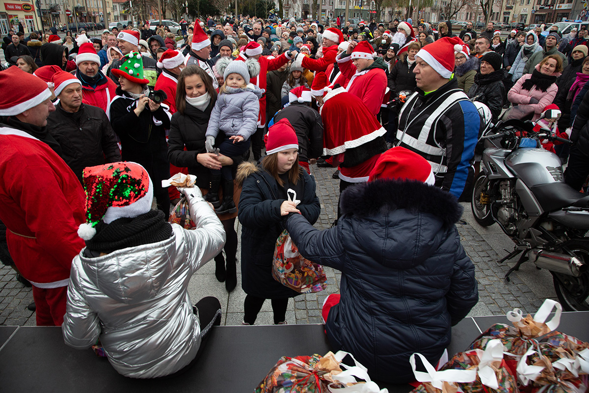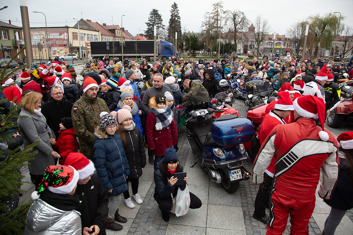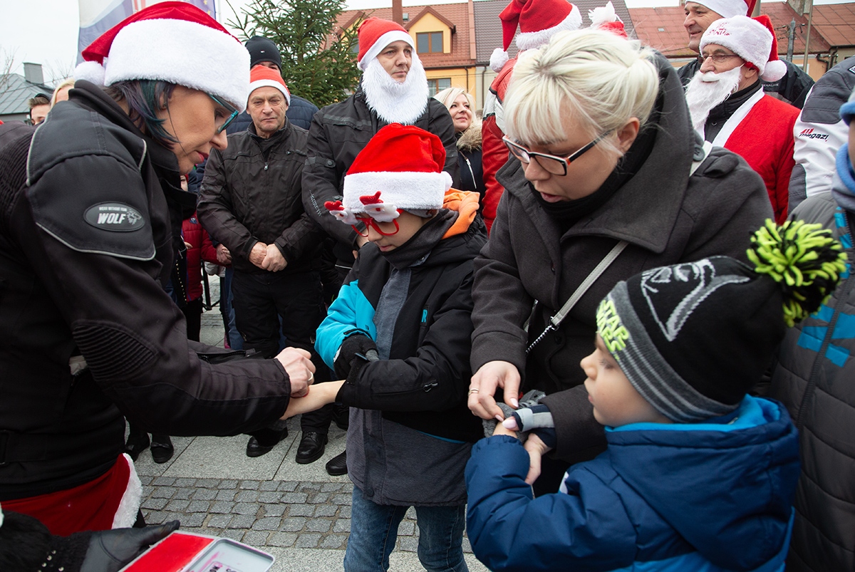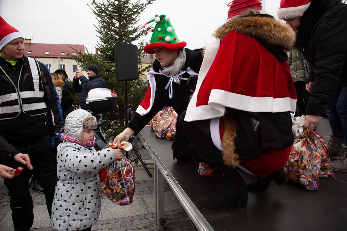 W niedzielne popołudnie Rynek zapełnił się dziećmi, które tłumnie przyszły razem z rodzicami i opiekunami. Motomikołaje nie zawiedli. Przyjechali punktualnie i przywieźli paczki z prezentami. Nie spodziewali się jednak aż takiej frekwencji.