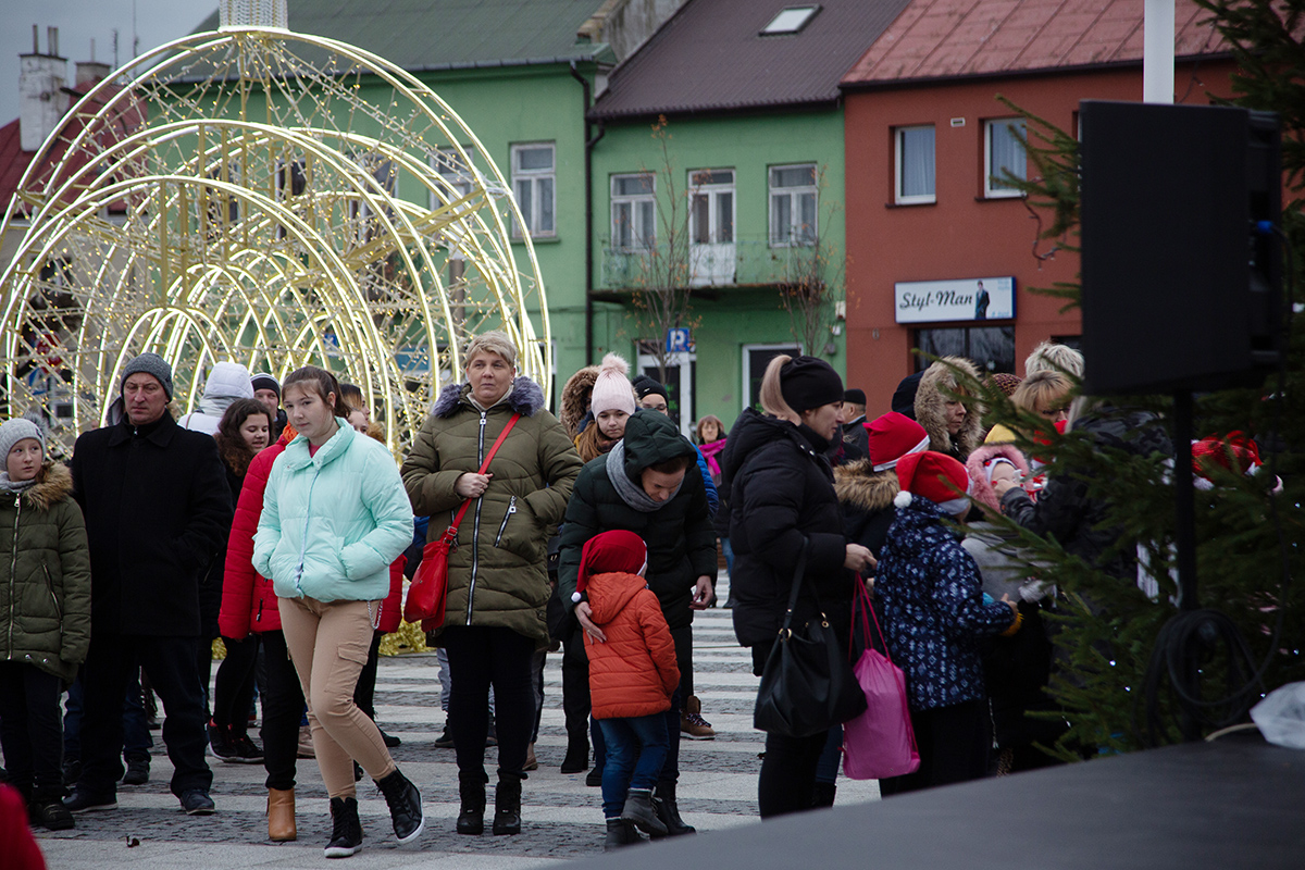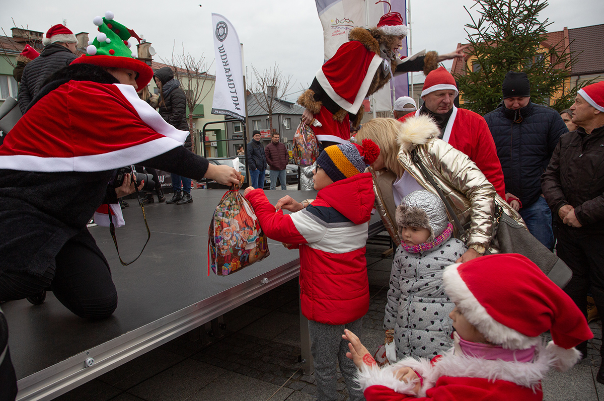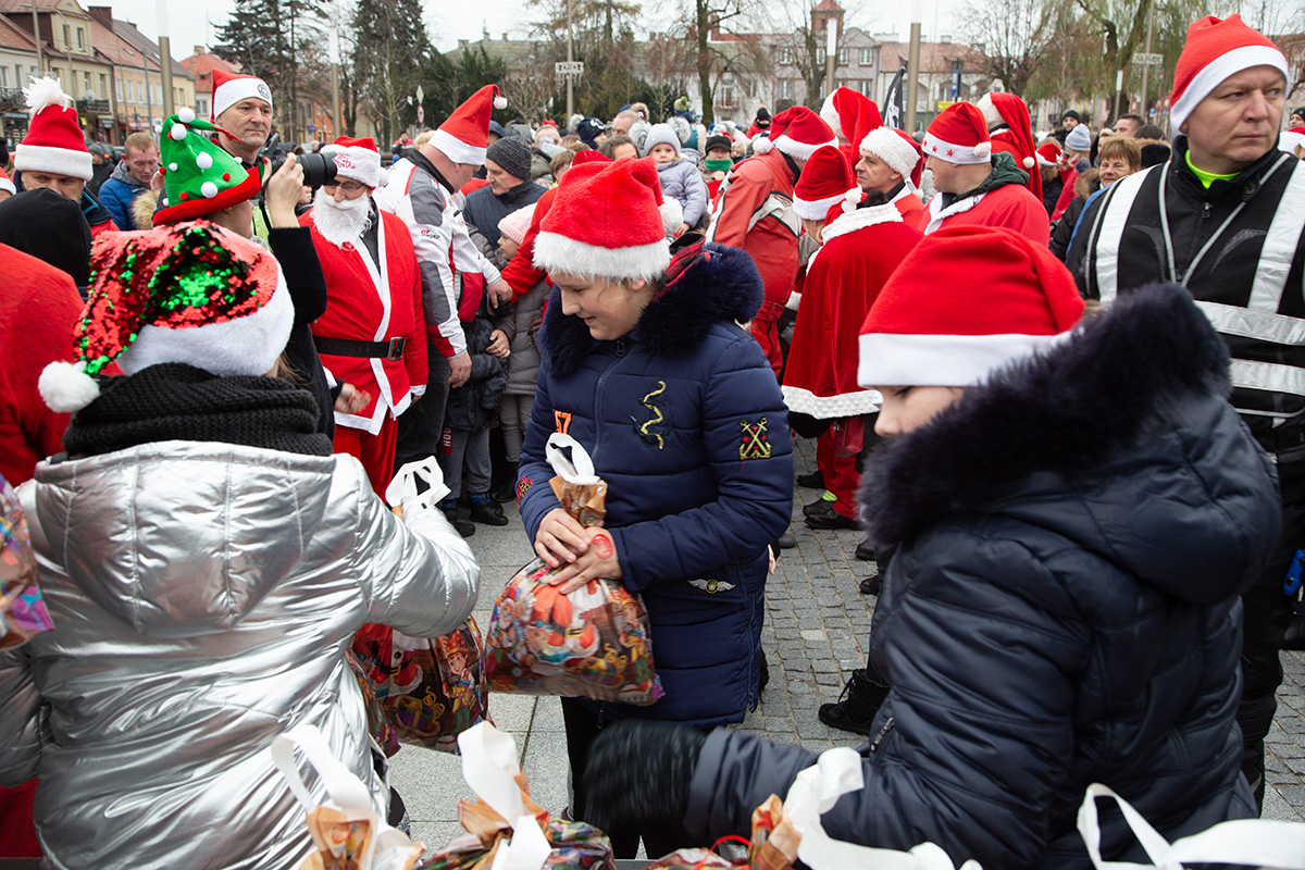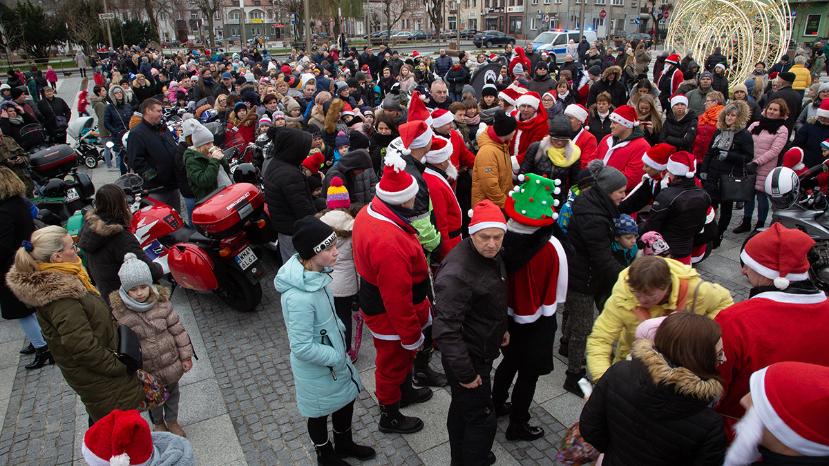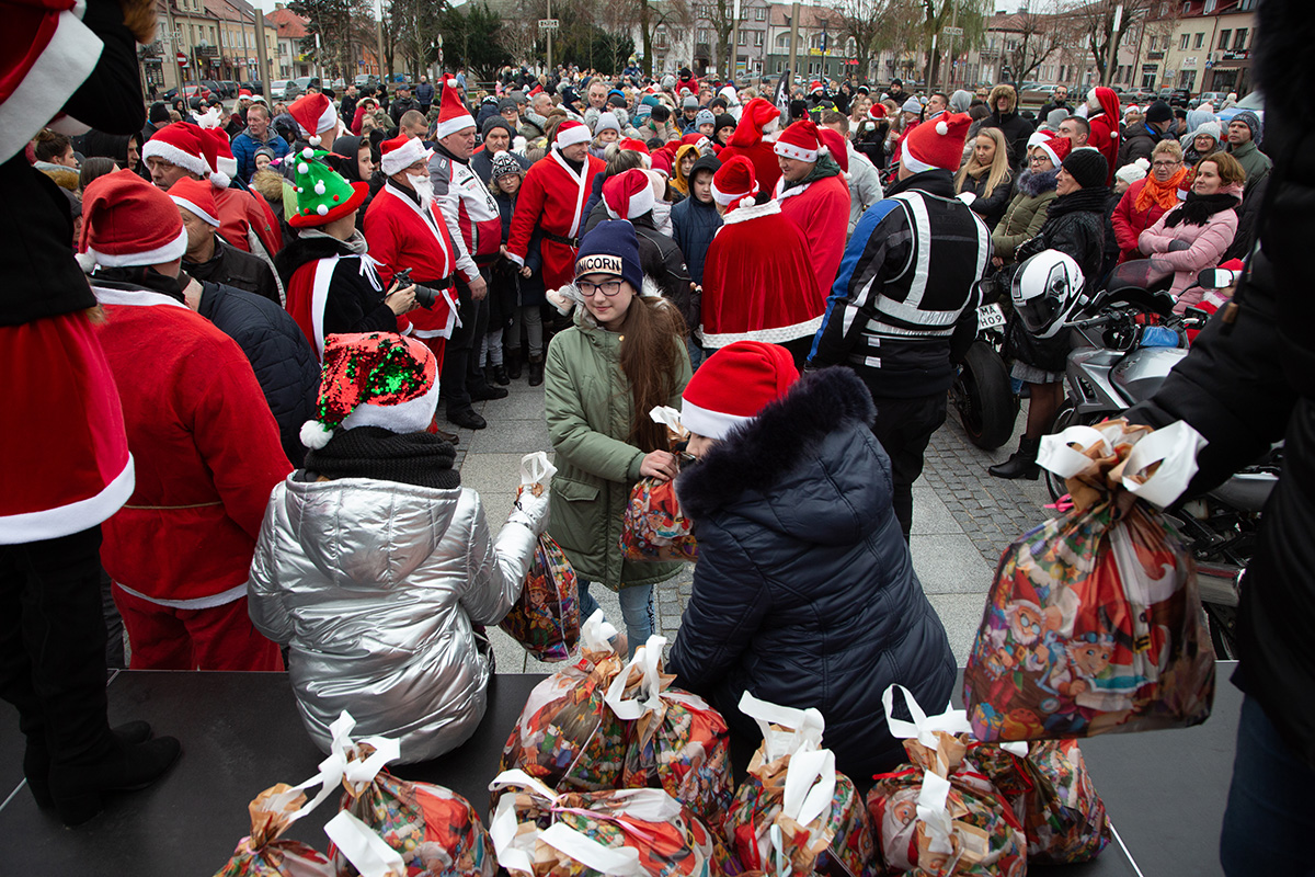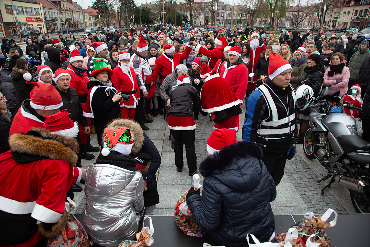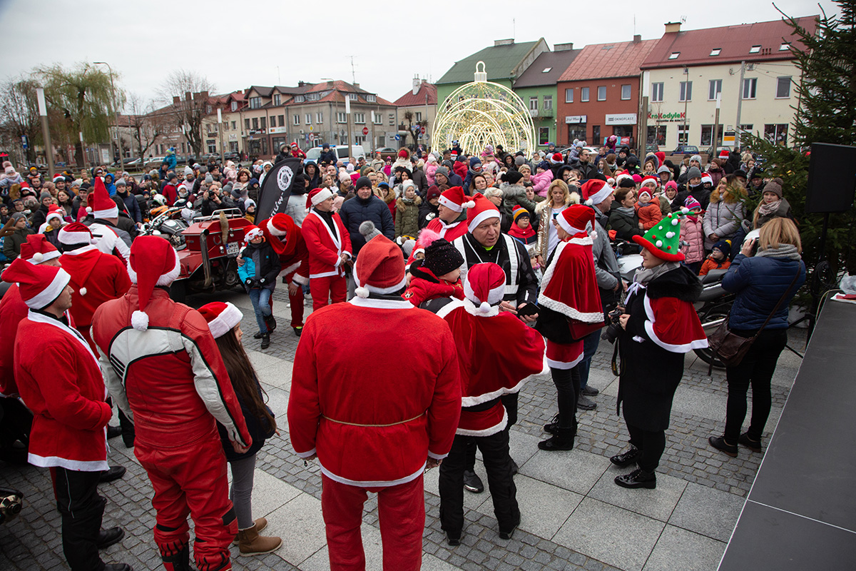 W niedzielne popołudnie Rynek zapełnił się dziećmi, które tłumnie przyszły razem z rodzicami i opiekunami. Motomikołaje nie zawiedli. Przyjechali punktualnie i przywieźli paczki z prezentami. Nie spodziewali się jednak aż takiej frekwencji.