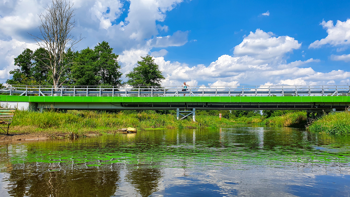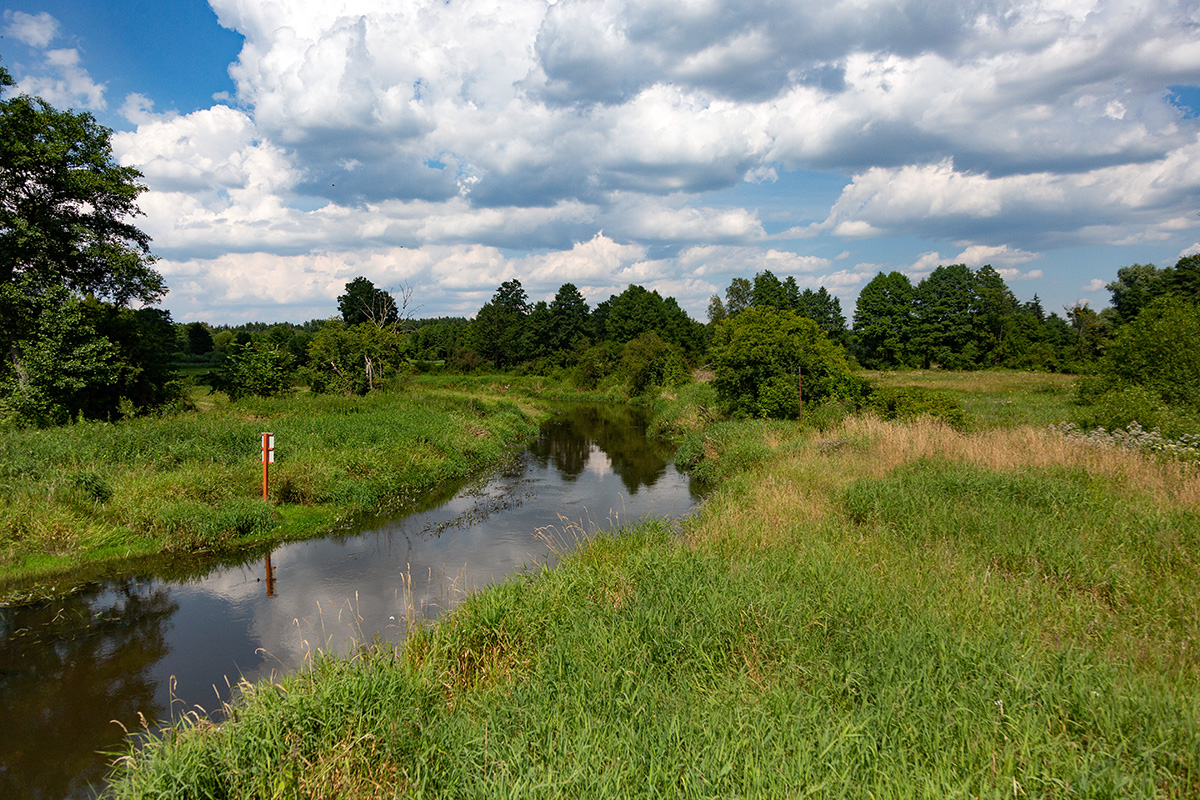Łąki za mostem w Podosiu, zwłaszcza po lewej stronie, zachęcają do zatrzymania się na posiłek. Później, za Podosiem, o miejsce na wyjście z kajaka i rozprostowanie kości będzie trudno.