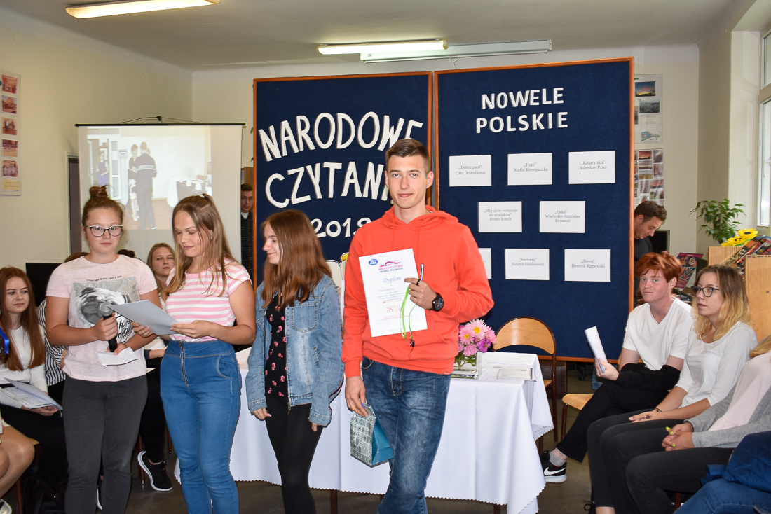 uczennice klasy IV TG przygotowały i przeprowadziły konkurs wiedzy o lekturach Narodowego Czytania.  Pierwsze miejsce zdobył Adrian Oborski z kl. IV TE na kolejnych miejscach uplasowały się uczennice klas młodszych.
