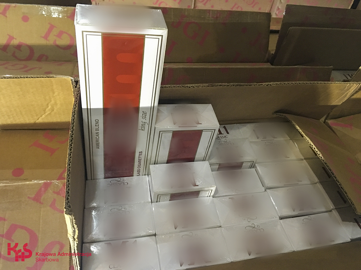 W efekcie przeszukania garażu znajdującego się na prywatnym terenie ujawniono 36 303 paczki zawierające po 20 szt. papierosów i 7 opakowań typu „Pizza” po 4000 sztuk papierosów oraz 11 kg tytoniu ciętego do palenia. Wartość towaru oszacowano na kwotę ponad pięćset tysięcy złotych.