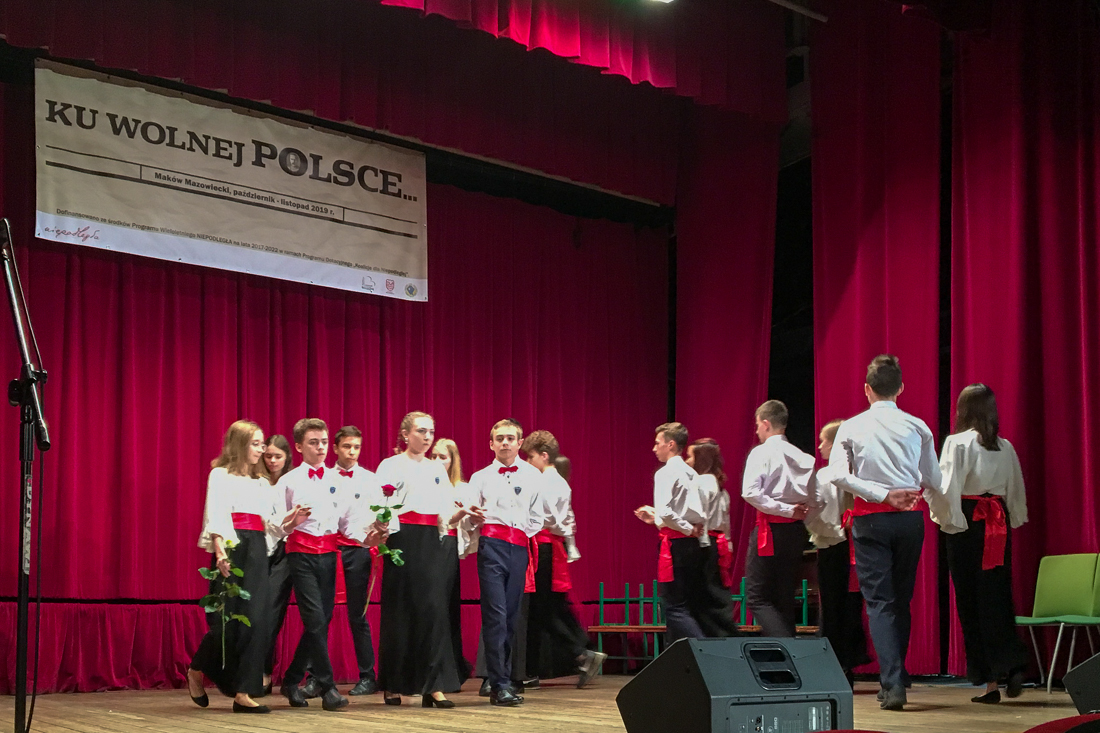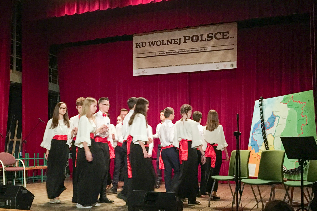 Zwieńczeniem projektu „Ku Wolnej Polsce …” był spektakl słownomuzyczny pod tym samym tytułem, przygotowany wspólnie przez młodzież i nauczycieli ze Szkoły Podstawowej nr 1 i Szkoły Podstawowej nr 2 w Makowie Mazowieckim.