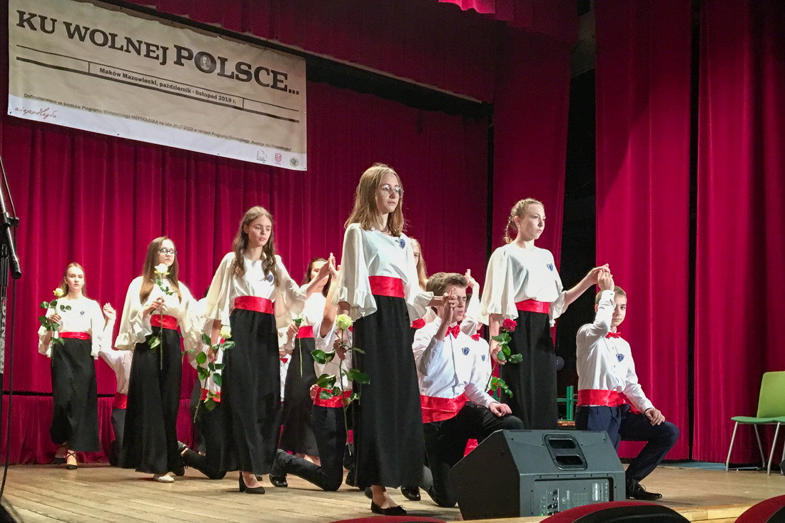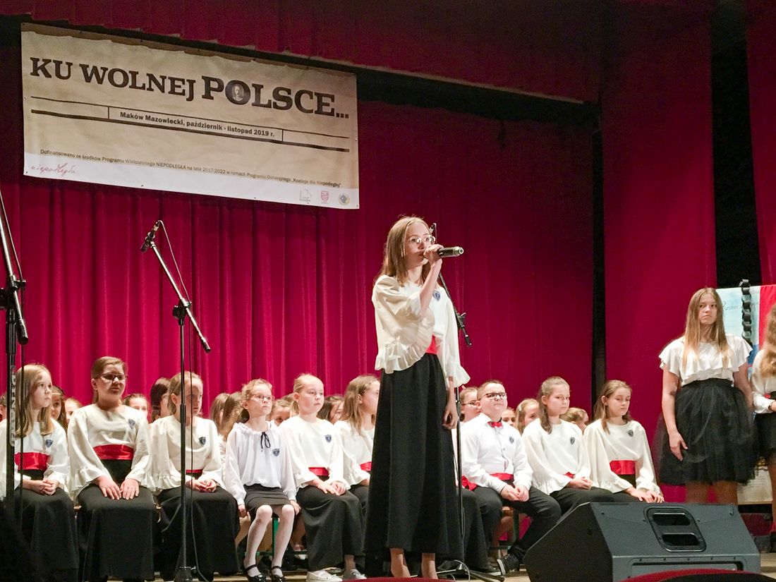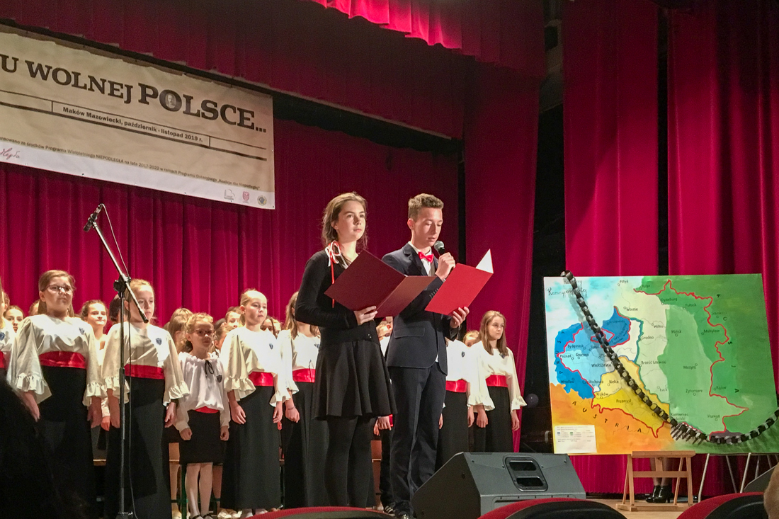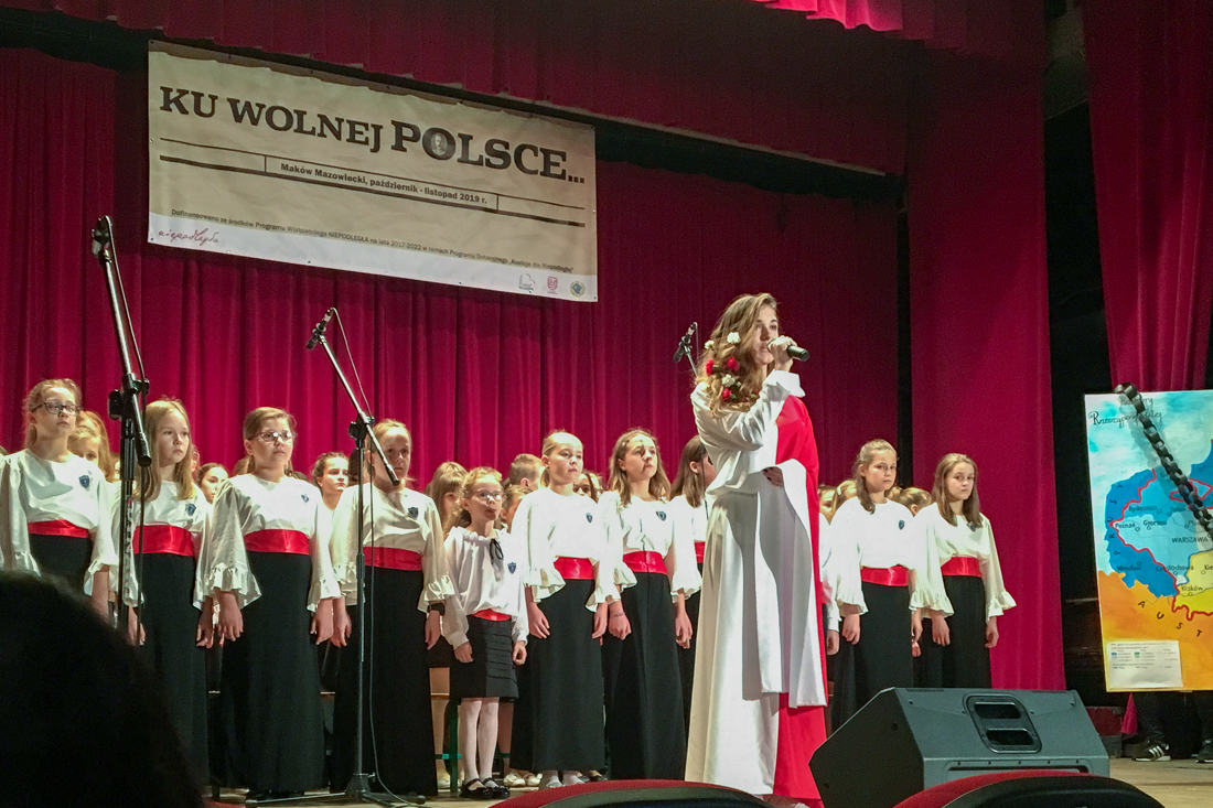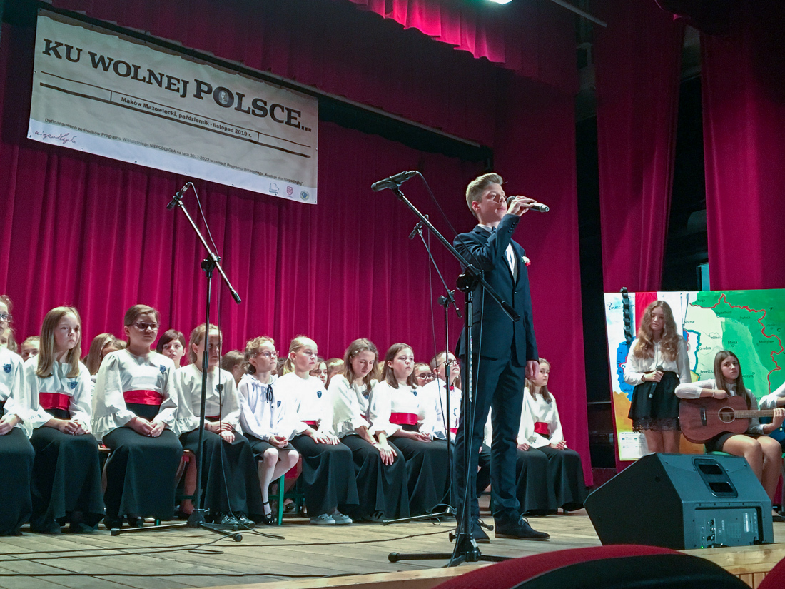 Celem projektu, realizowanego przez Fundację „Kocham Maków” ze wsparciem Urzędu Miejskiego i Miejskiego Domu Kultury w Makowie Mazowieckim, a dofinansowanym ze środków Programu Wieloletniego NIEPODLEGŁA na lata 2017-2022 w ramach Programu Dotacyjnego „Koalicje dla Niepodległej,” było nie tylko upowszechnianie historii naszego Kraju i promowanie patriotycznych postaw, lecz również integracja makowskiego społeczeństwa. Udało się – dzięki wspaniałej współpracy obydwóch makowskich szkół podstawowych widownia wypełniła się po brzegi – od dzieci w wieku przedszkolnym – po babcie i dziadków młodych wykonawców.