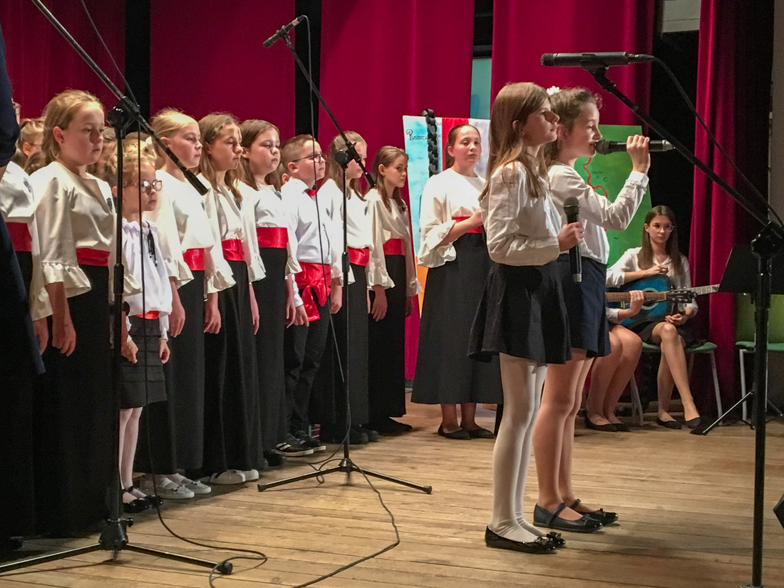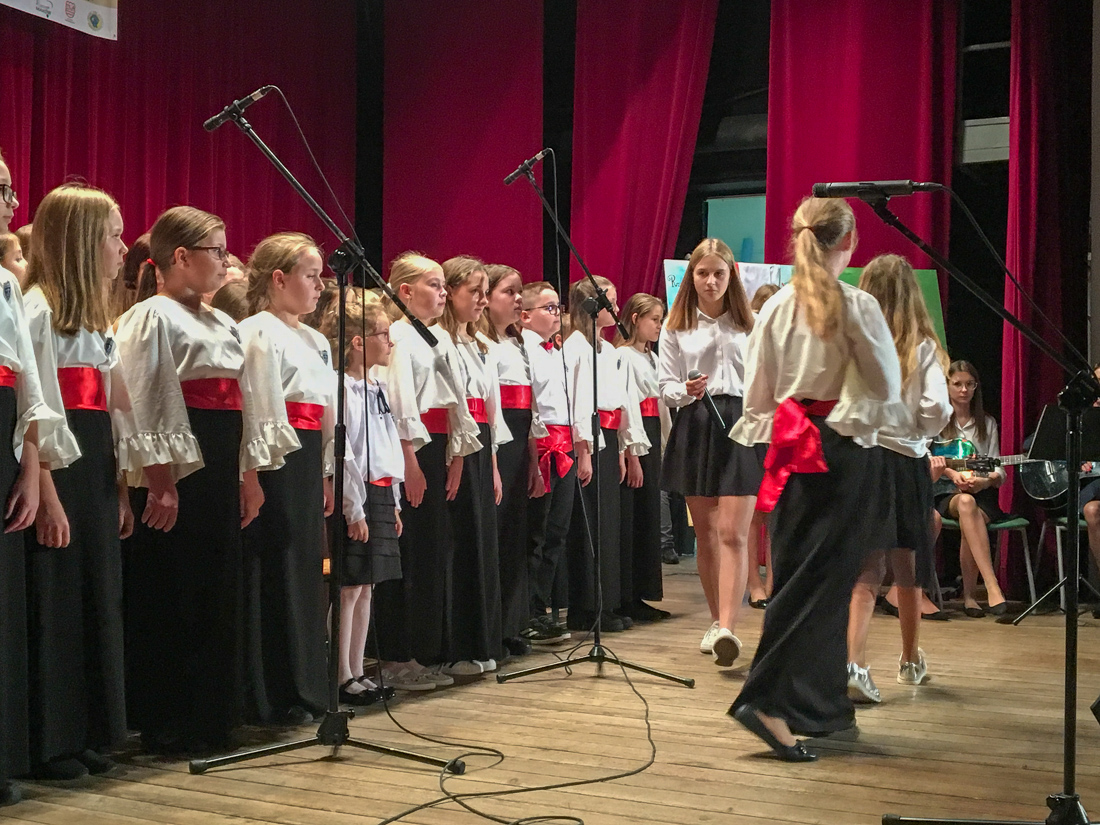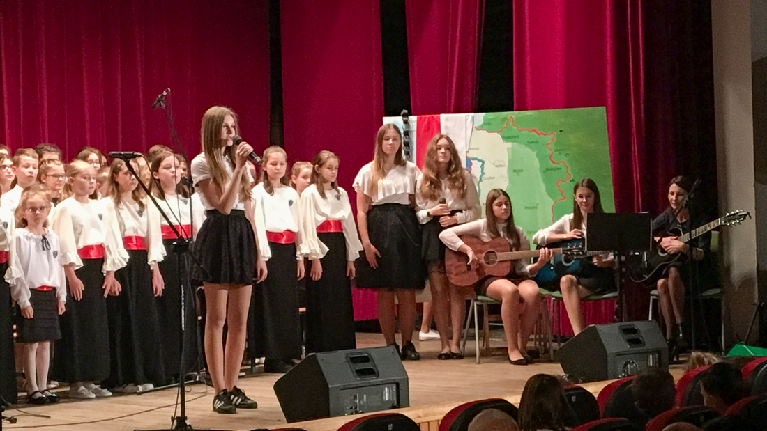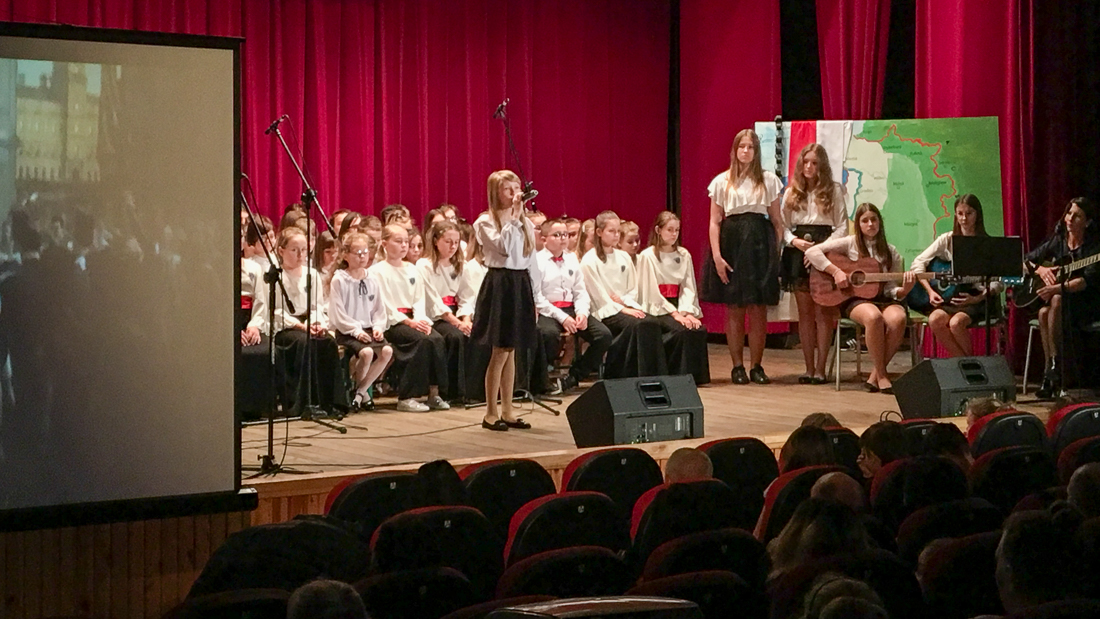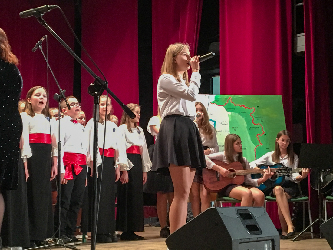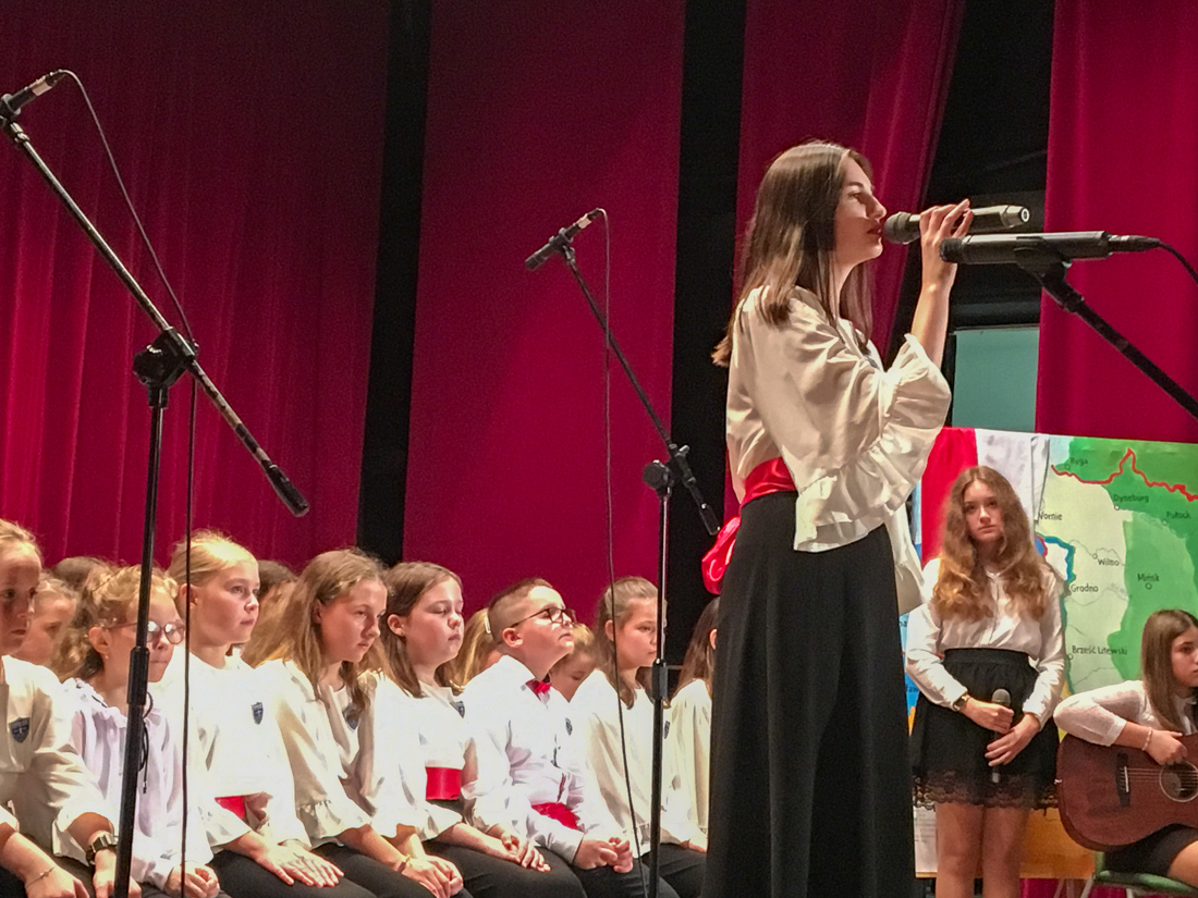 Ponad 100 uczniów z obydwóch szkół, wraz ze swoimi wychowawcami, stanęli ramię w ramię na scenie Miejskiego Domu Kultury, by oddać hołd naszej Ojczyźnie i Jej Obrońcom w 101 rocznicę odzyskania niepodległości.