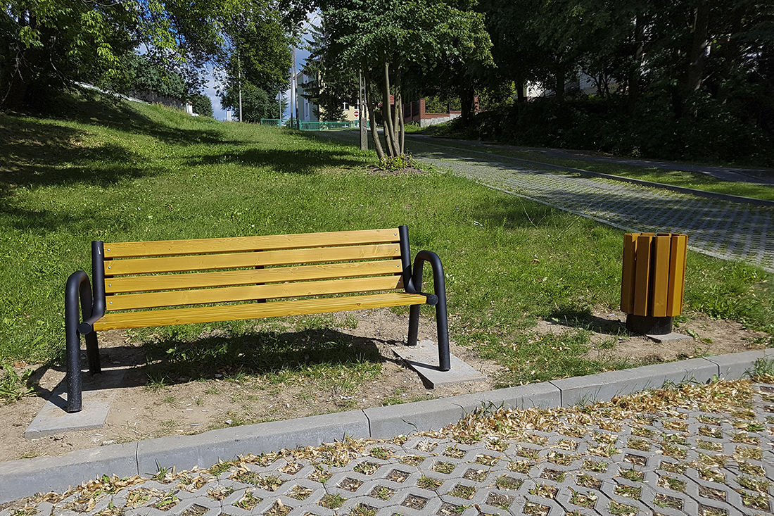 Kolejna ławka z nowej serii znajduje się u wylotu ulicy Żytniej w cieniu starego dębu. Obok niej też jest kosz na śmieci. Sześć nowych ławek stanęło nad zalewem, dwie przy bloku przy ul. Moniuszki przy straży. Doliczyliśmy się dziesięciu nowych ławek.