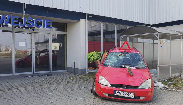 Pod Galerią Maków (w likwidacji) ktoś pozostawił czerwonego forda focusa, nr. rej. WG 97 493. Pojazd stoi tuż przy wejściu do galerii. Nie ma lewego przedniego koła, przednia szyba jest rozbita, a drzwi od strony pasażera są otwarte. Wszystko wskazuje na to, że pojazd został porzucony, a właściciel nie ma zamiaru go zabrać.