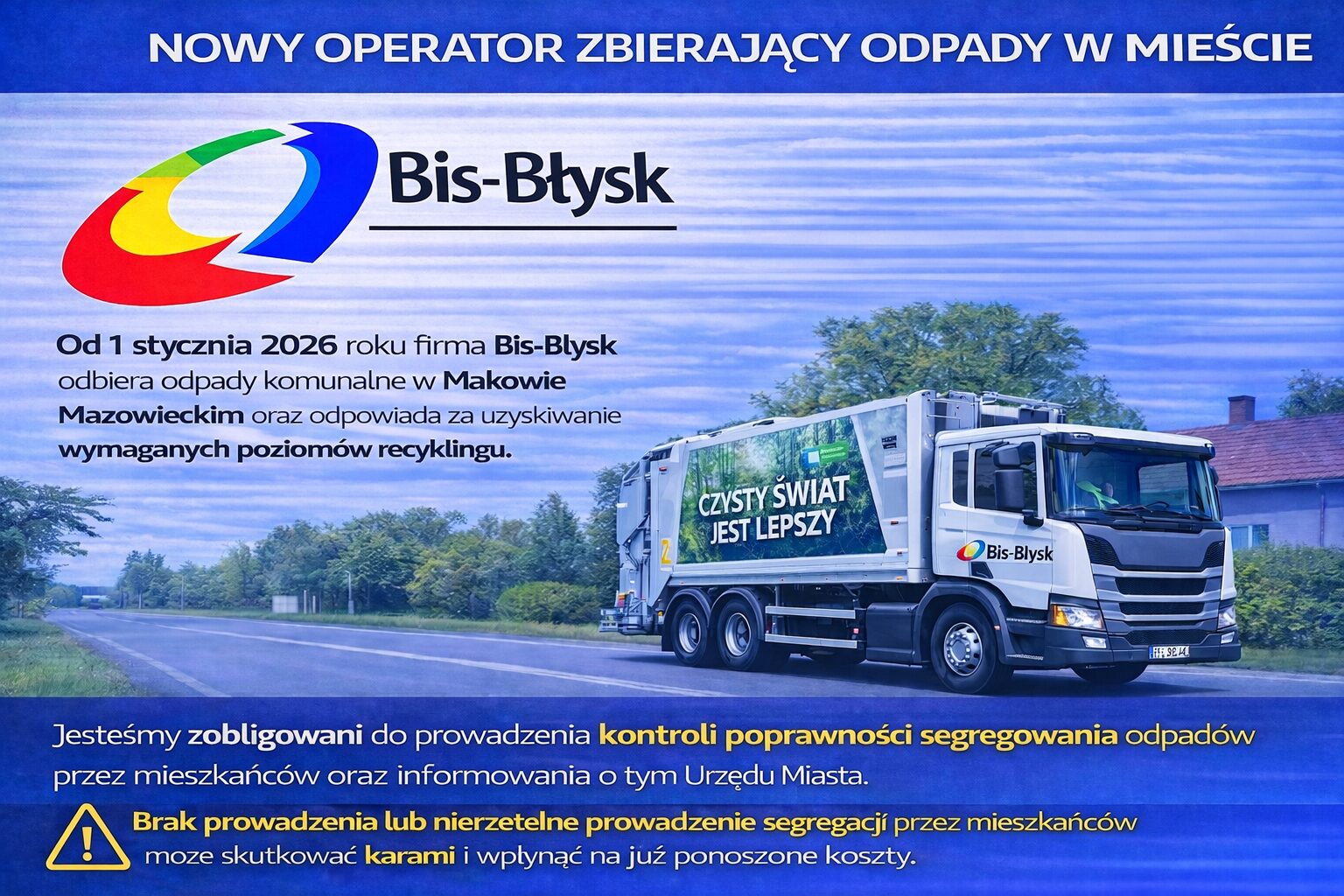Nowy operator odpadów komunalnych w Makowie Mazowieckim – od 1 stycznia 2026 roku Bis-Błysk