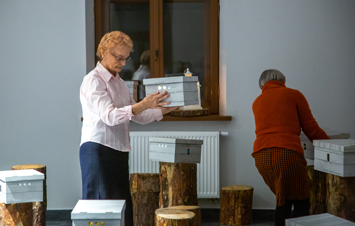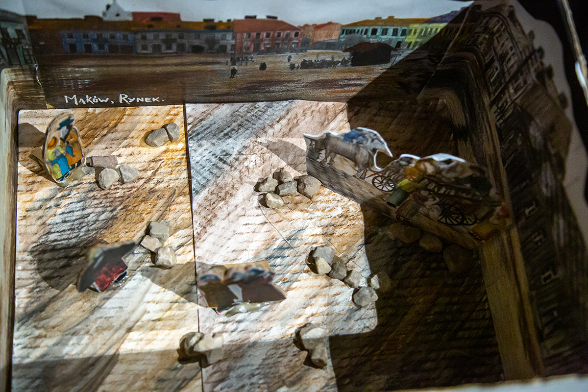 Postaci i sceny z tych opowieści zostały zawarte w kartonowych pudłach i po raz pierwszy pokazane szerszej publiczności w 77. rocznicę likwidacji Getta w Makowie Mazowieckim.