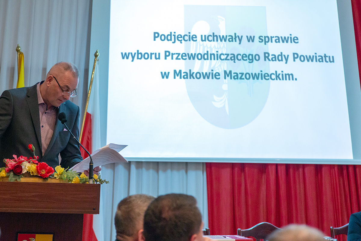 Pani przewodnicząca, wysoka rado, szanowni państwo. Chciałbym w imieniu radnych, którzy weszli do rady powiatu Prawa i Sprawiedliwości po pierwsze zgłosić powstanie klubu radnych Zjednoczonej Prawicy i w imieniu tego klubu Zjednoczonej Prawicy zgłaszam pana doktora Andrzeja Kosa na przewodniczącego rady powiatu makowskiego.