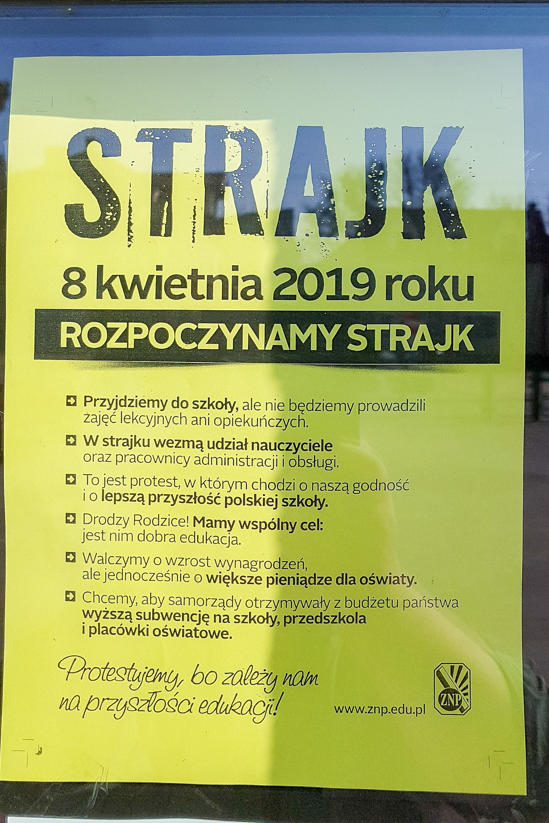 Rodzice jeśli nie przysłali dzieci do szkół to rozumiem, że popierają nasz protest, rozumieją sytuację. Bardzo dziękuję za tę solidarność, zjednoczenie się nauczycieli w tej ważnej sprawie, bo nie chodzi tu przecież tylko o podwyżkę pensji, ale o całą edukację.