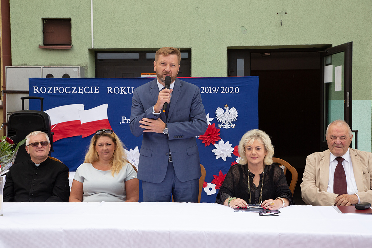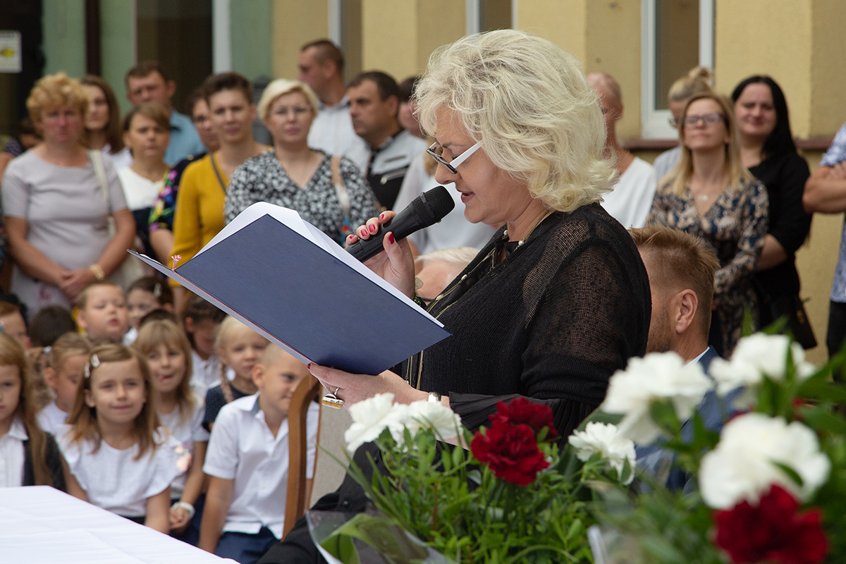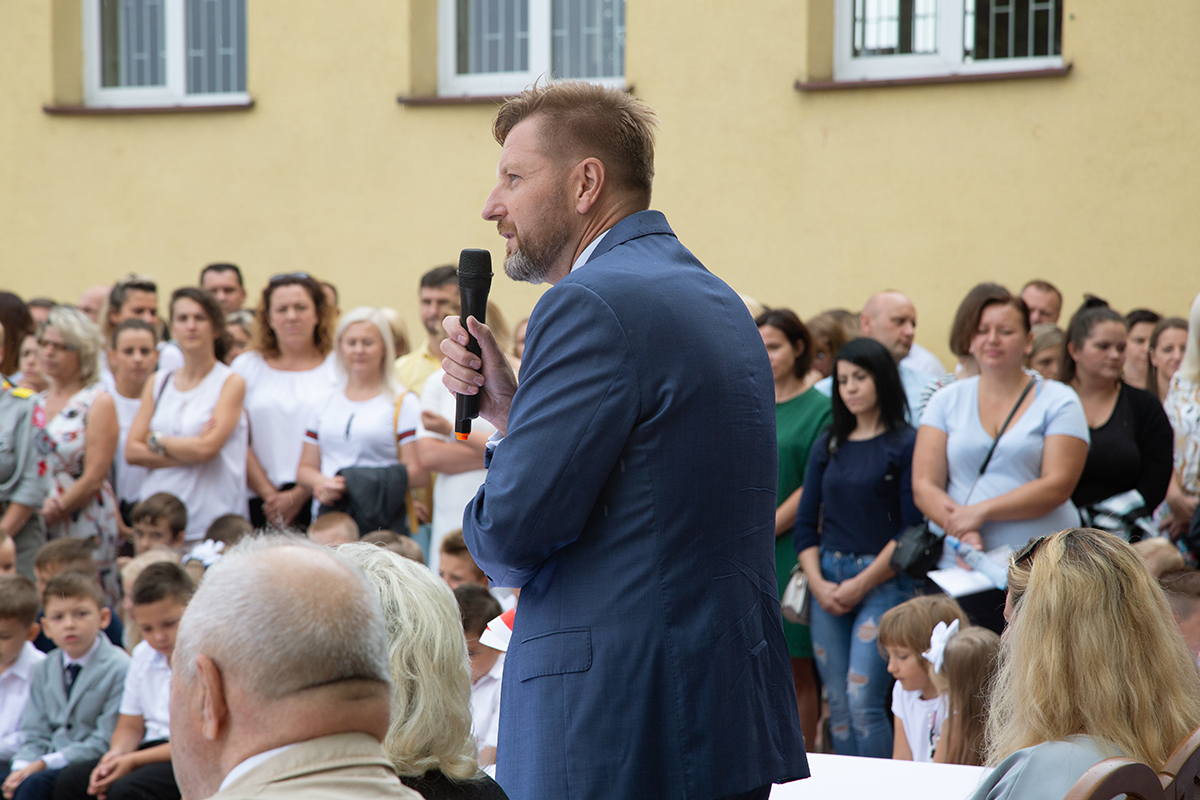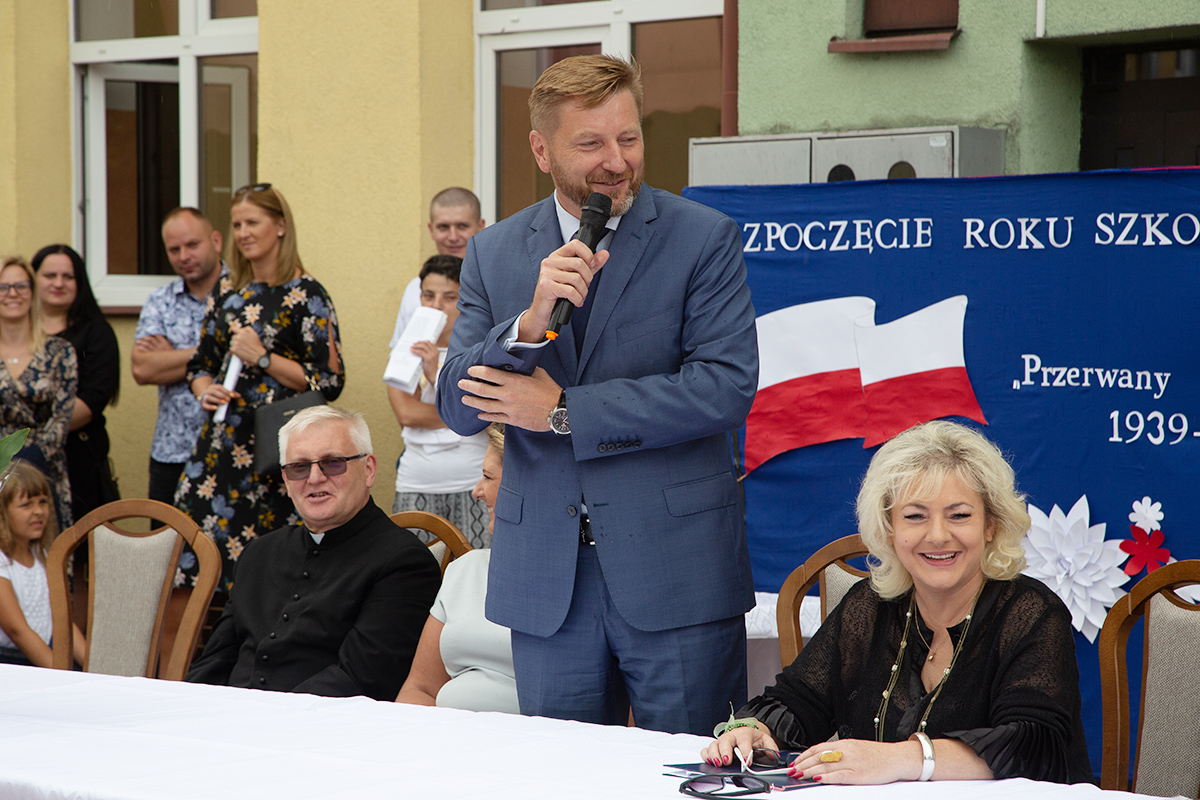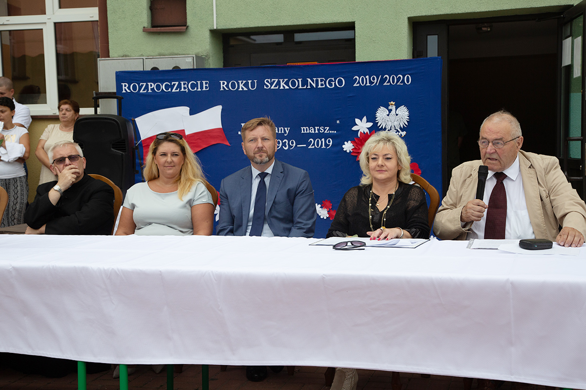 Życzenia w nowym roku szkolnym wszystkim uczniom oraz pedagogom złożyli dyrektor szkoły Anna Kamińska, burmistrz Tadeusz Ciak i ksiądz proboszcz Stanisław Dziekan.