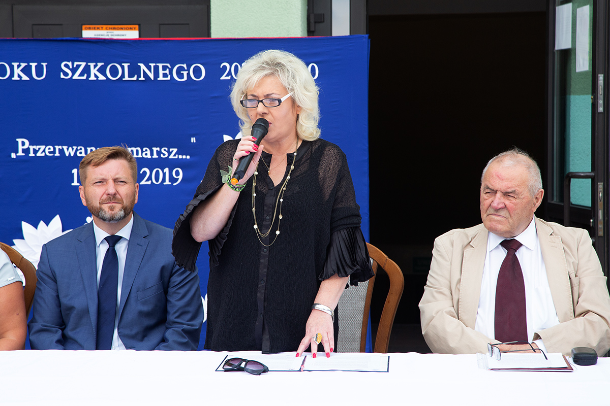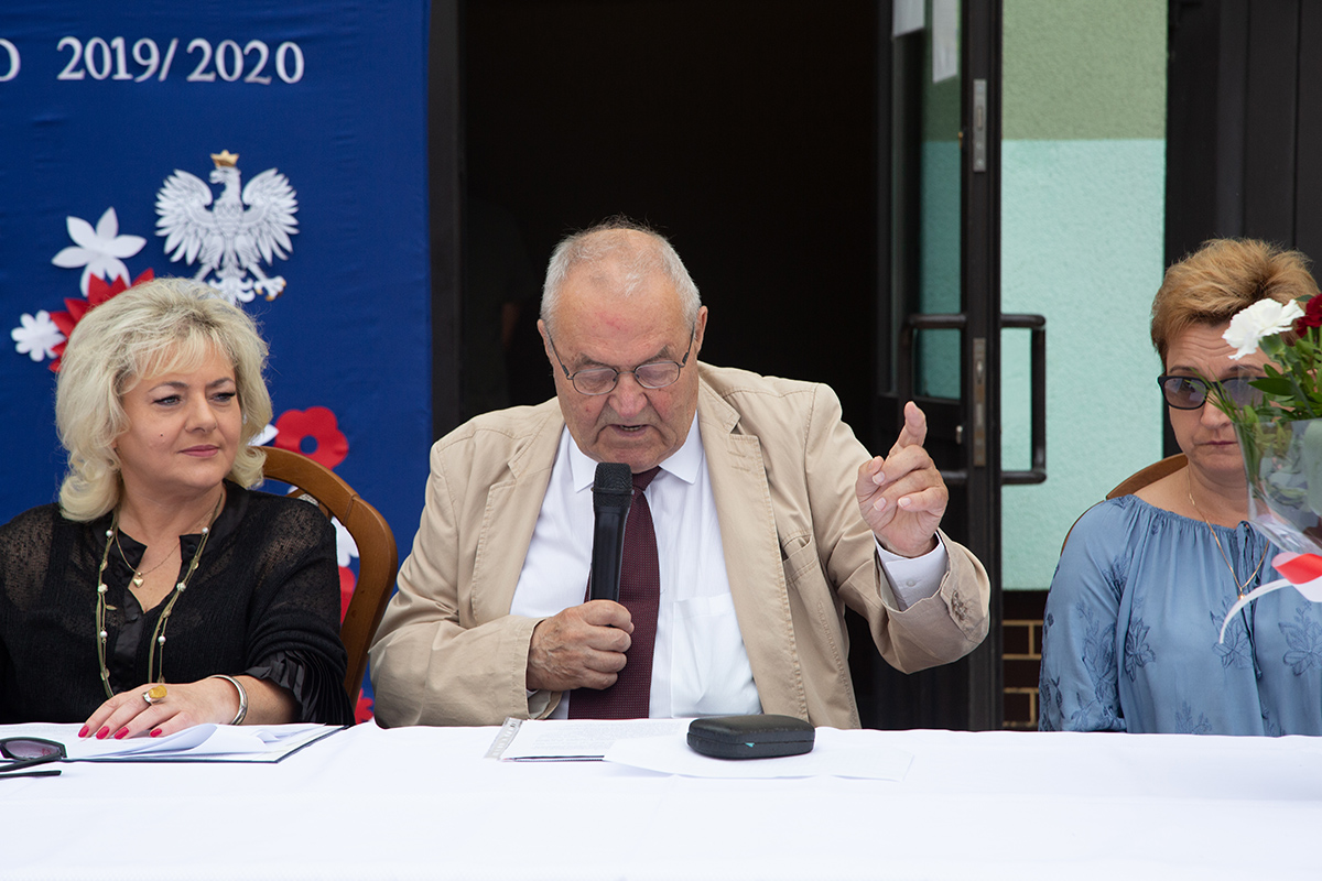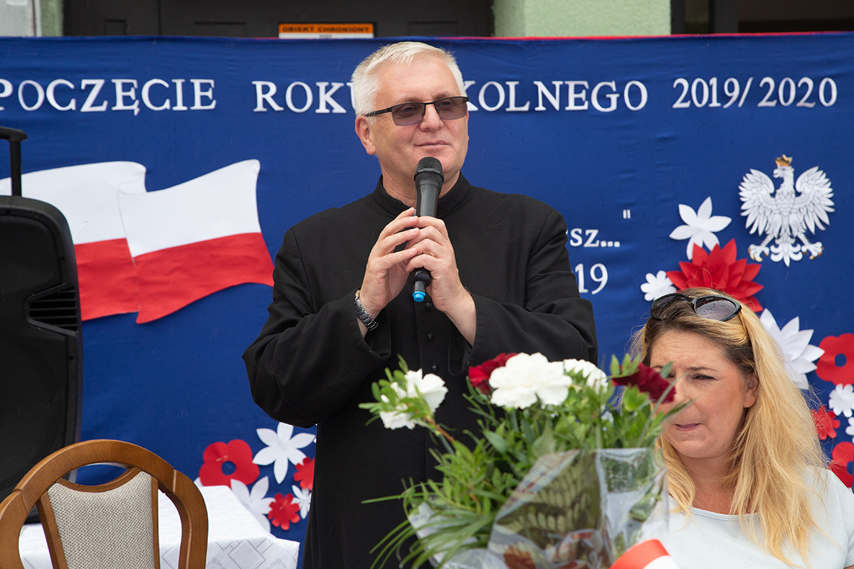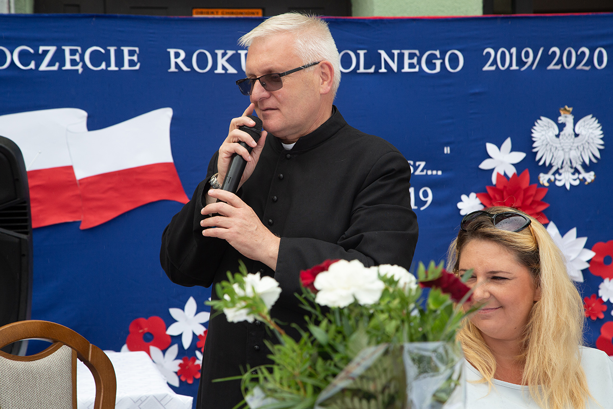 Życzenia w nowym roku szkolnym wszystkim uczniom oraz pedagogom złożyli dyrektor szkoły Anna Kamińska, burmistrz Tadeusz Ciak i ksiądz proboszcz Stanisław Dziekan.