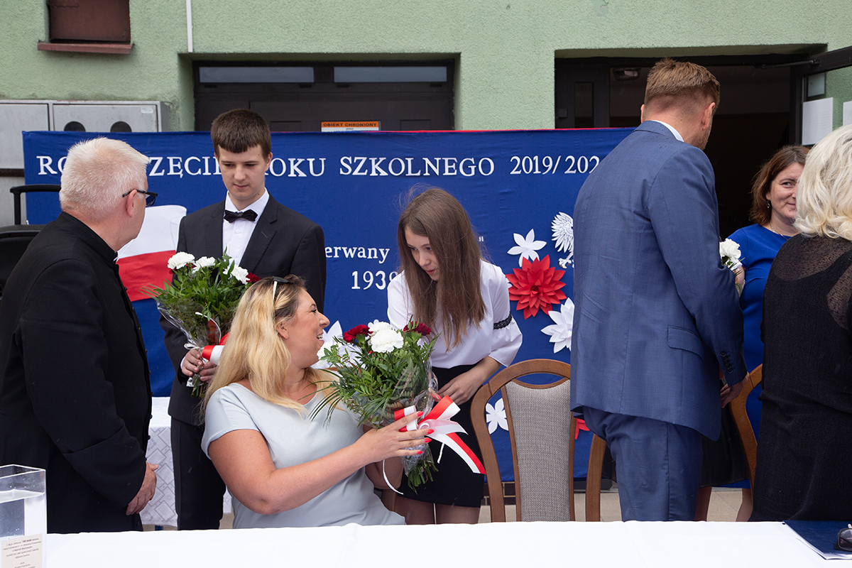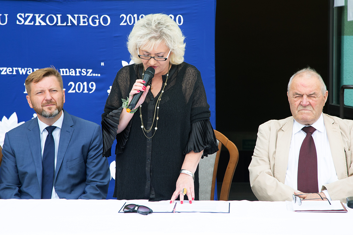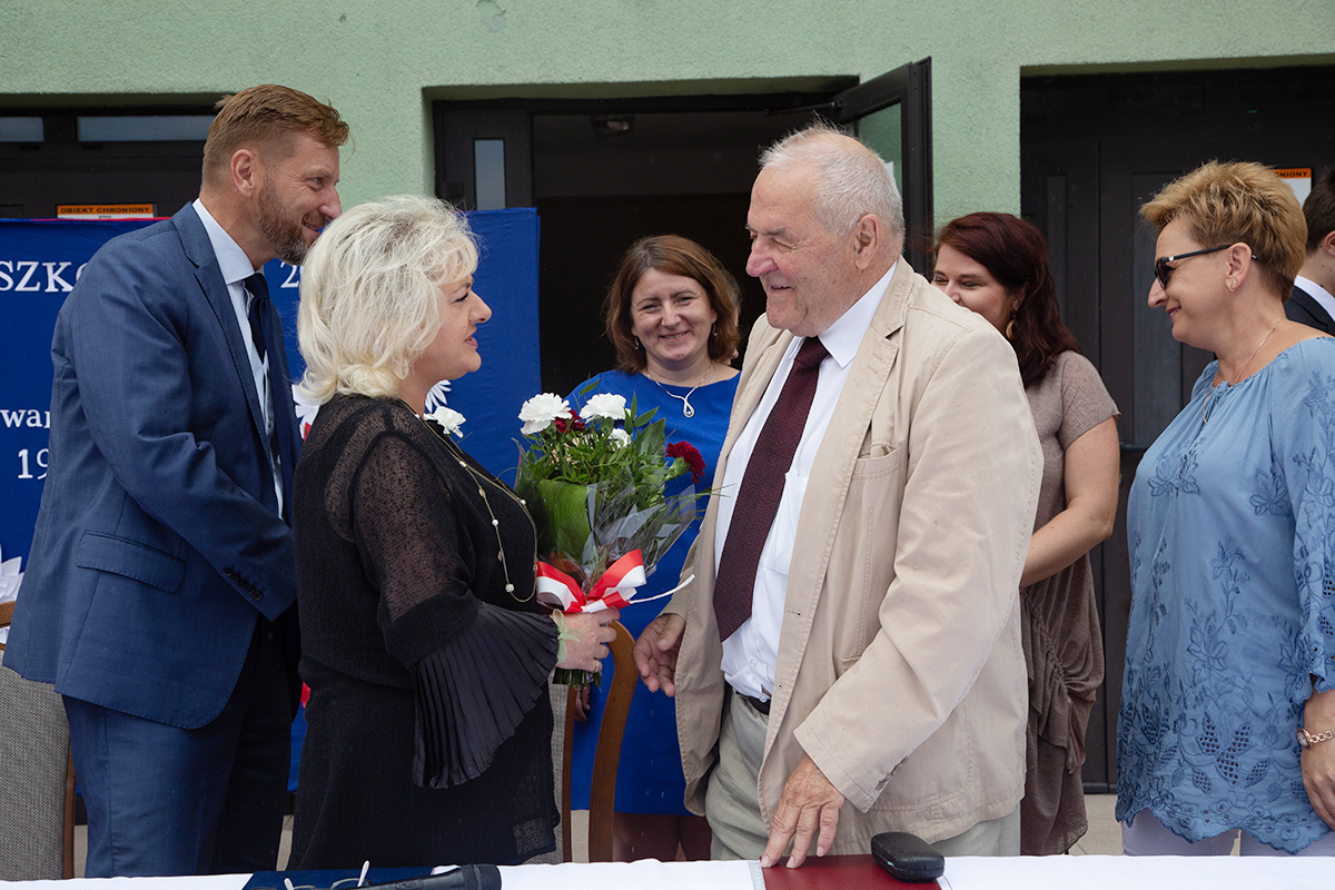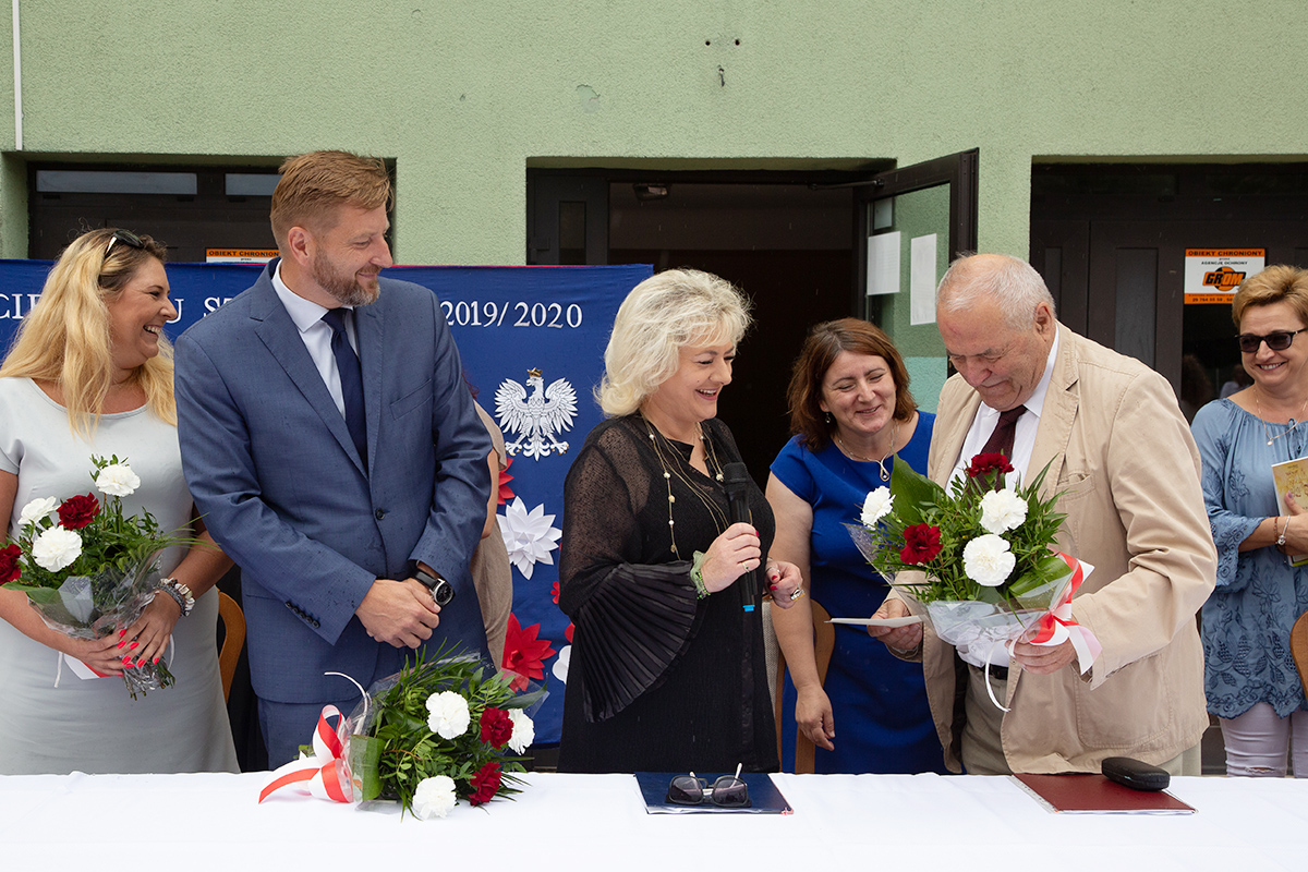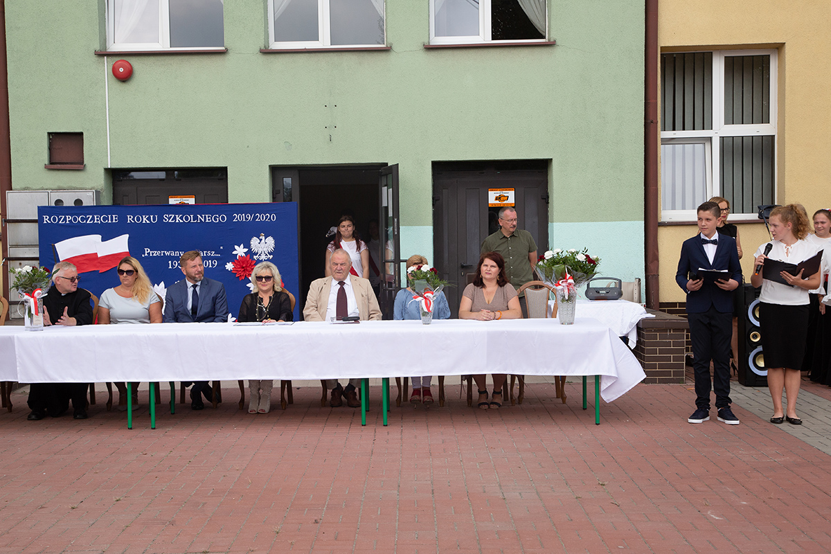 Życzenia w nowym roku szkolnym wszystkim uczniom oraz pedagogom złożyli dyrektor szkoły Anna Kamińska, burmistrz Tadeusz Ciak i ksiądz proboszcz Stanisław Dziekan.