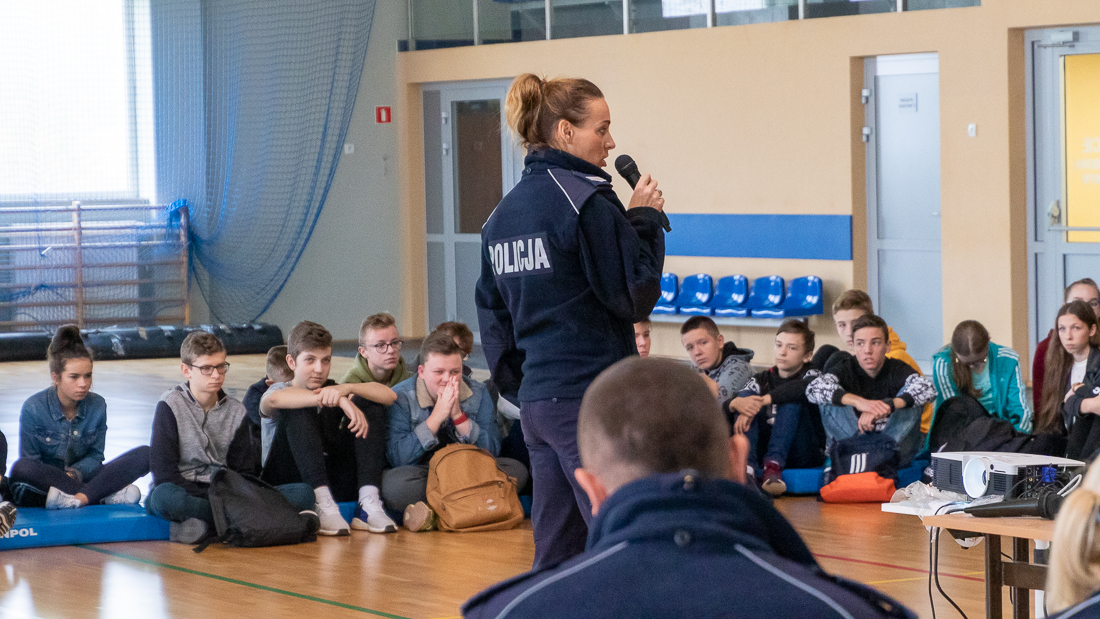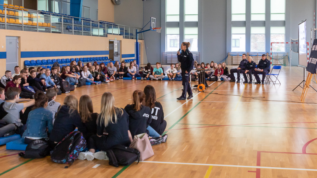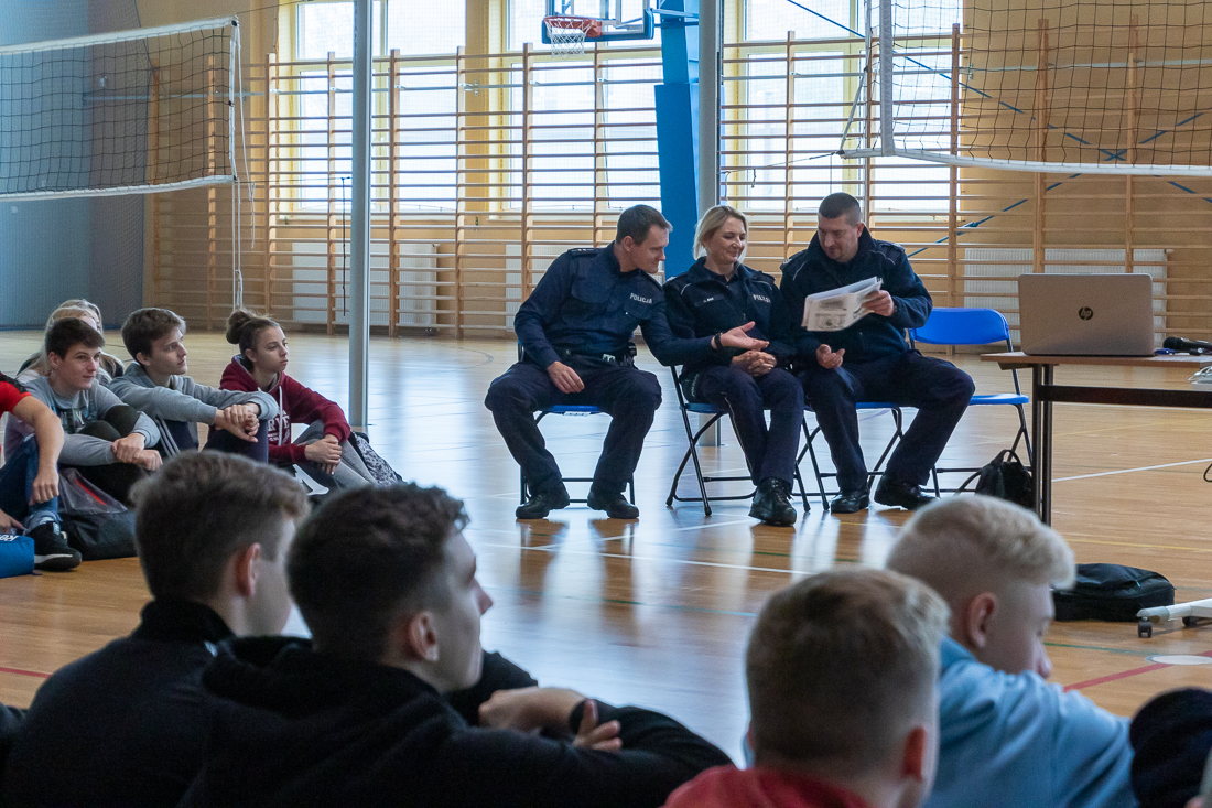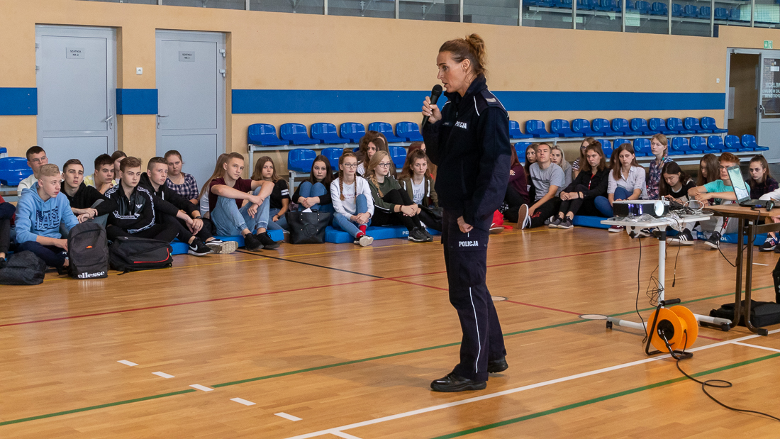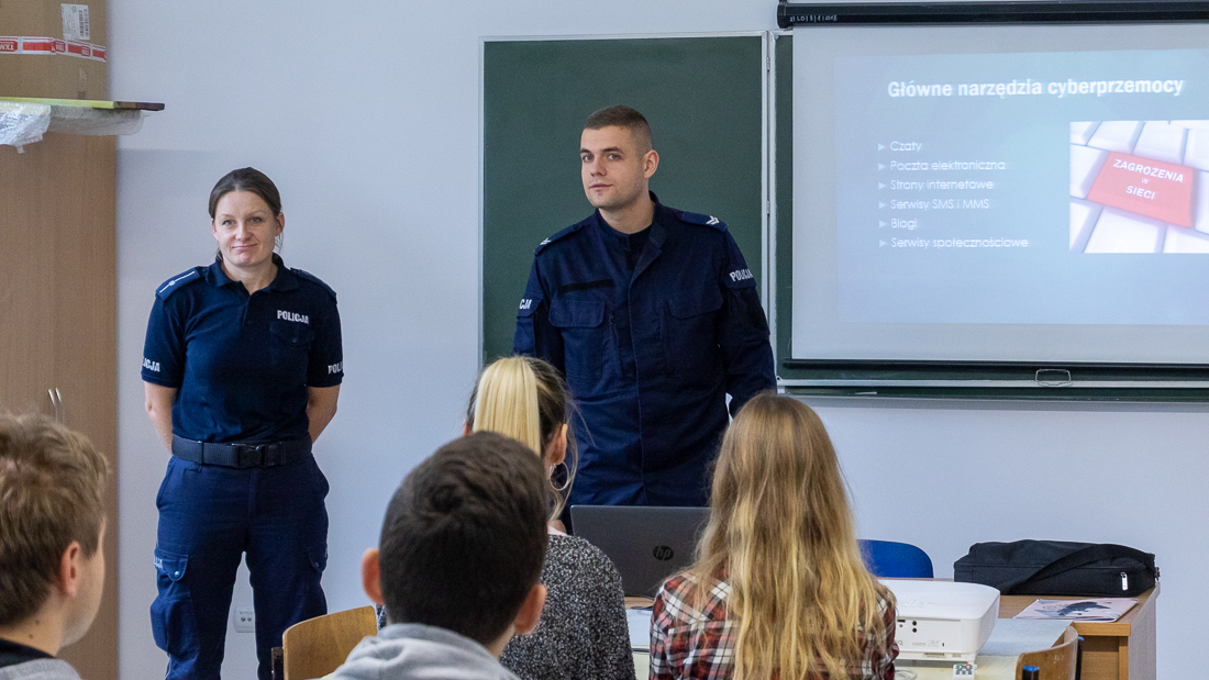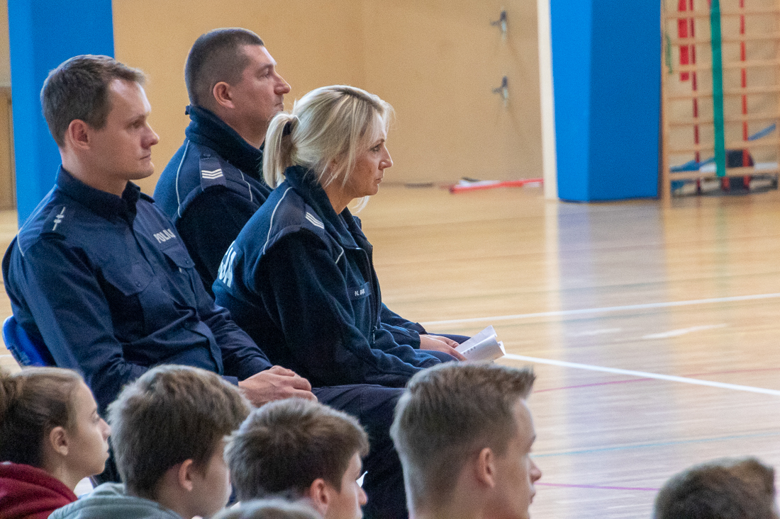 Policjanci mówili o zagrożeniach przestępczością i odpowiedzialności nieletnich. Dzielili się przykładami z własnej pracy z młodzieżą. Dużo uwagi poświęcili problemowi cyberbezpieczeństwa. Prezentowali filmy przedstawiające przypadki naruszenia prawa w sieci. Mówili jak radzić sobie z hejtem, stalkingiem i wyłudzaniem informacji. Opowiadali także o tym, jak namierzyć cyberprzestępców, by nie pozostawali bezkarni.