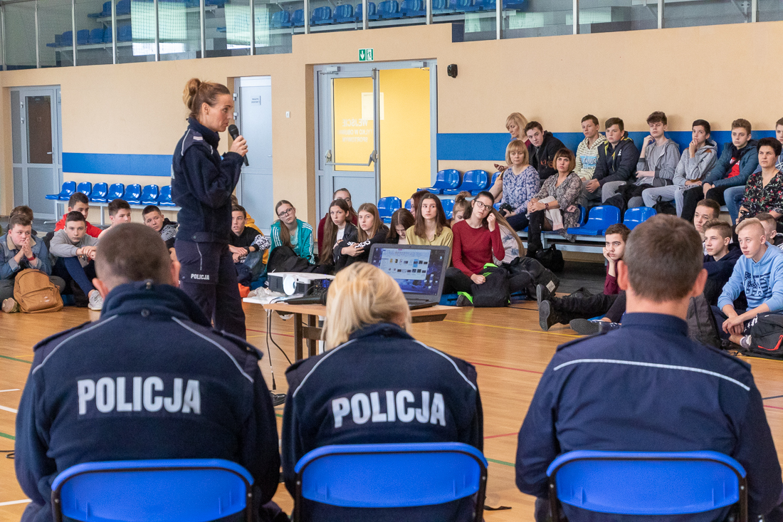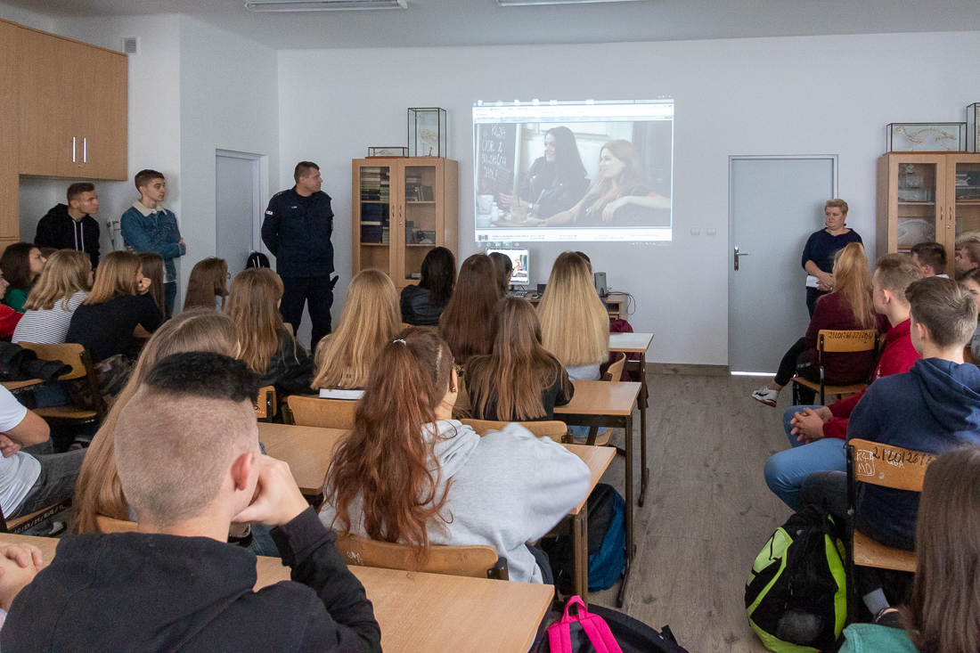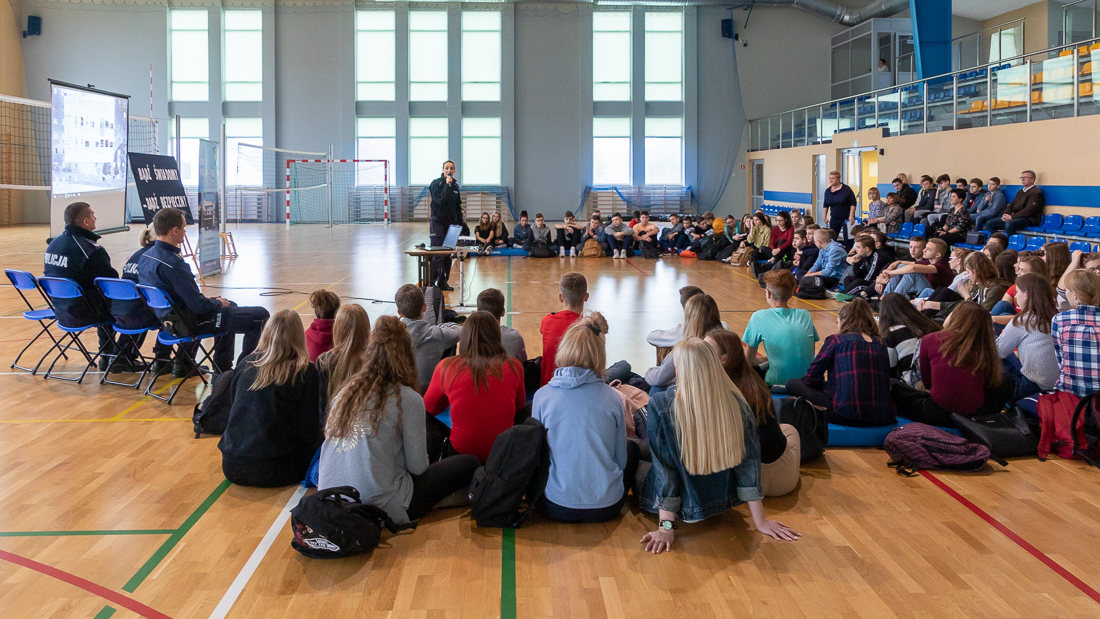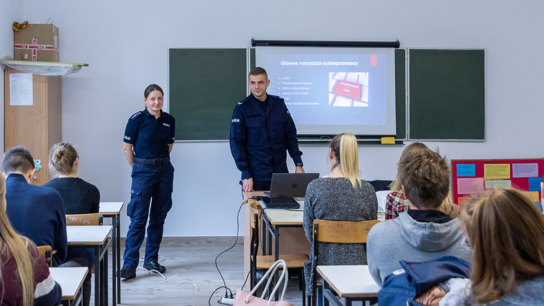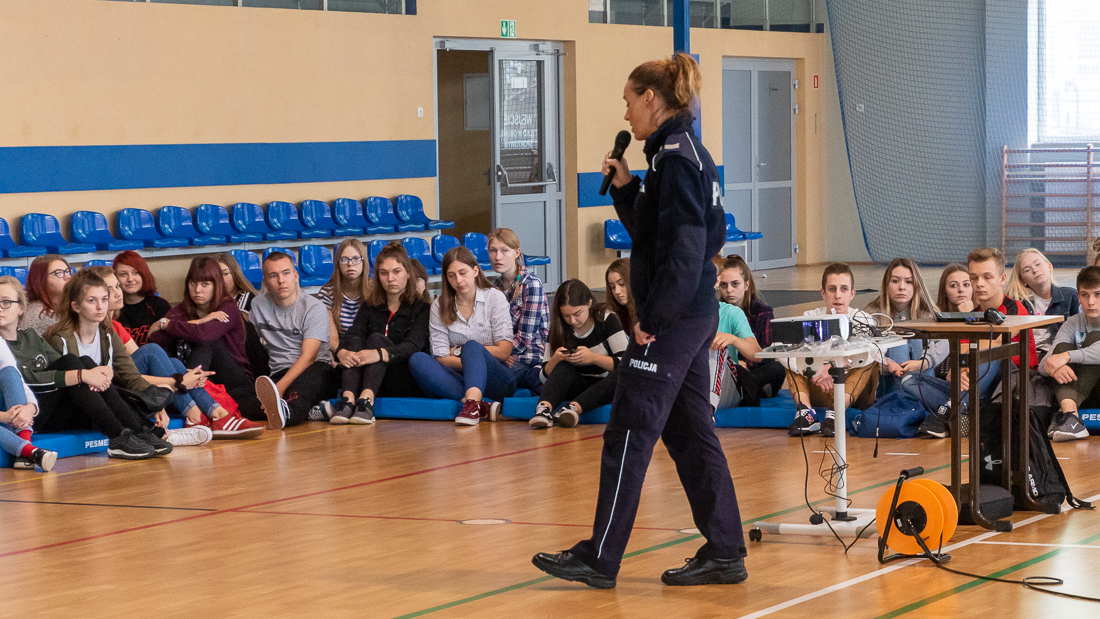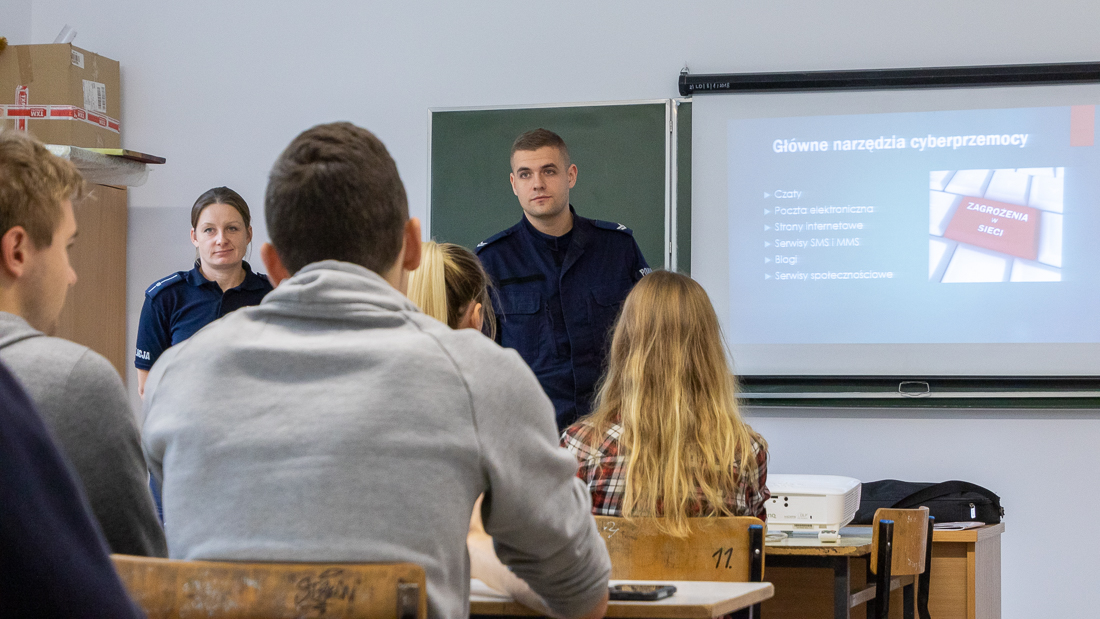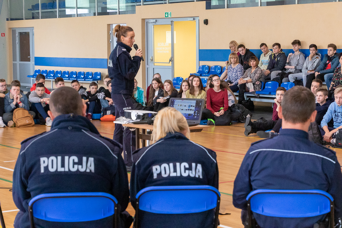 Policjanci mówili o zagrożeniach przestępczością i odpowiedzialności nieletnich. Dzielili się przykładami z własnej pracy z młodzieżą. Dużo uwagi poświęcili problemowi cyberbezpieczeństwa. Prezentowali filmy przedstawiające przypadki naruszenia prawa w sieci. Mówili jak radzić sobie z hejtem, stalkingiem i wyłudzaniem informacji. Opowiadali także o tym, jak namierzyć cyberprzestępców, by nie pozostawali bezkarni.
