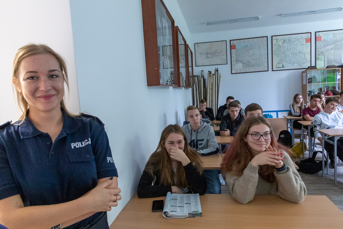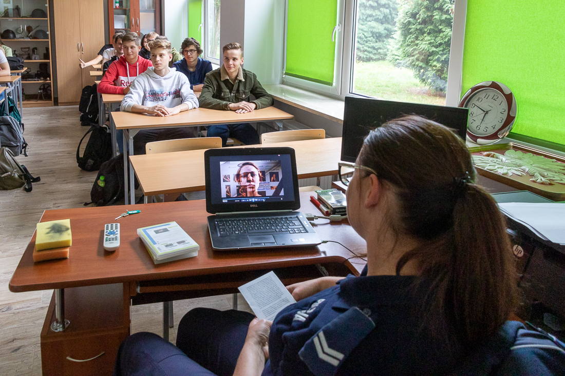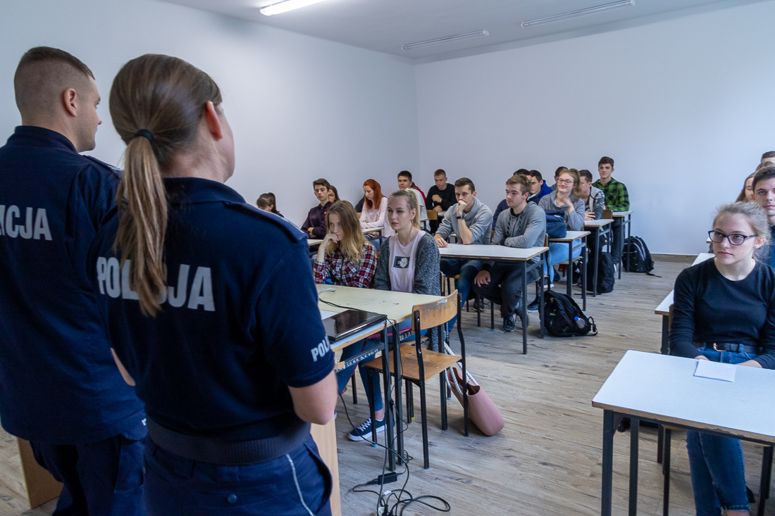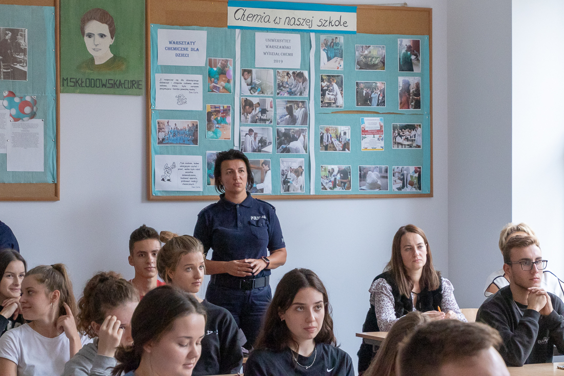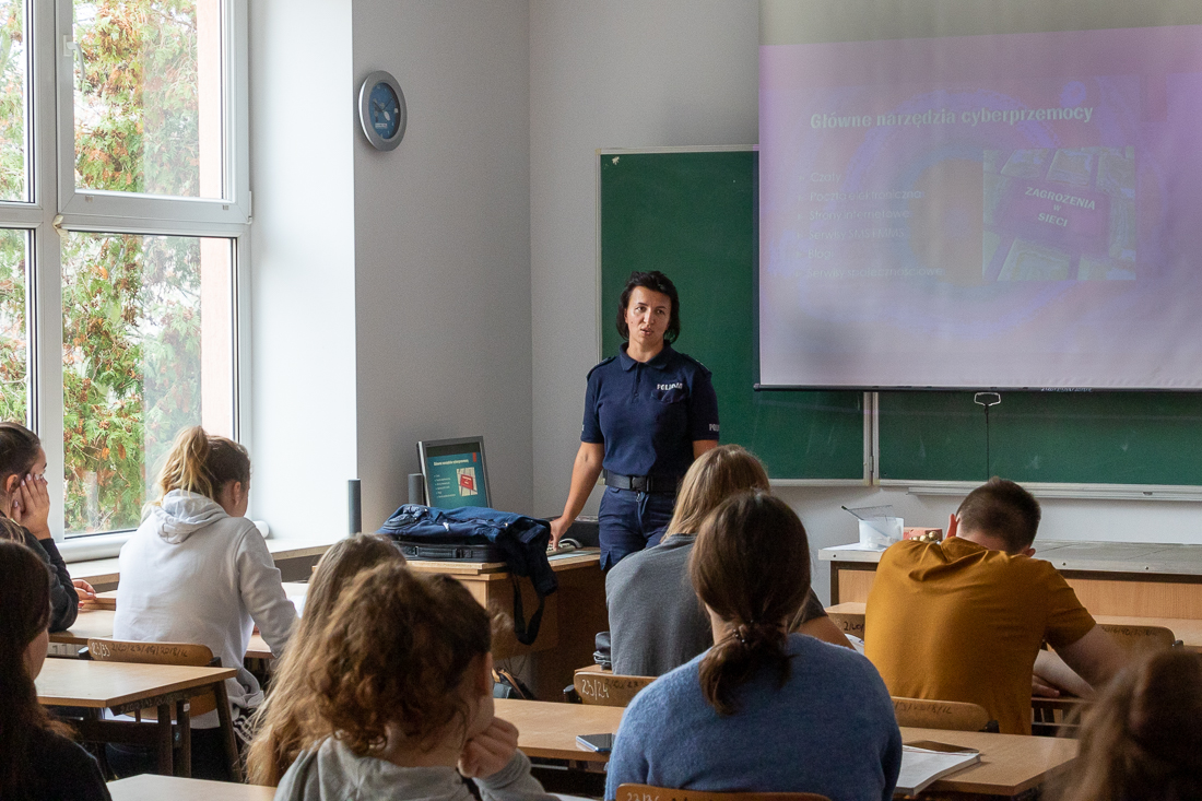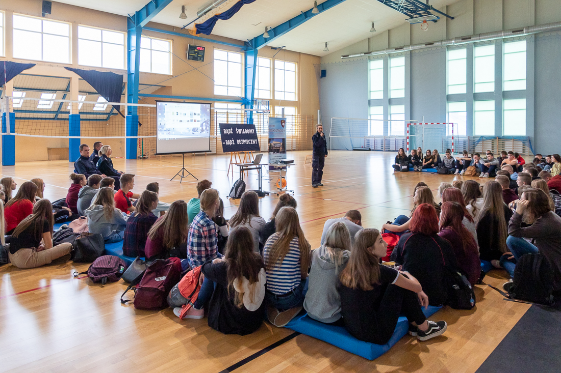 Policjanci mówili o zagrożeniach przestępczością i odpowiedzialności nieletnich. Dzielili się przykładami z własnej pracy z młodzieżą. Dużo uwagi poświęcili problemowi cyberbezpieczeństwa. Prezentowali filmy przedstawiające przypadki naruszenia prawa w sieci. Mówili jak radzić sobie z hejtem, stalkingiem i wyłudzaniem informacji. Opowiadali także o tym, jak namierzyć cyberprzestępców, by nie pozostawali bezkarni.