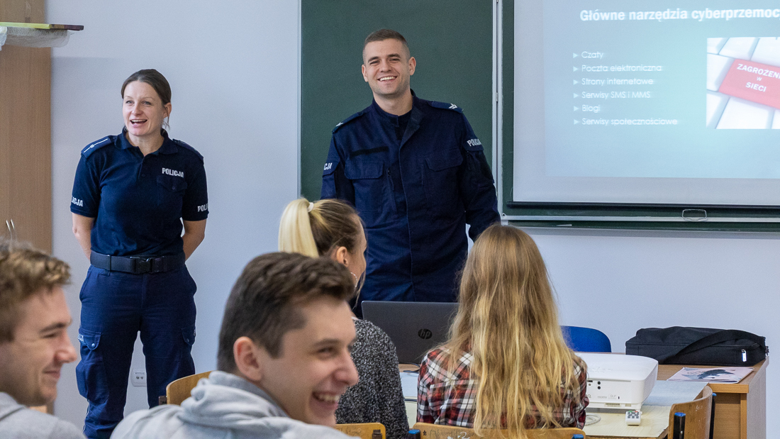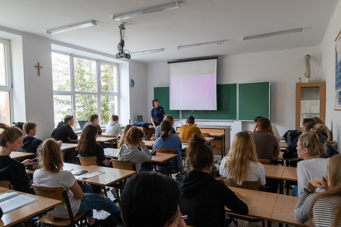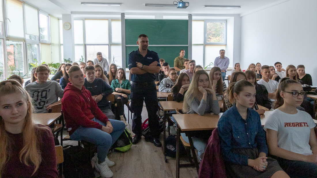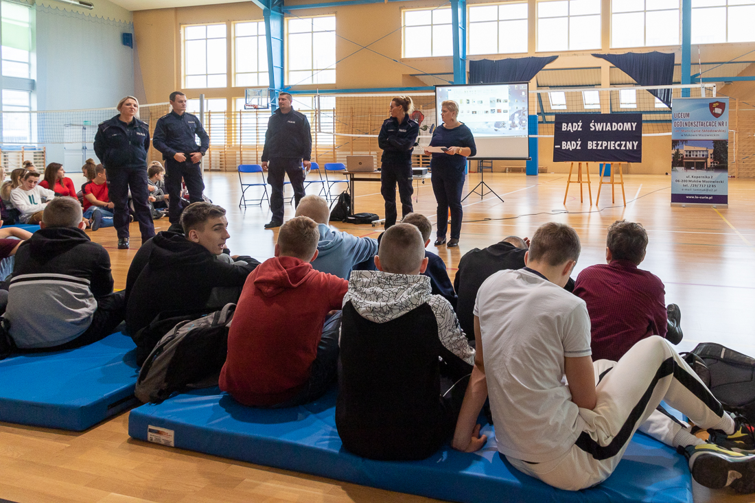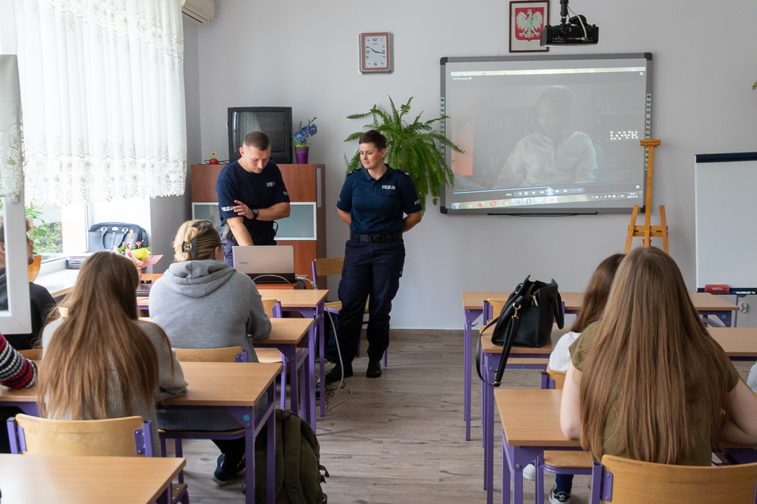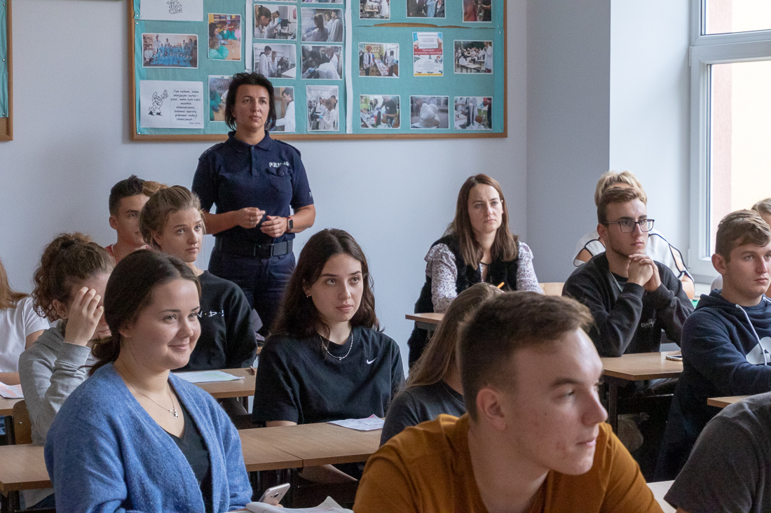 Policjanci mówili o zagrożeniach przestępczością i odpowiedzialności nieletnich. Dzielili się przykładami z własnej pracy z młodzieżą. Dużo uwagi poświęcili problemowi cyberbezpieczeństwa. Prezentowali filmy przedstawiające przypadki naruszenia prawa w sieci. Mówili jak radzić sobie z hejtem, stalkingiem i wyłudzaniem informacji. Opowiadali także o tym, jak namierzyć cyberprzestępców, by nie pozostawali bezkarni.