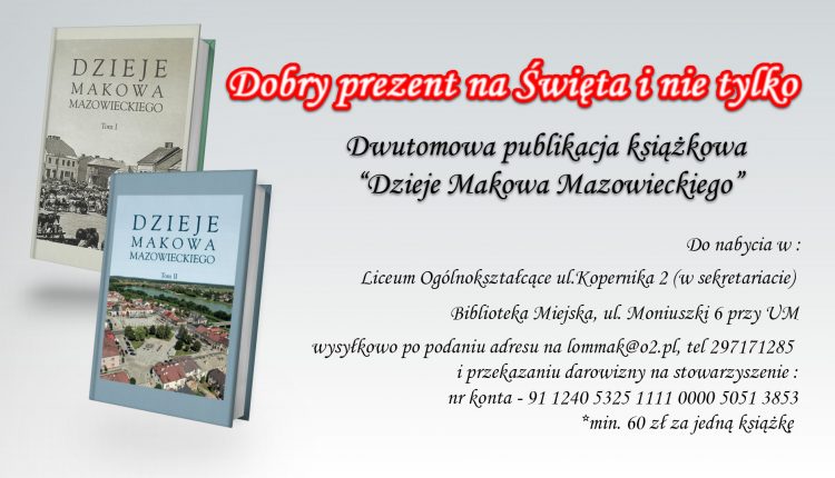 Pierwszy tom Dziejów Makowa (do 1945 roku) oraz drugi tom II tom kompleksowej syntezy Dziejów Makowa Mazowieckiego lat 1945-2020 w specjalnym dwutomowym wydaniu można nabyć w: