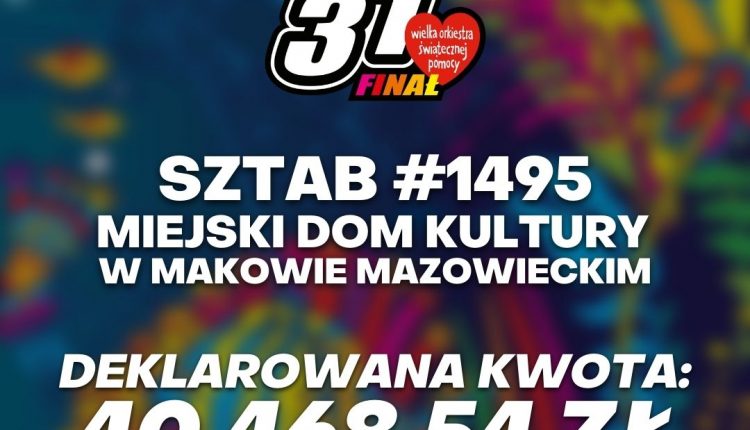 Miejski Dom Kultury w Makowie Mazowieckim, w którym znajdował się Sztab #1495 Wielkiej Orkiestry Świątecznej Pomocy, poinformował, że podczas tegorocznego finału udało się zebrać kwotę 40 468,54 zł.