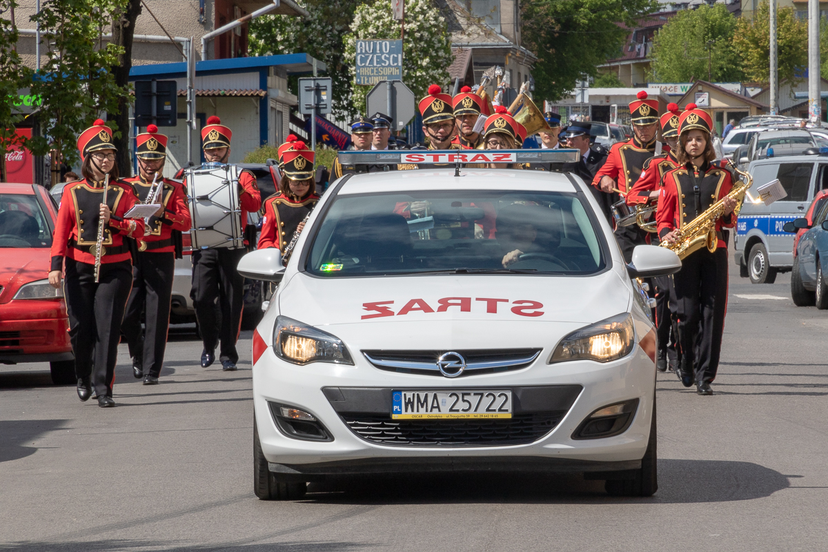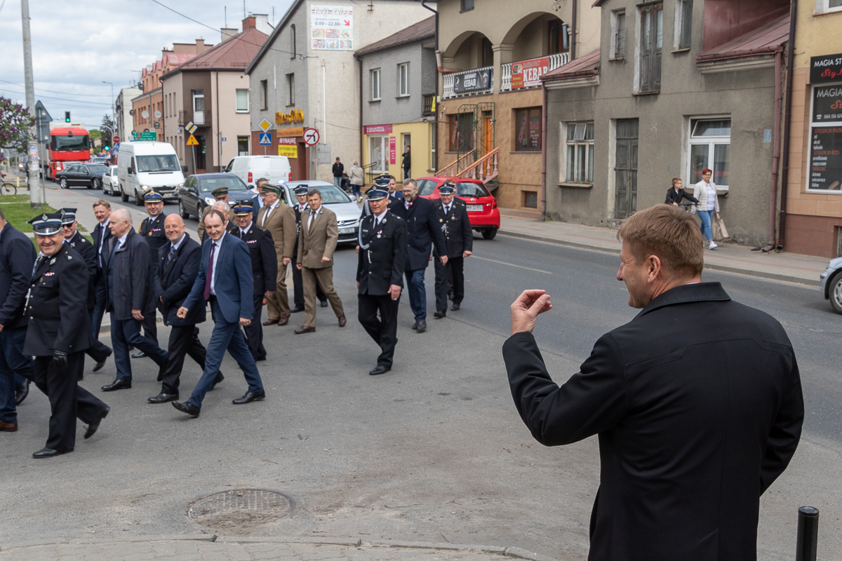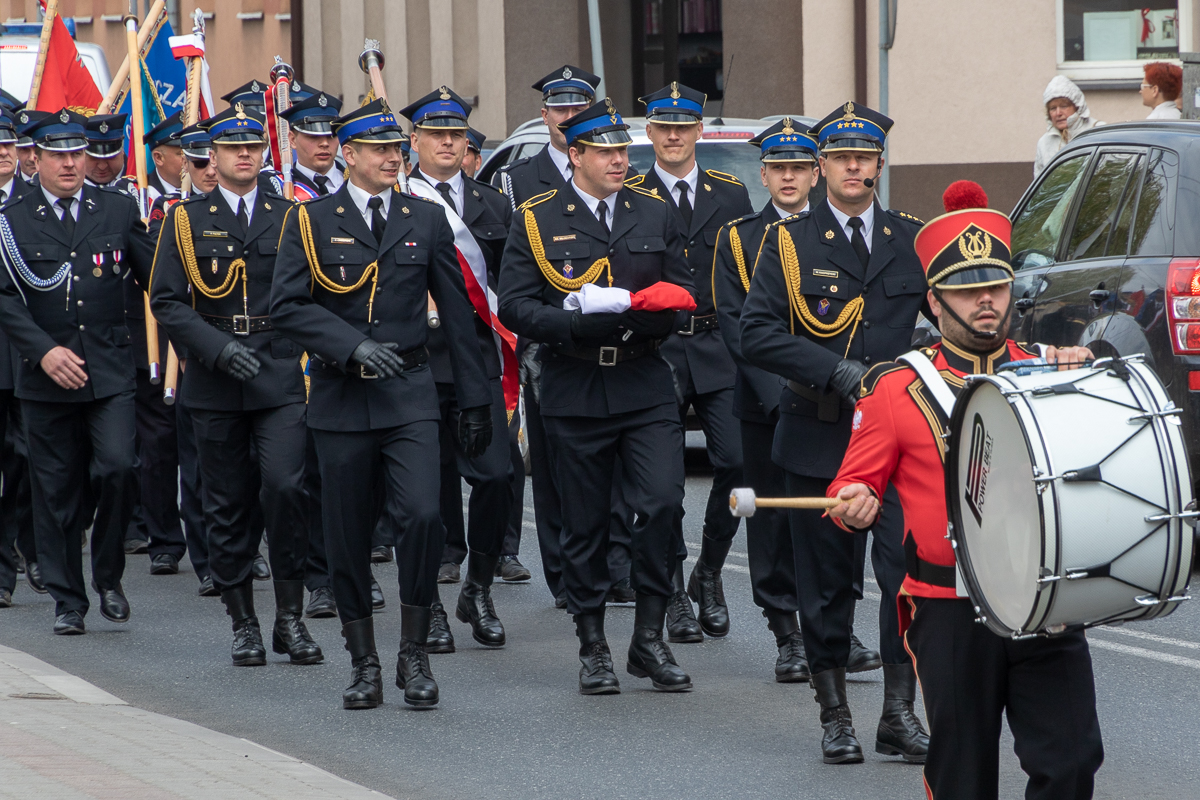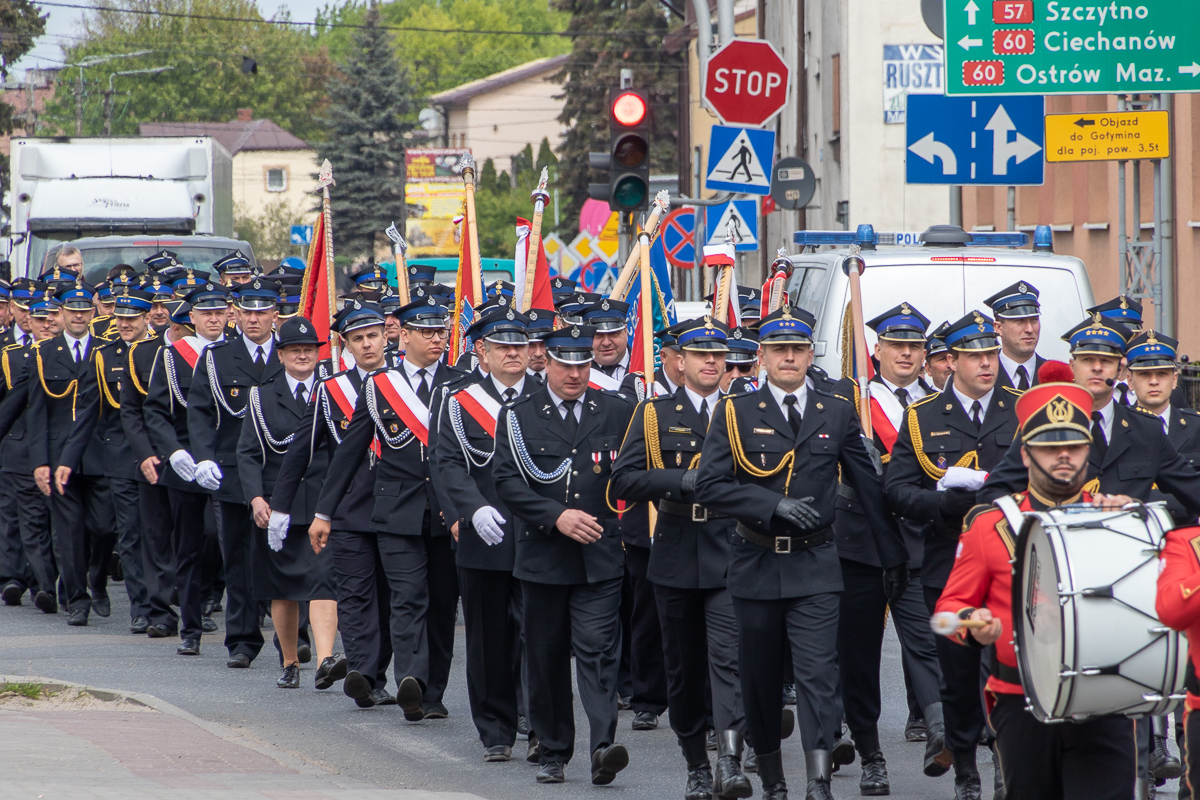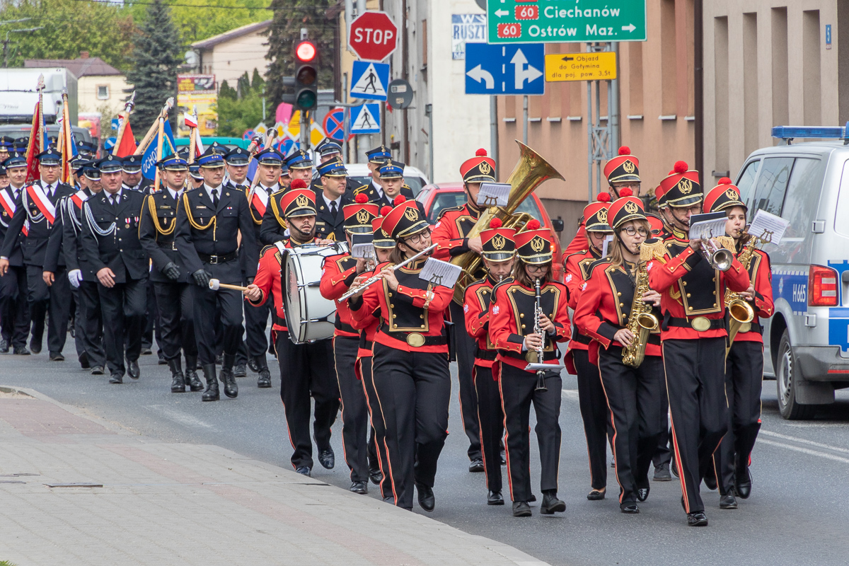 Następnie uczestnicy uroczystości na czele z Miejską Orkiestrą Dętą przemaszerowali głównymi ulicami miasta na plac przed siedzibą Państwowej Straży Pożarnej w Makowie Maz.