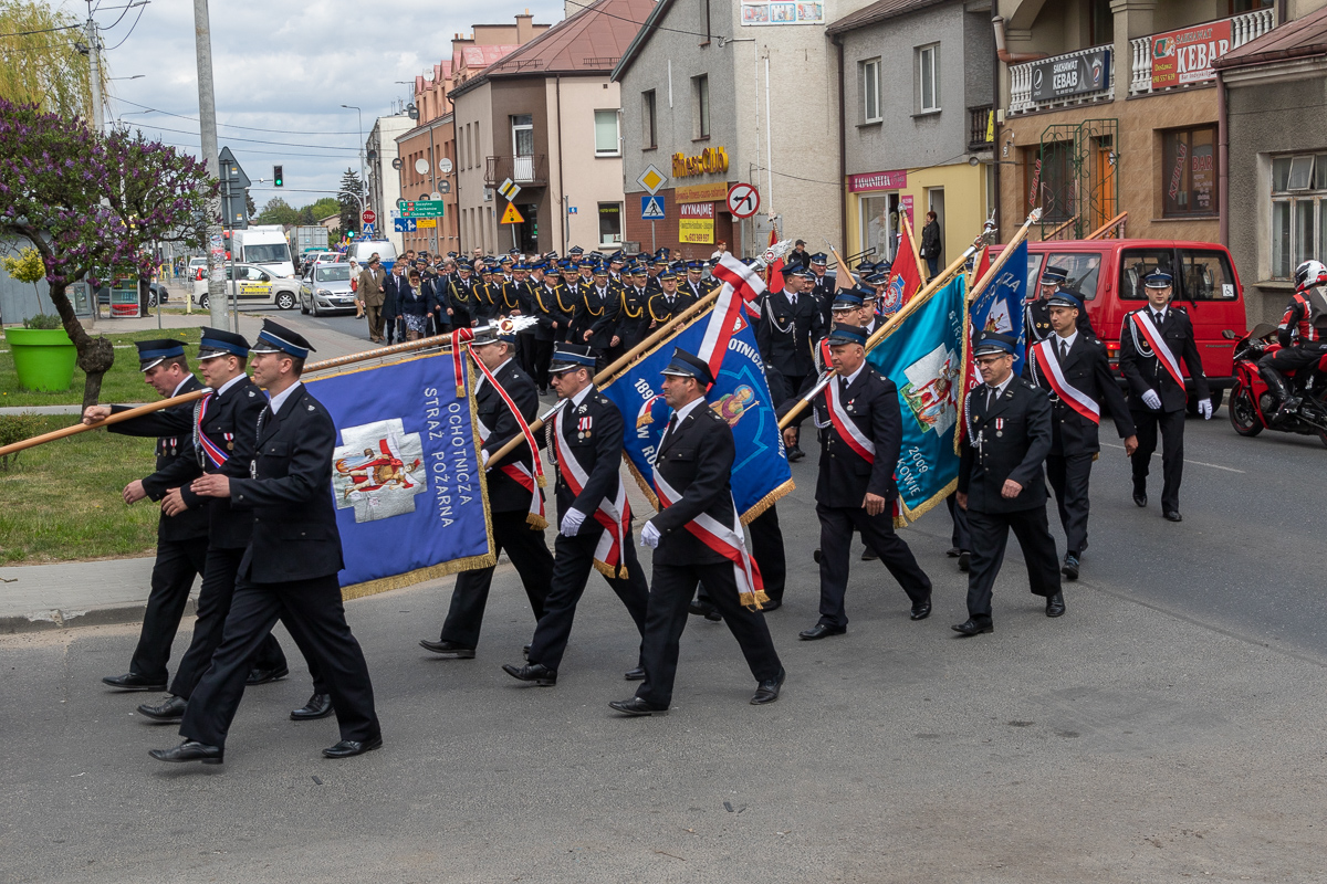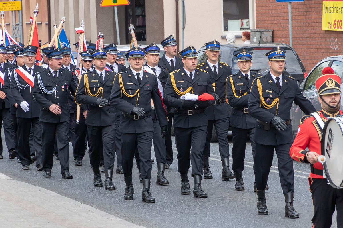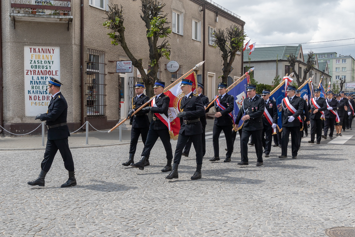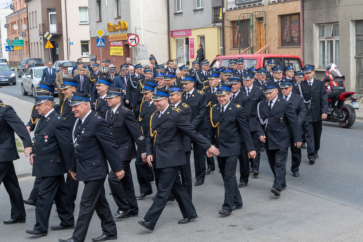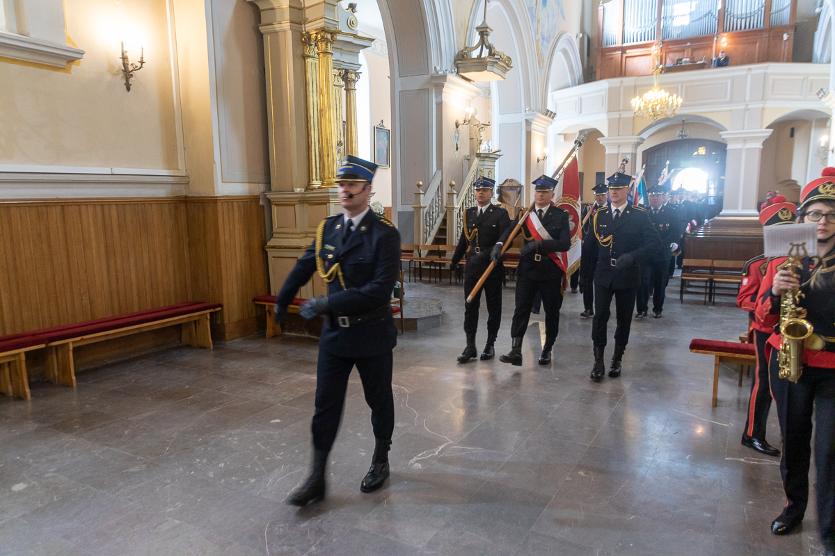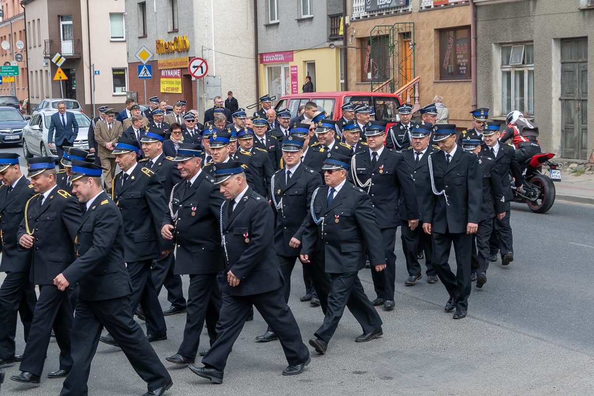 Uroczystość rozpoczęła się przemarszem kolumny strażaków, poprzedzanych przez Miejską Orkiestrę Dętą, do kościoła farnego na uroczystą Mszę św. w intencji strażaków.
