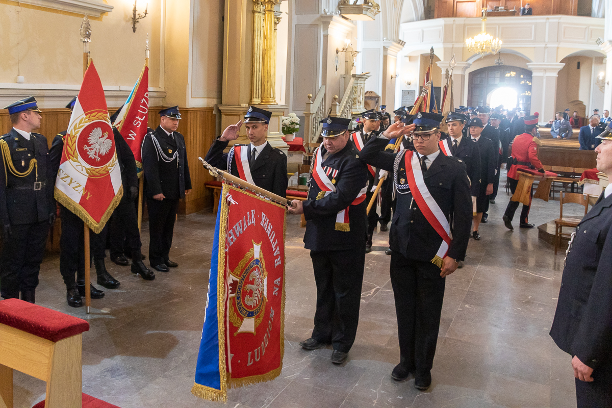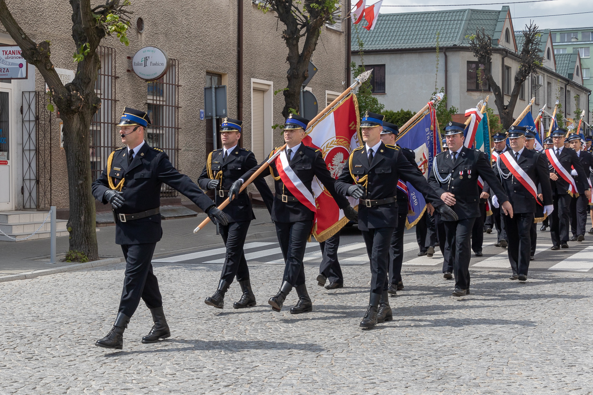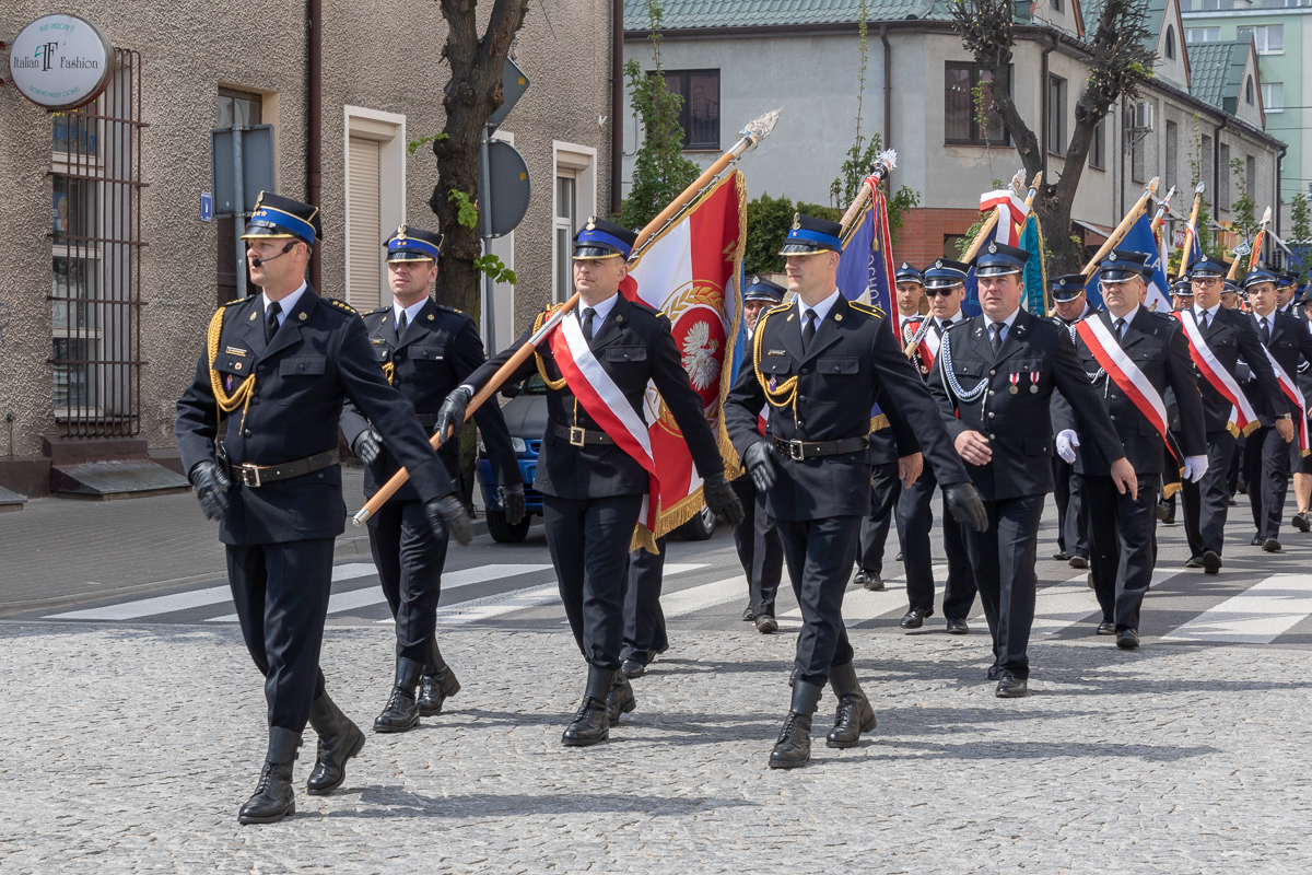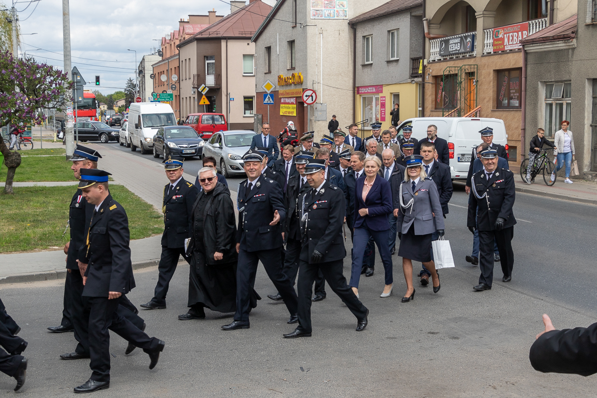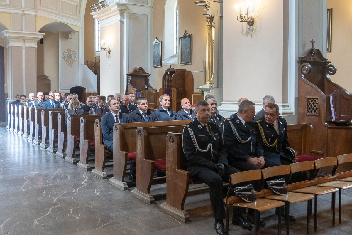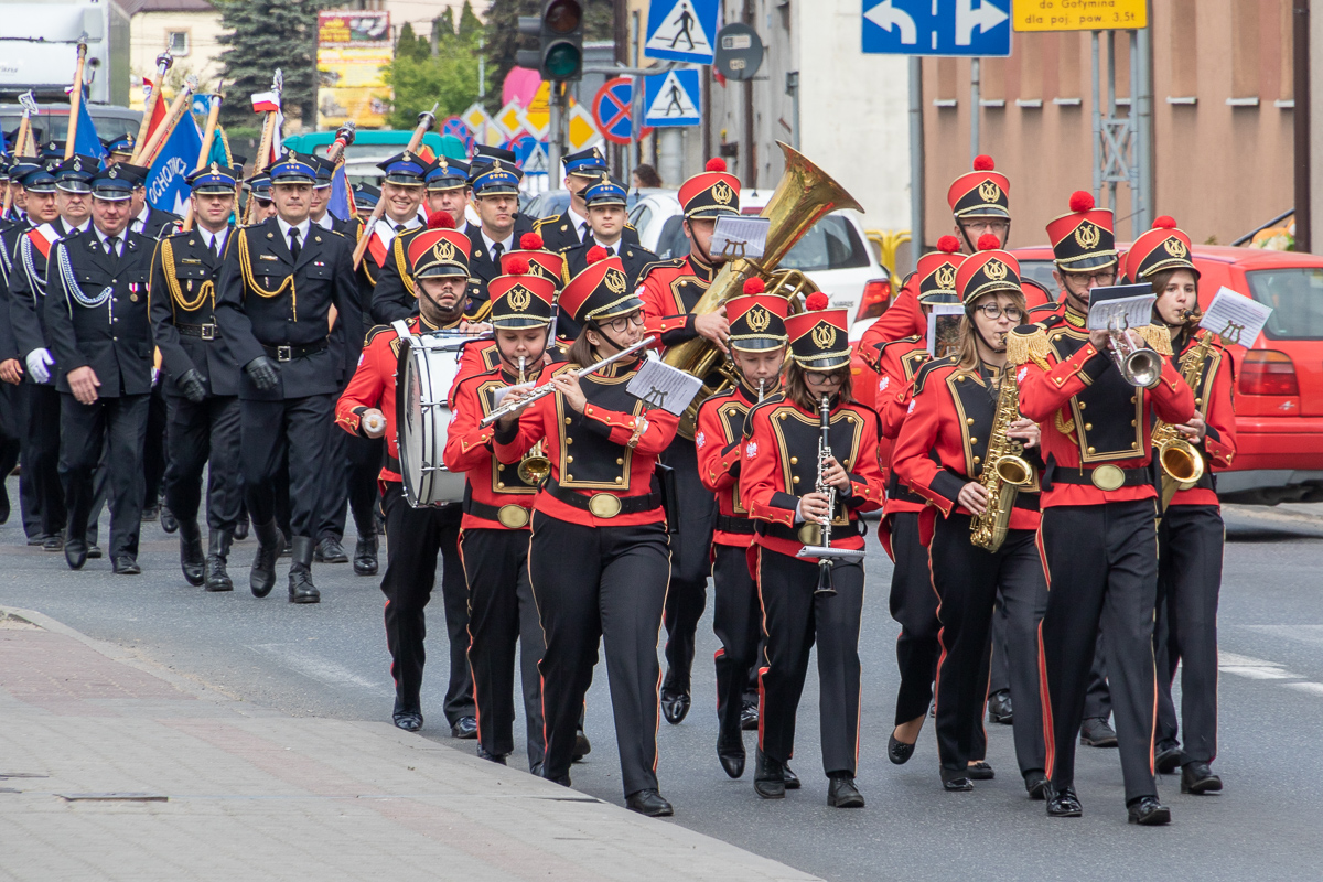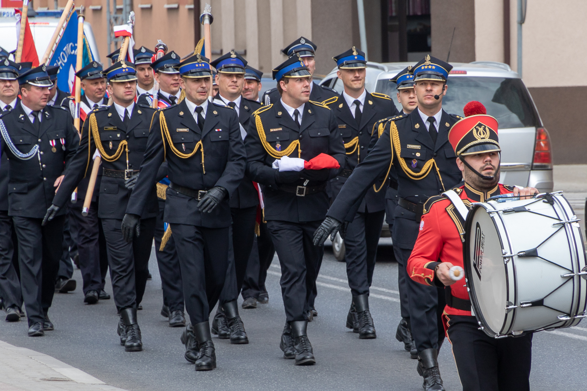 Uroczystość rozpoczęła się przemarszem kolumny strażaków, poprzedzanych przez Miejską Orkiestrę Dętą, do kościoła farnego na uroczystą Mszę św. w intencji strażaków.
