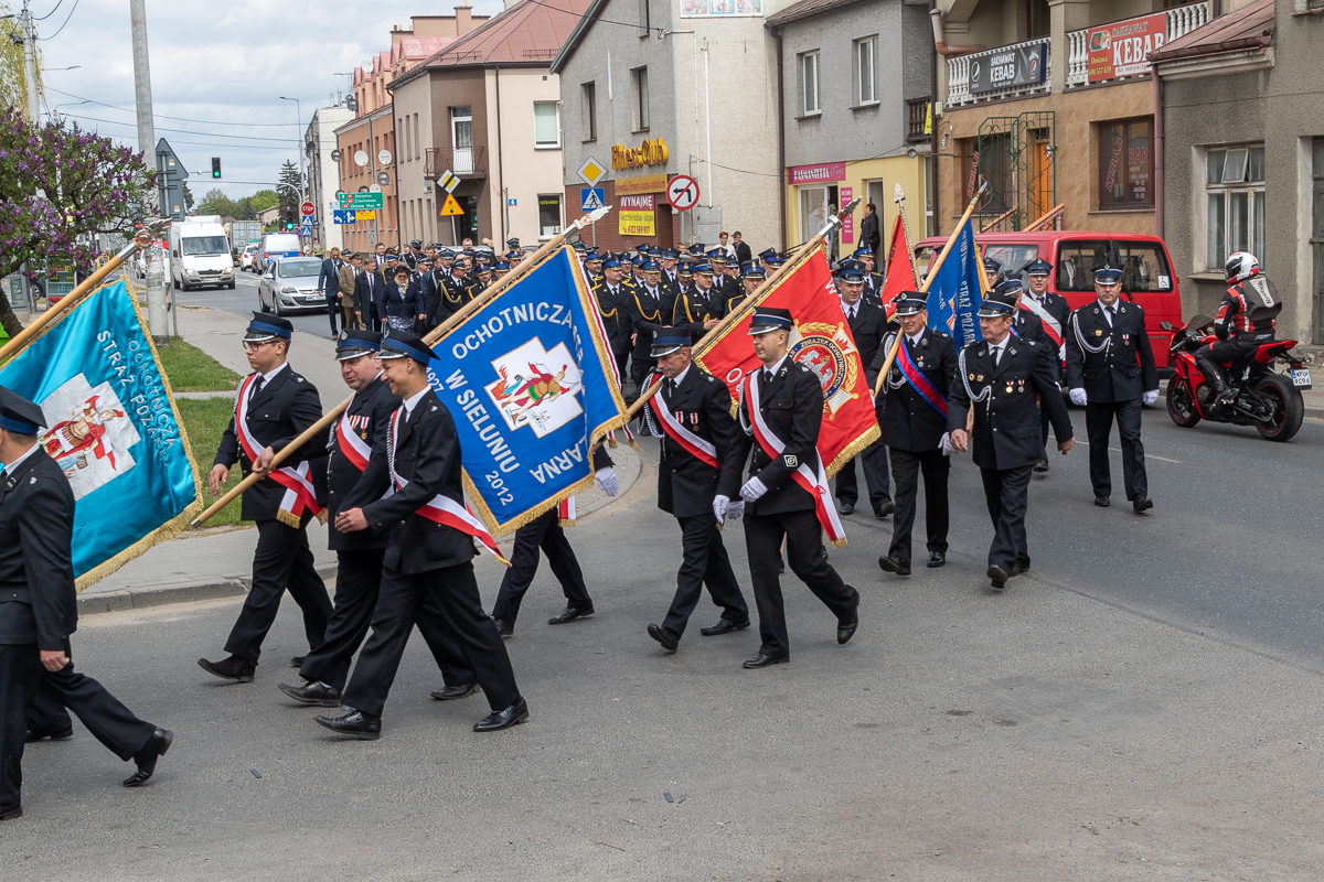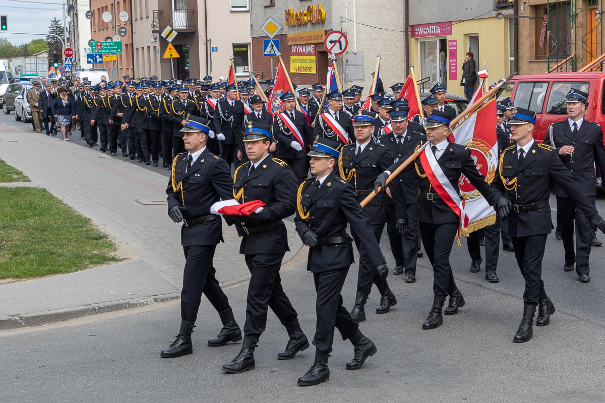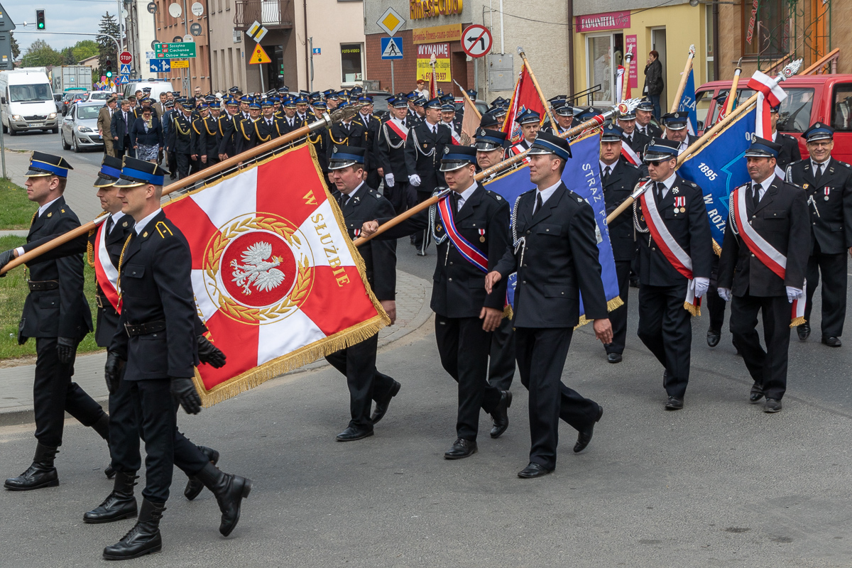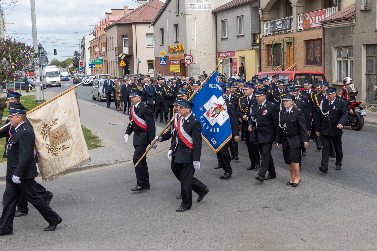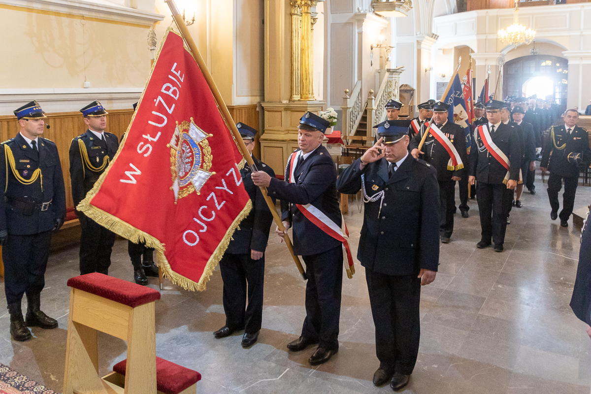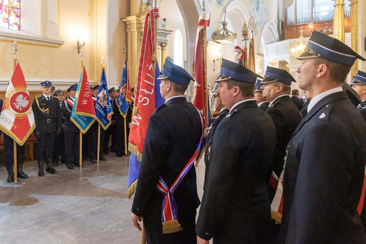 Uroczystość rozpoczęła się przemarszem kolumny strażaków, poprzedzanych przez Miejską Orkiestrę Dętą, do kościoła farnego na uroczystą Mszę św. w intencji strażaków.