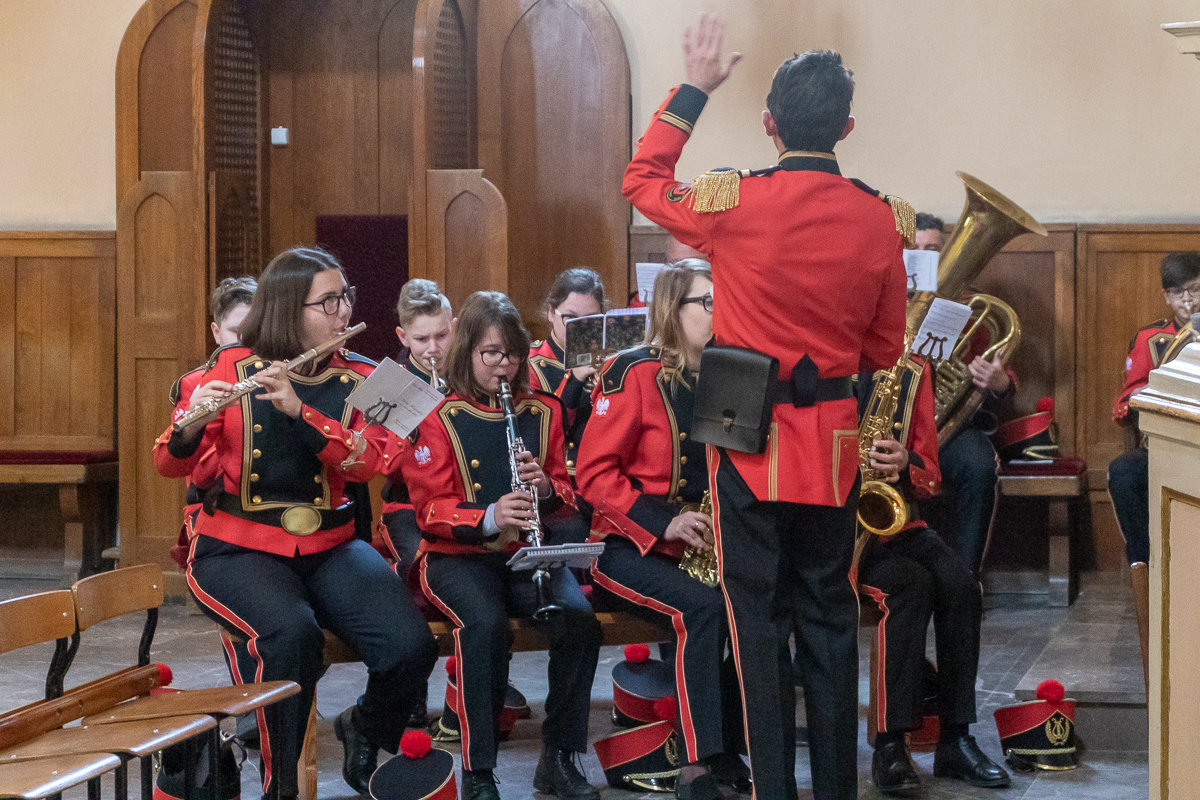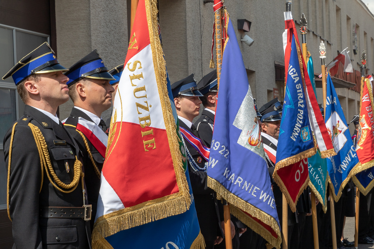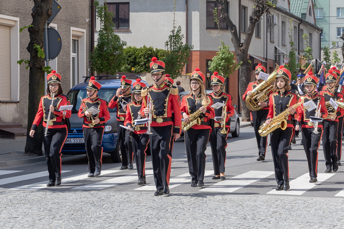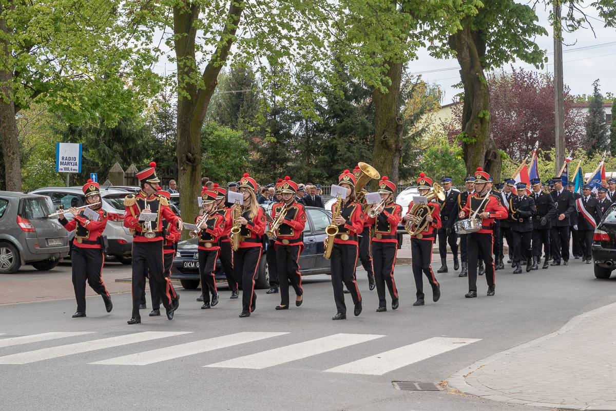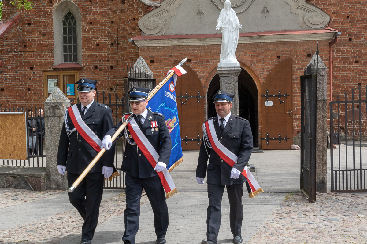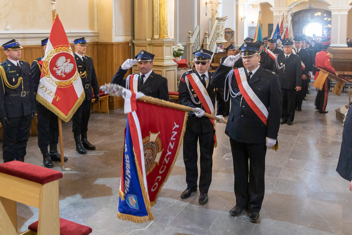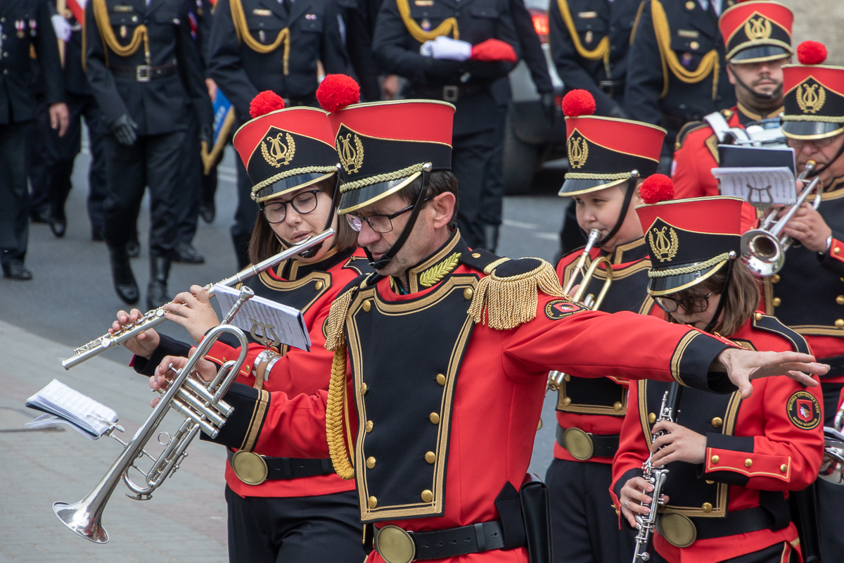 Uroczystość rozpoczęła się przemarszem kolumny strażaków, poprzedzanych przez Miejską Orkiestrę Dętą, do kościoła farnego na uroczystą Mszę św. w intencji strażaków.