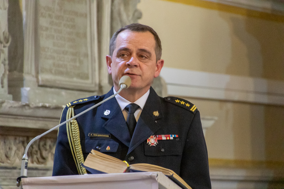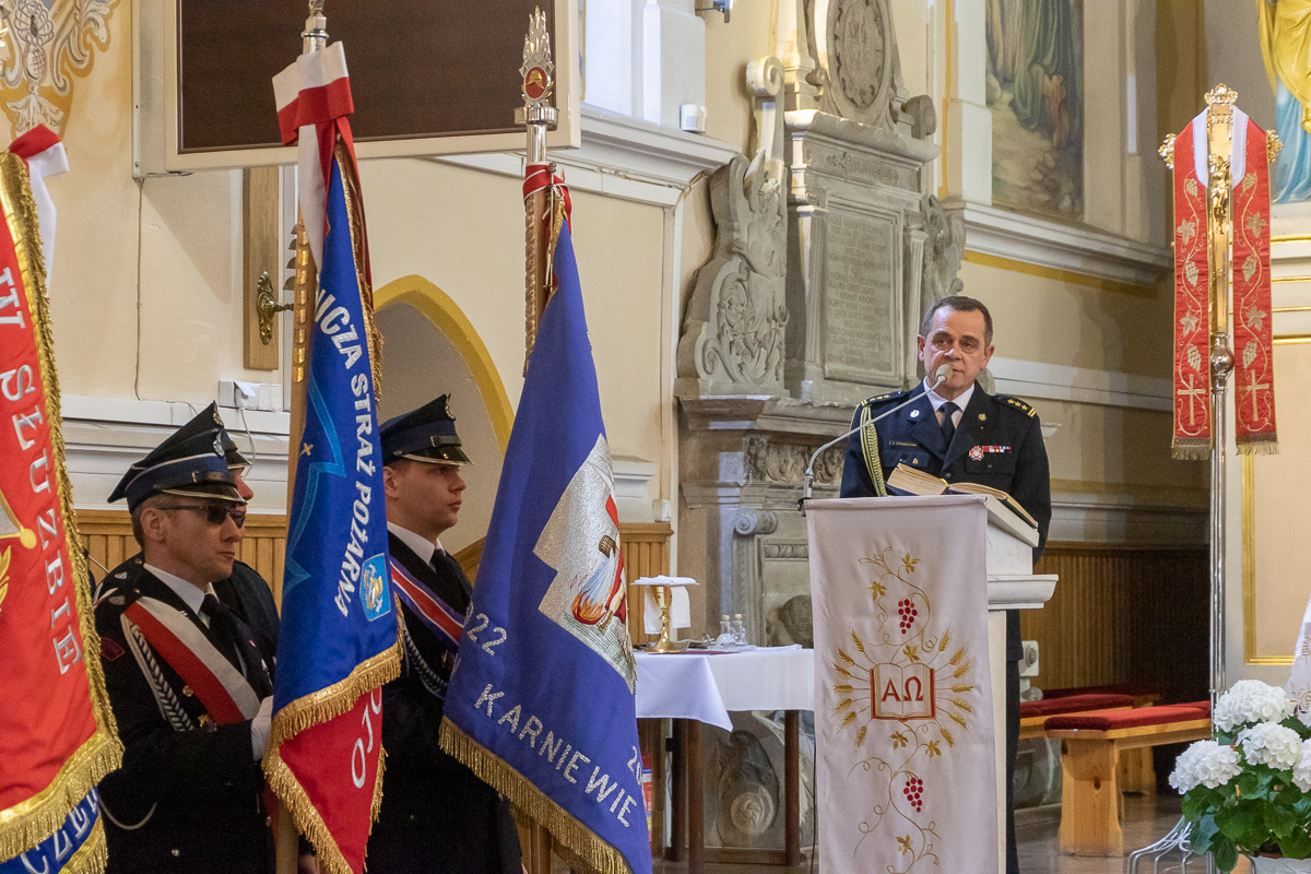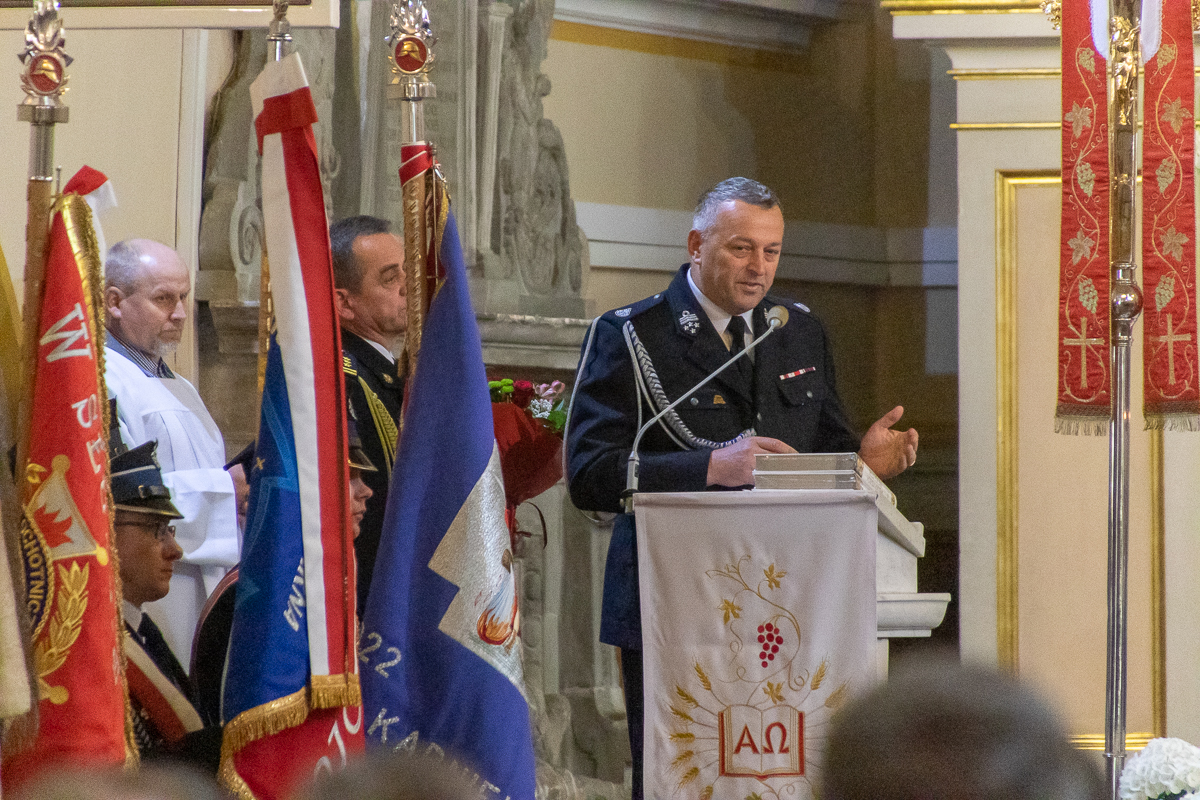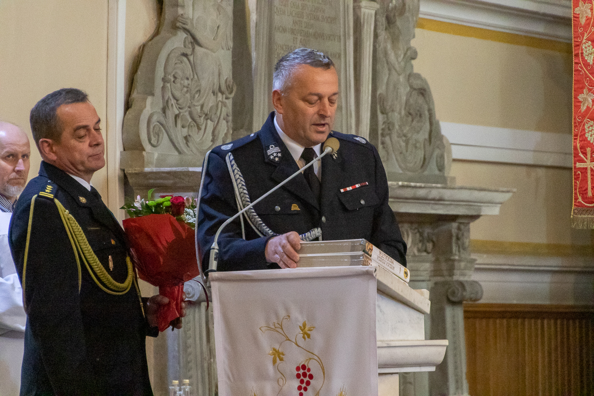 Sprawował ją ks. kan. Stanisław Dziekan. W kazaniu podziękował strażakom za ofiarną służbę w ratowaniu ludzkiego życia i mienia i życzył szczęśliwych powrotów z akcji. Modlitwą w ciszy uczczono pamięć strażaków, którzy odeszli z tego świata.
