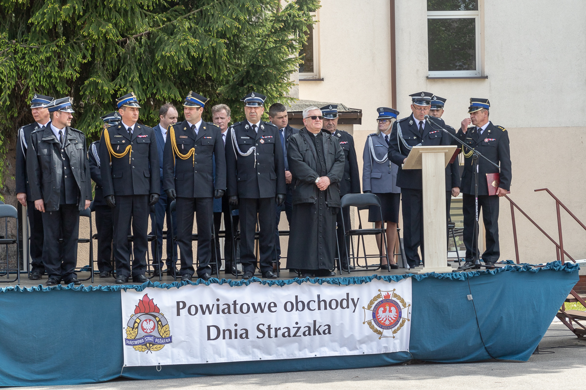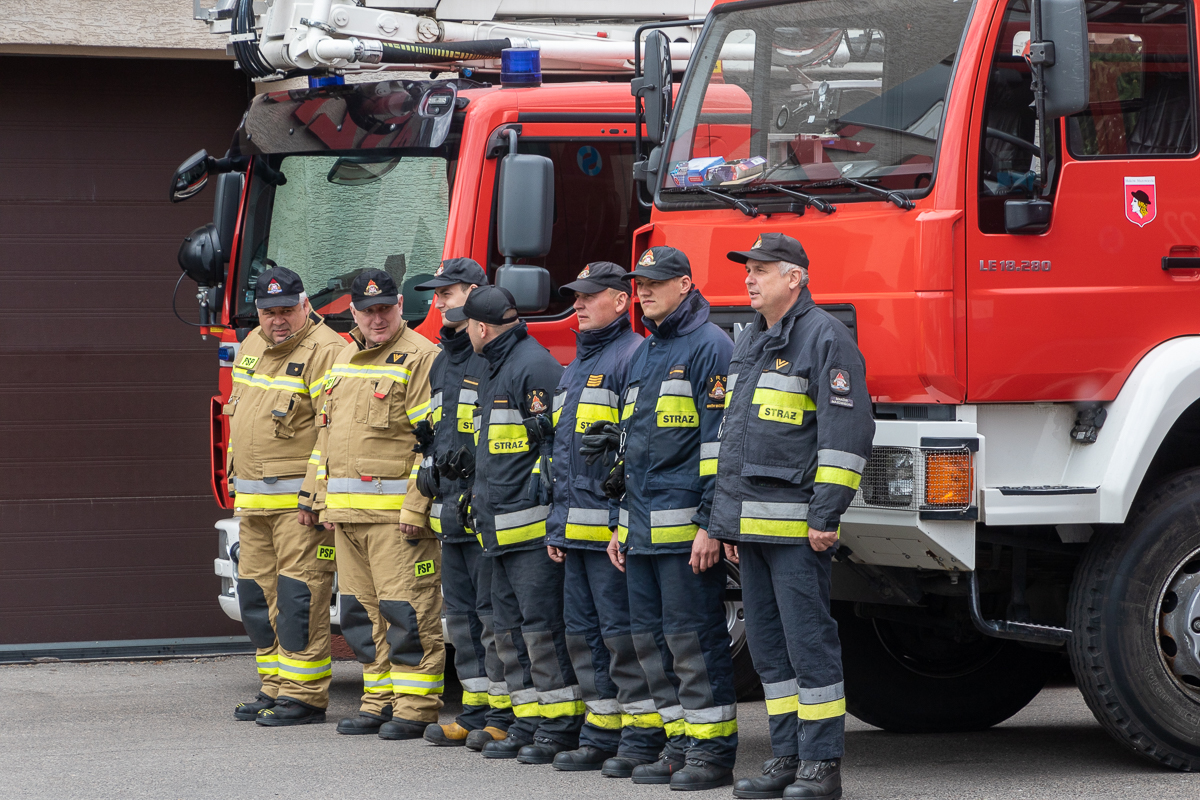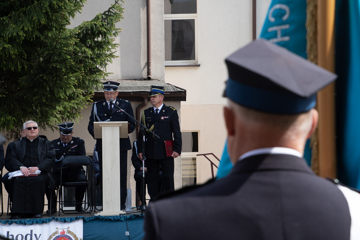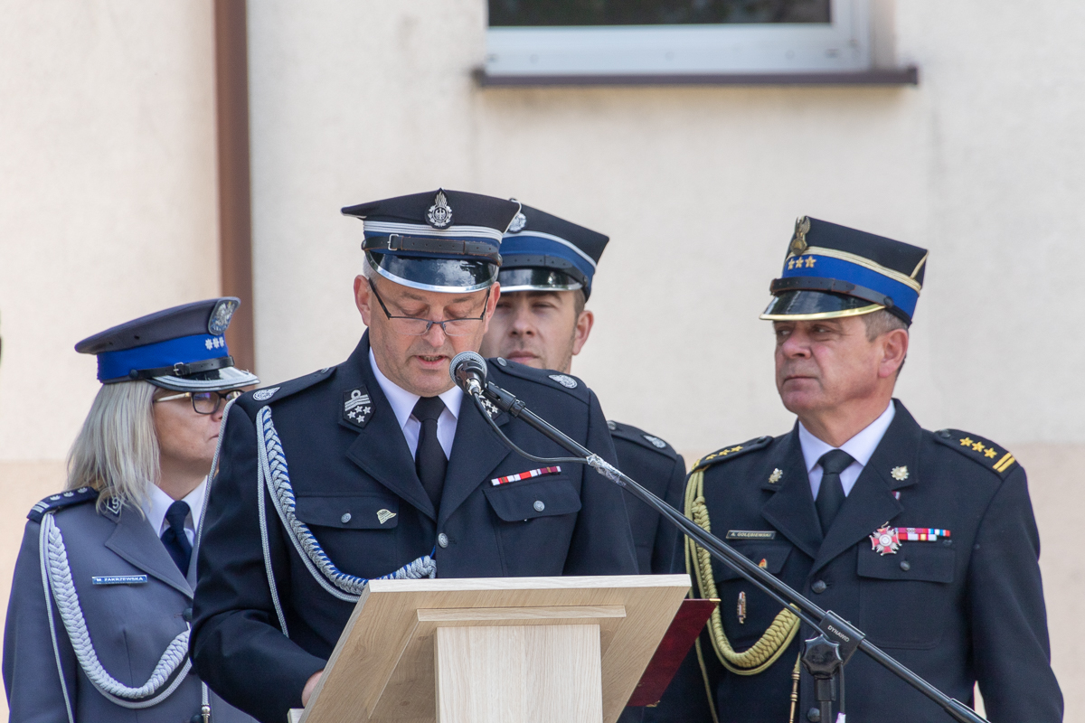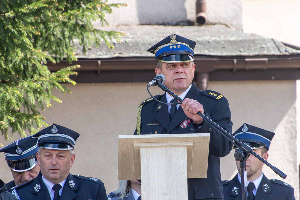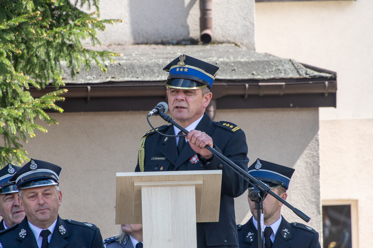 Nadszedł czas na przemówienia. Wygłosili je komendant powiatowego PSP w Makowie Mazowieckim st. bryg. Arkadiusz Gołębiewski oraz prezes Zarządu Oddziału Powiatowego Związku Ochotniczych Straży Pożarnych RP, a jednocześnie starosta Powiatu Makowskiego Zbigniew Deptuła.