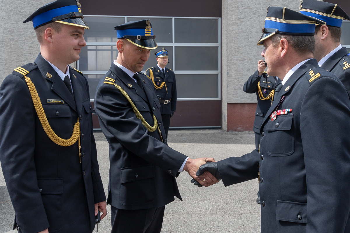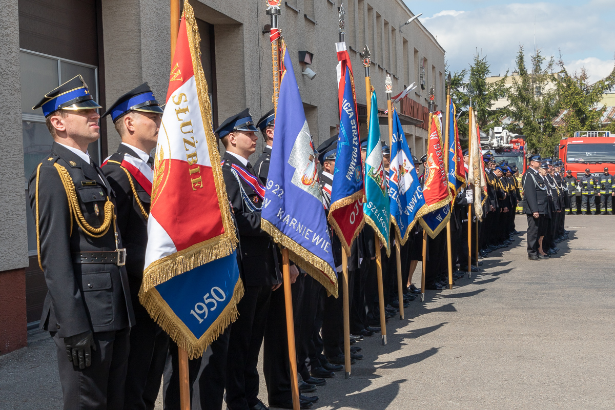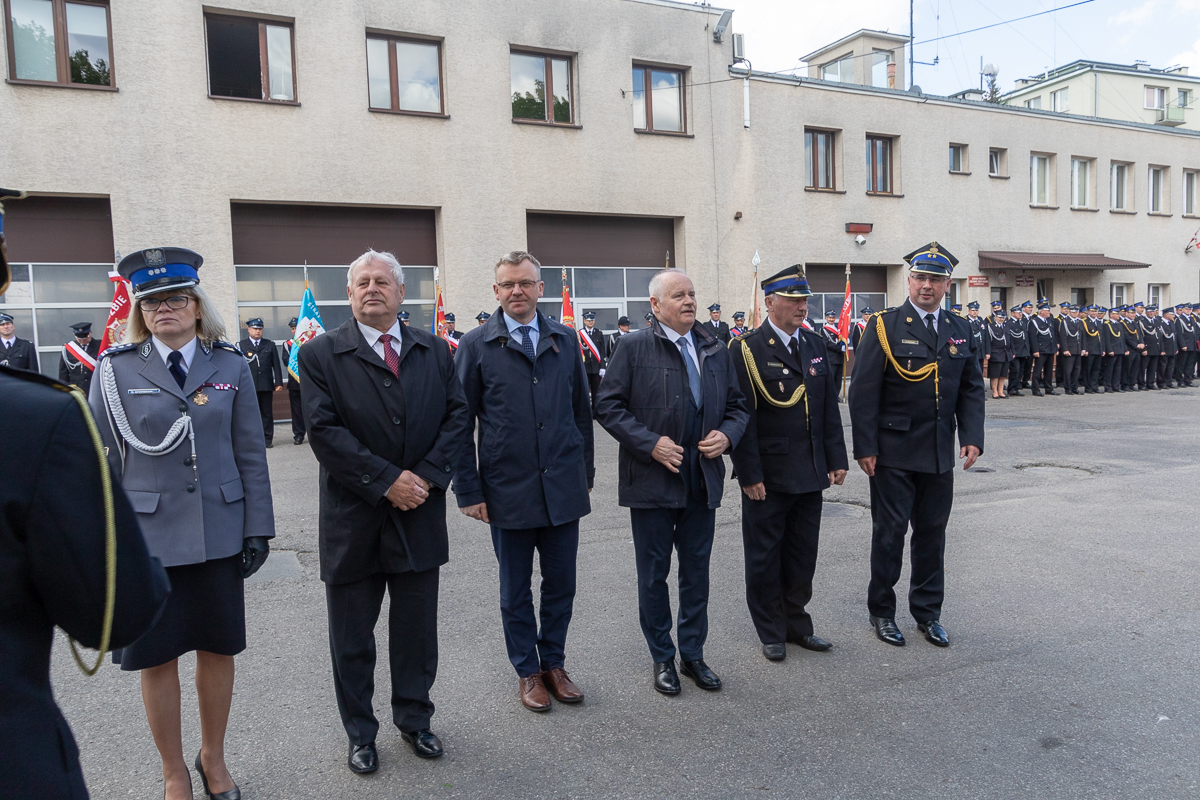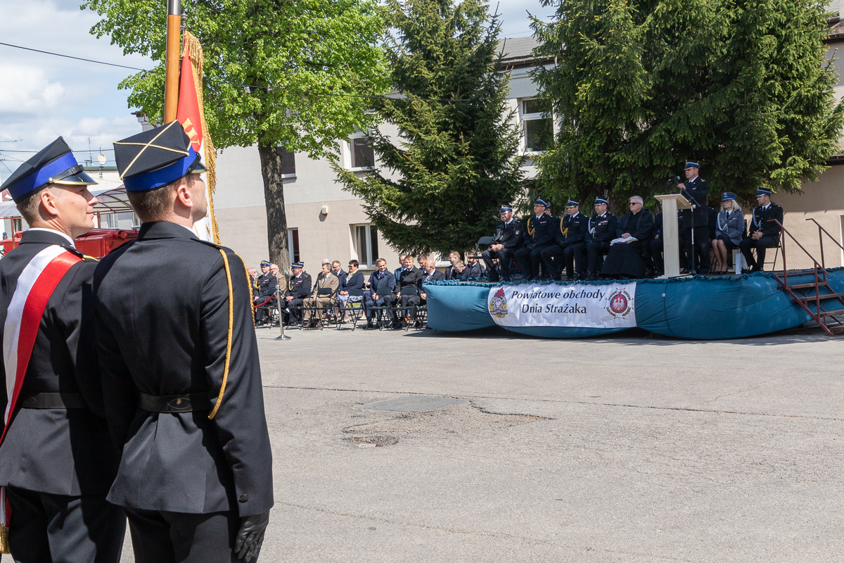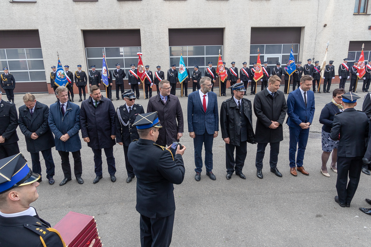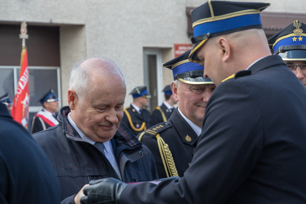 Nadszedł czas na przemówienia. Wygłosili je komendant powiatowego PSP w Makowie Mazowieckim st. bryg. Arkadiusz Gołębiewski oraz prezes Zarządu Oddziału Powiatowego Związku Ochotniczych Straży Pożarnych RP, a jednocześnie starosta Powiatu Makowskiego Zbigniew Deptuła.