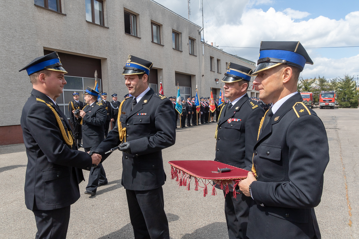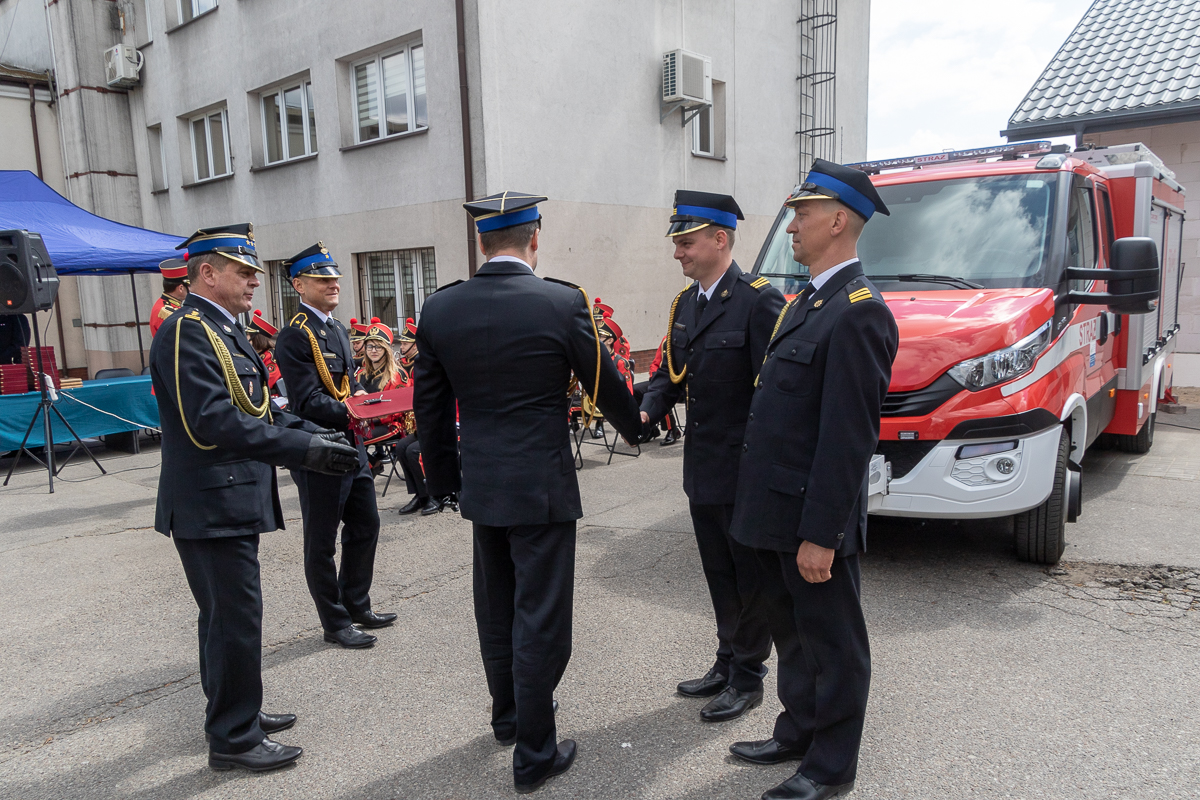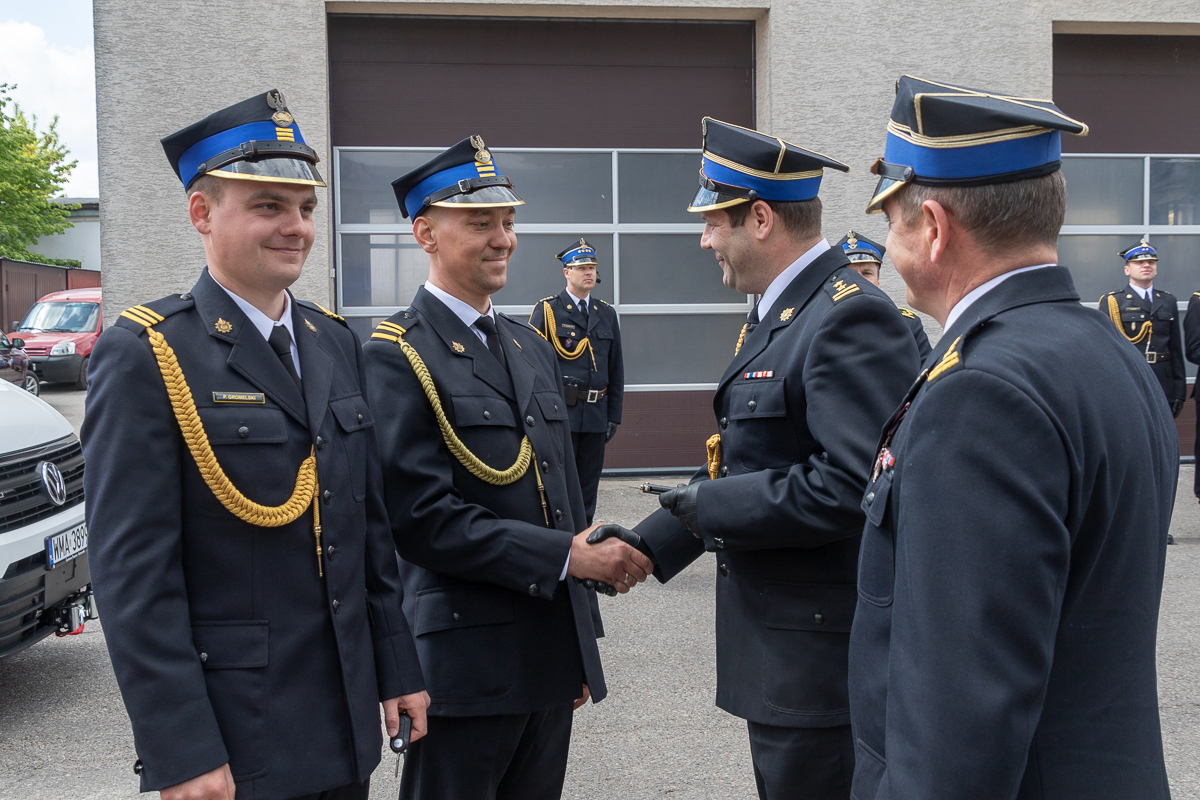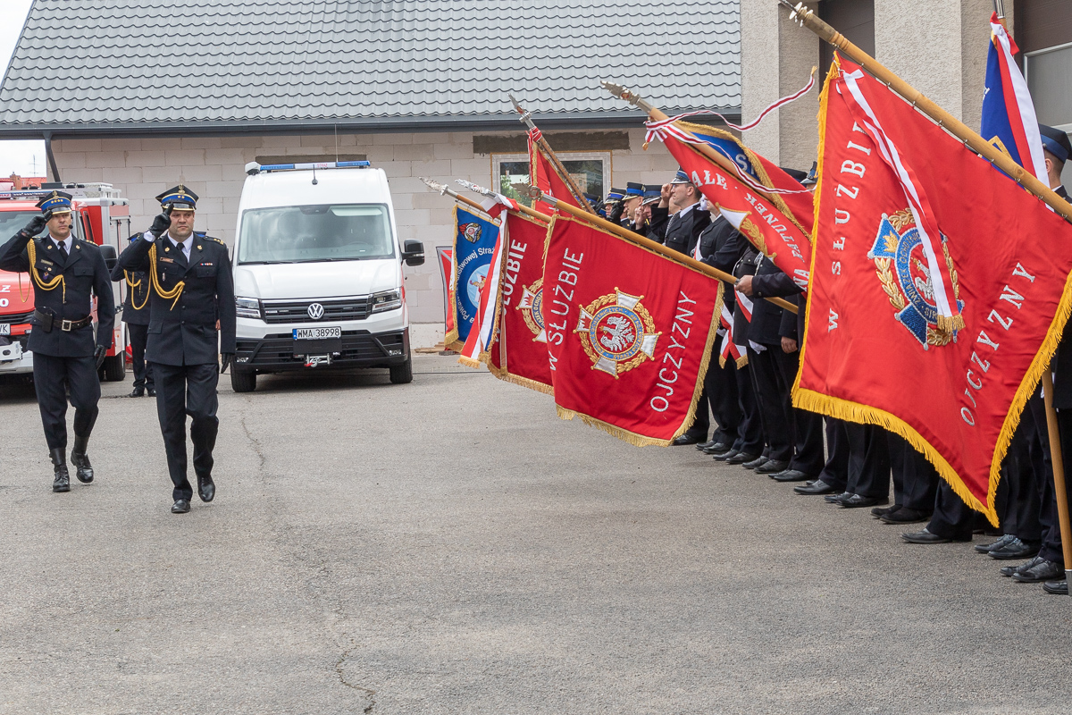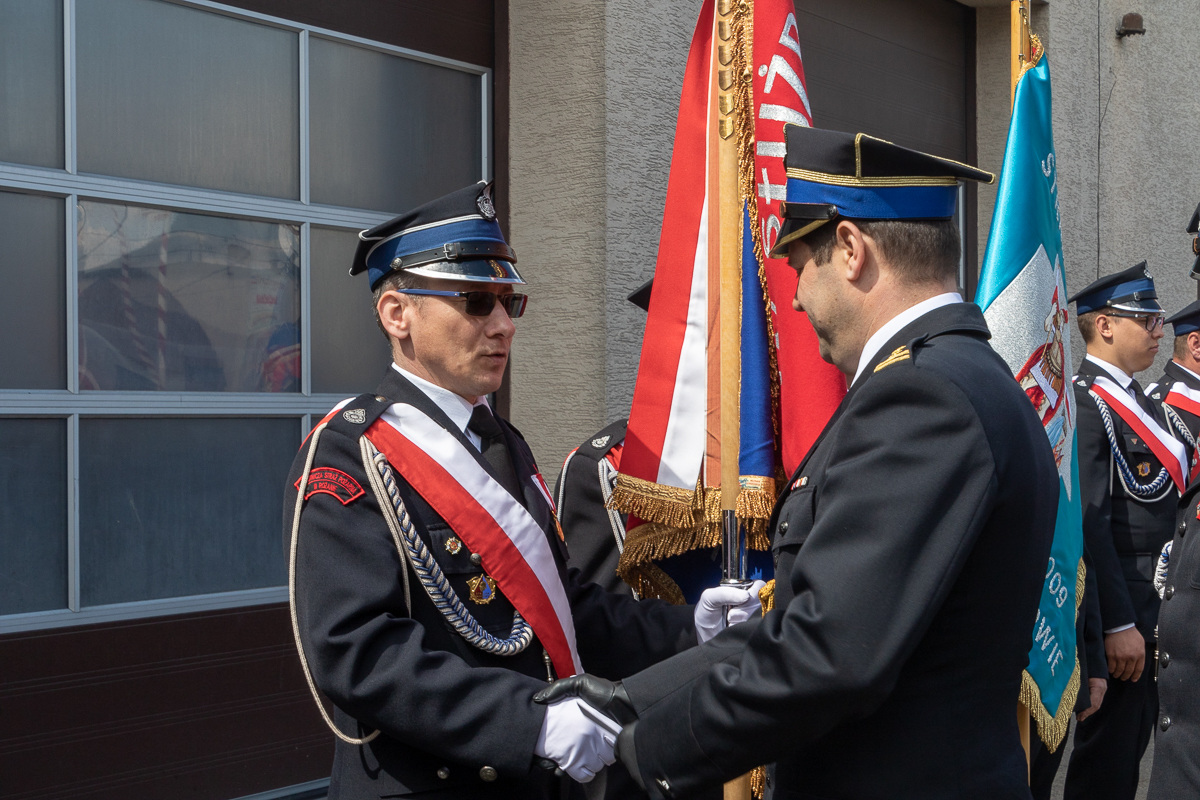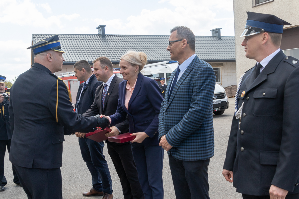 Kolejnym punktem uroczystości było wręczenie aktów przekazania oraz kluczyków do nowych samochodów. Aktu dokonali zastępca Mazowieckiego Komendanta Wojewódzkiego PSP w Warszawie bryg. Artur Gonera i Komendant Powiatowy PSP w Makowie Mazowieckim st. bryg. Arkadiusz Gołębiewski. Następnie ks. kan. Stanisław Dziekan poświęcił pojazdy, po czym kierowcy uruchomili na chwilę silniki i syreny strażackie.